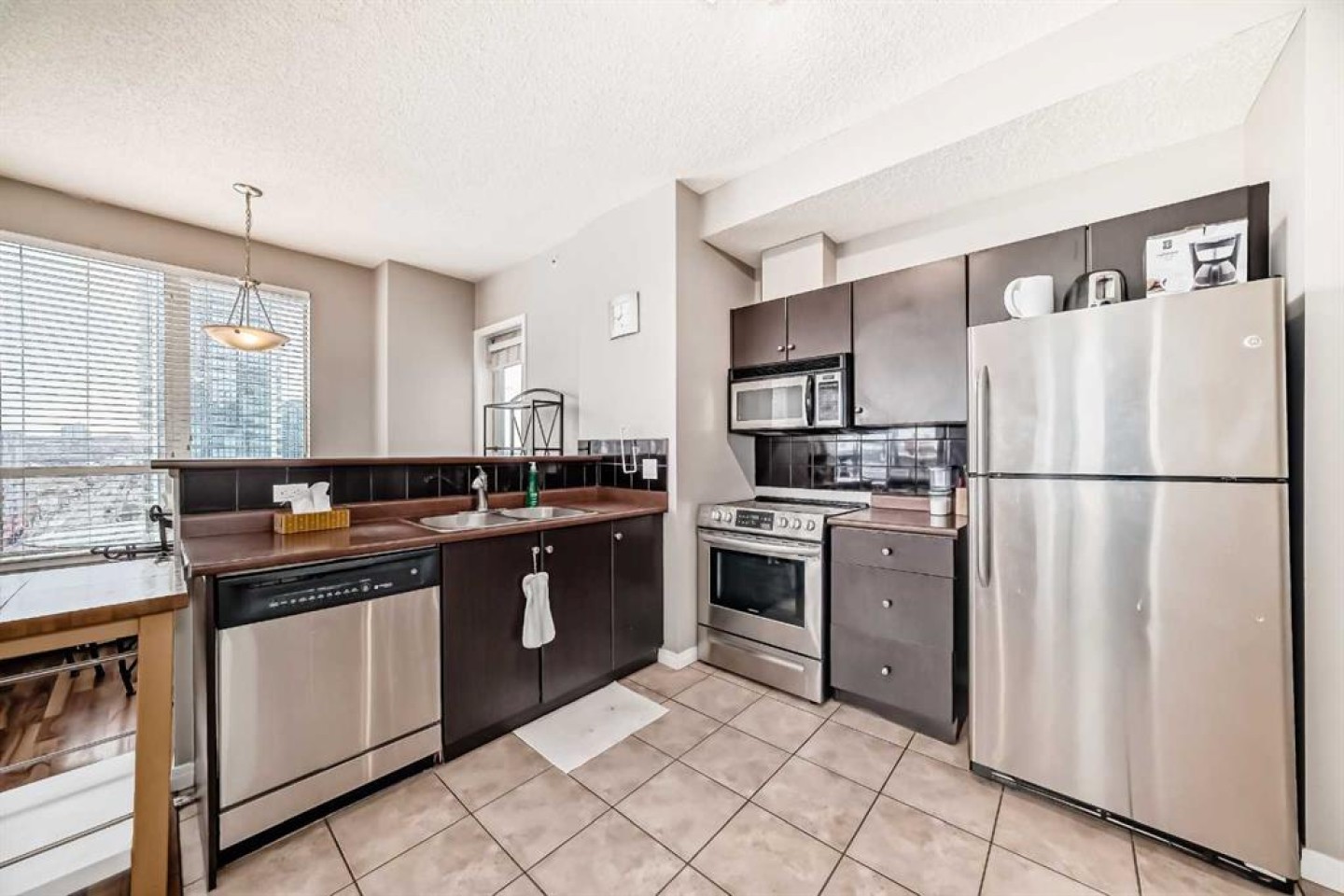 Welcome to this bright and well-maintained 2-bedroom, 2-bathroom *dog-friendly* (up to 20 lbs) & cat-friendly corner unit offering 828 sq. ft. of comfortable, functional living space in a highly convenient location. This unit comes with the option of being sold ***fully furnished***, making it ideal for buyers looking for a turnkey move or investors seeking a ready-to-rent furnished property. Extra windows bring in plenty of natural light, while the west-facing exposure provides open views and beautiful evening sunsets from the spacious balcony with a BBQ gas line. The open-concept layout features 9-ft ceilings, stainless steel appliances, in-suite laundry, and no carpet throughout, making for easy day-to-day maintenance. The living and dining areas are well-sized for both relaxing and entertaining. Residents enjoy access to a full range of building amenities including a newly renovated fitness centre, steam room, 24/7 concierge and on-site security, underground visitor parking, secure bike storage, and the added convenience of an on-site Co-Op. The unit also includes a titled heated underground parking stall. Situated in the heart of the Beltline, you’re just steps from cafés & top-rated restaurants, boutique shops, downtown offices, and everyday services, with quick access to the Bow River pathway system and major routes in and out of the core. Condo fees include heat, water, *electricity* (a rarity!), and access to amenities, offering excellent value in one of Calgary’s most walkable inner-city neighbourhoods.
