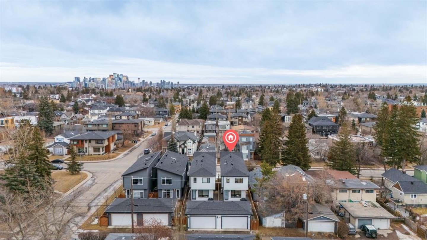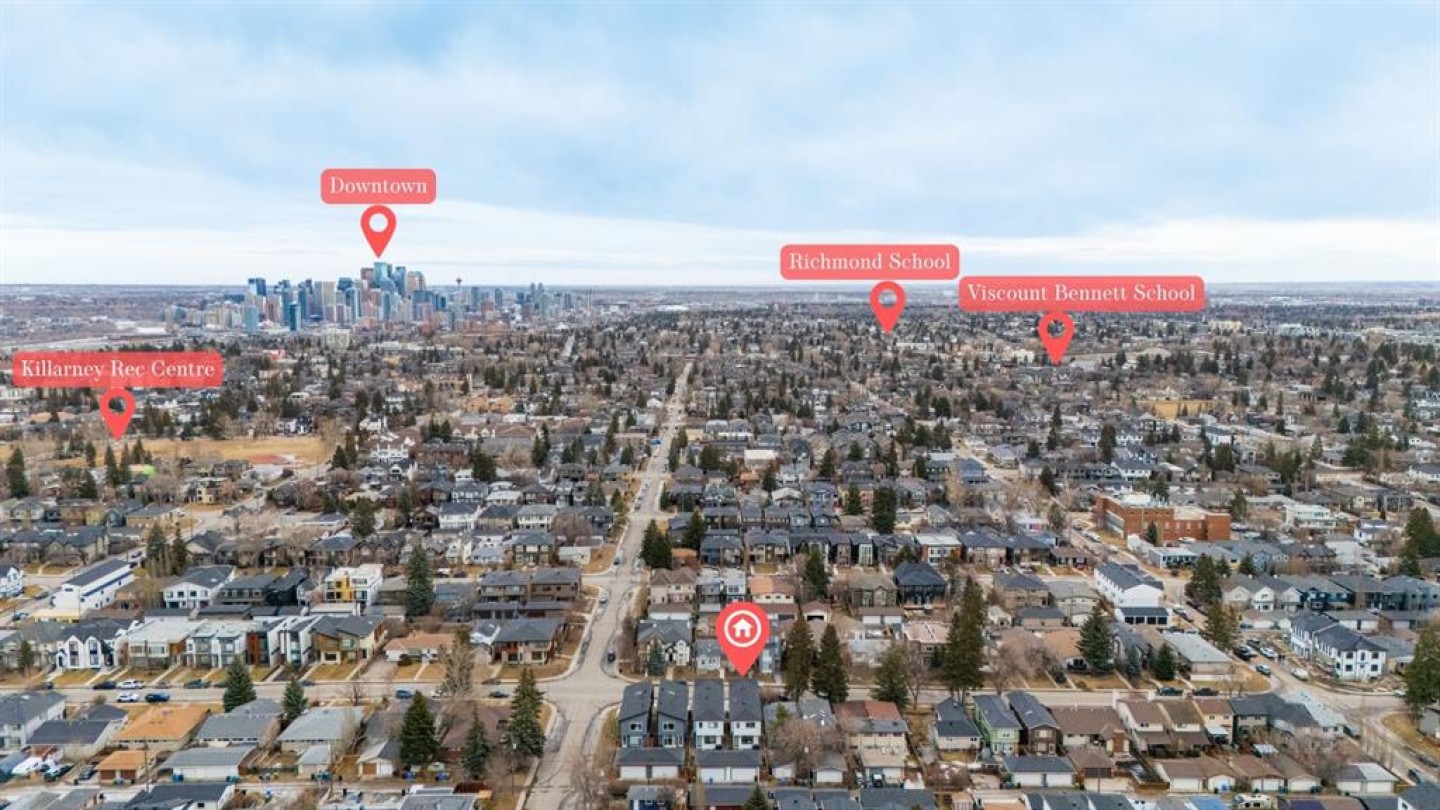 Exceptionally walkable and convenient KILLARNEY! This beautifully appointed home offers over 2,800 sq ft of thoughtfully curated living space in one of Calgary’s most desirable inner-city communities, just minutes from downtown. With a landscaped west-facing backyard and a fully finished, heated double garage, this home blends modern luxury with everyday comfort. The main level is designed for both entertaining and relaxed daily living, featuring 10-ft painted ceilings, wide-plank engineered hardwood flooring, and extensive custom built-ins throughout. The heart of the home is the stunning kitchen, highlighted by ceiling-height white cabinetry with glass accents, under-cabinet lighting, and an incredible oversized quartz island—perfect for gathering, hosting, or casual family meals. High-end stainless steel appliances, including a gas cooktop, complete the space, while the dining area is elevated by a striking decorative feature wall. The living room is filled with warm afternoon light from west-facing windows and anchored by a beautifully tiled fireplace, creating an inviting and refined atmosphere. Ascending the gorgeous open-riser staircase, the upper level continues with hardwood flooring throughout. Here you’ll find two generous secondary bedrooms with custom built-in closet systems, a spacious laundry room, a well-appointed four-piece bathroom, and a serene primary retreat. The primary suite features soaring ceilings, a designer feature wall, and a spa-inspired ensuite complete with heated tile floors, dual vanities, a steam shower, and a deep soaker tub—your own private escape at the end of the day. The fully developed basement extends the living space and is perfect for entertaining, offering a full wet bar, built-in media area with projection TV rough-in, hydrostatic in-floor heating throughout, a fourth bedroom, a four-piece bathroom, and additional storage. Additional highlights include built-in ceiling speakers, central air conditioning, central vacuum rough-in, and a rough-in for a security system. Ideally located close to parks, schools, local amenities, and the LRT, with quick access to downtown via Bow Trail or 17th Avenue, and within walking distance to the Killarney Aquatic & Recreation Centre and community garden. An exceptional home offering elevated inner-city living in an unbeatable location.