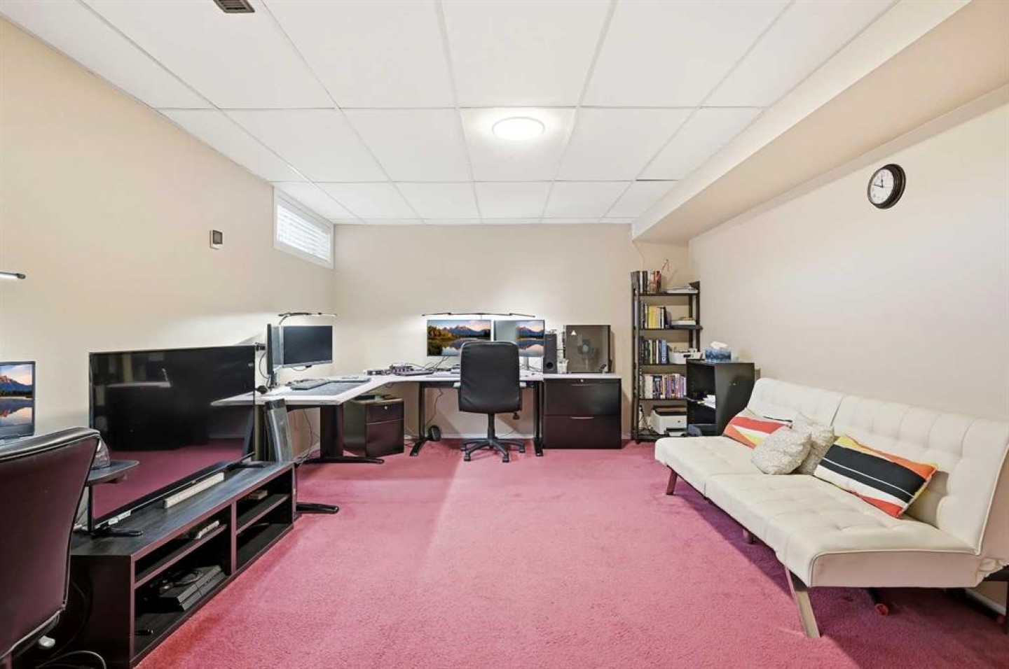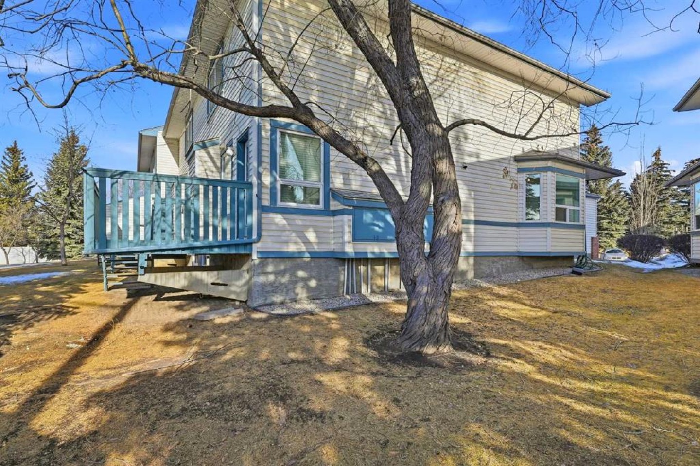 End-Unit Townhome in Quiet Citadel | Across from Park | Attached Garage. This well-maintained end-unit townhouse is located in a quiet Citadel townhouse complex, directly across from a park. The main level features a spacious kitchen with eating area, a bright living room with cozy gas fireplace, and access to a large rear deck and backyard, ideal for outdoor enjoyment. Upstairs offers a generous primary bedroom with walk-in closet and 4-piece ensuite, plus two additional bedrooms and another full bathroom. The finished basement includes a large recreation room, separate laundry area, and ample storage. Enjoy the convenience of a 22-ft single attached garage that comfortably fits an SUV, along with plenty of visitor parking. Original kitchen and baths have been well maintained, offering a move-in ready home with plenty of potential. An excellent opportunity in a desirable NW community.