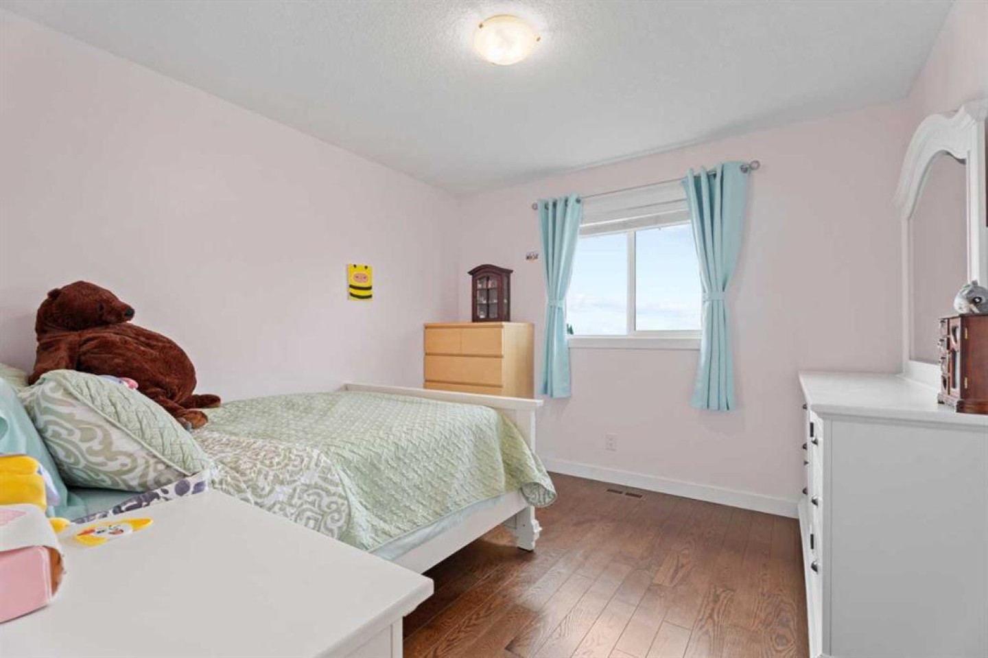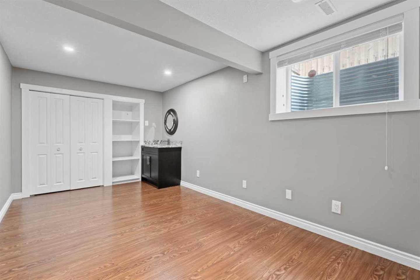 Welcome home to Aspen Woods in your new 5-bedroom + office house with over 2700 sq ft of above-grade space plus a finished basement. This executive air-conditioned home is on a large pie-shaped lot with no neighbours behind and on a quiet cul-de-sac on a no-through road with a playground around the corner. The main floor of the home has an inviting foyer with freshly painted double doors (this makes moving large items a breeze) and two closets, including a rare walk-in closet at the entry. Notably, this home is entirely carpet-free: cherry hardwood on the main floor, oak hardwood upstairs, and durable vinyl plank in the basement. There is a formal dining room and a private office on the main floor plus a spacious kitchen/dining/living room. The oversized garage has tall ceilings and could fit a small lift. The laundry is located off the entry to the garage with more closet space. The chef’s kitchen has an enormous island with a matching kitchen table that can be used as an extension of the island. There is a gas range, multiple pantries, a trash compactor, a wine fridge, display areas, and more! You can also catch glimpses of the mountains while sitting at the kitchen table. The living room has built-in wall shelves, a gas fireplace, and big windows to the east. The backyard is designed for both relaxation and play, with a two-tier deck, large shed, play structure, mature landscaping, and two productive apple trees—all on a nearly 7,000 sq. ft. lot. Upstairs is extremely spacious with a large bonus room with vaulted ceilings and built-in shelving, a grand primary bedroom, and three secondary bedrooms. The primary bedroom gets warm morning light and has a 5-piece ensuite and a walk-in closet with custom organizers. The remaining 3 bedrooms upstairs share a bathroom with dual sinks and a separate area for the bathtub & toilet. The westerly bedrooms have great views of the Rockies and Foothills to wake up to. The upper two floors also have built-in ceiling speakers. The fully finished basement includes a fifth bedroom with a built-in sink (ideal for a home-based business requiring a sink), a spa-inspired bathroom with multi-head shower, a wet bar, large bright windows, and ample storage, including a finished space under the stairs. Aspen Woods is a premier neighbourhood of Calgary with lots of local shops, quick access to the mountains, and a choice selection of schools, including Webber Academy, Rundle College, Guardian Angel Catholic, and Dr. Roberta Bondar Elementary. This stately Aspen Woods property blends elegance, functionality, and family-friendly features—ready to welcome you home.