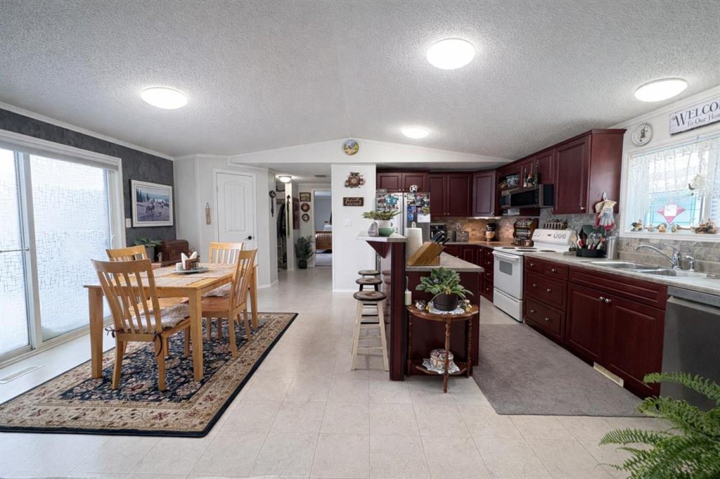 It’s easy to love this home nestled in a beautiful park like setting with a spacious, bright, fresh, open concept. The kitchen and dining area connect seamlessly, creating a welcoming space for daily living and entertaining. This home has updates and features throughout. New engineered Trim Lock insulated skirting with professionally installed heat trace, a brand-new custom built 10 X 12 shed, along with a garden shed to match for all your outdoor tools. The home has vaulted ceilings, newer hot water tank, updating throughout the house with newer Fridge, Dishwasher, Washer & Dryer, new carpets throughout with new vinyl flooring in 2023, a new over the stove microwave in 2025. This home features 3 bedrooms and 2 bathrooms. The primary bedroom with an ensuite that is located in the back of the house for full privacy and the second and third bedroom is in the front. Your minutes away from all amenities for shopping, situated on its own lot in a highly convenient location, this well-maintained home offers comfort, functionality, and accessibility all in one. It's a well-run community that shows pride in ownership.
