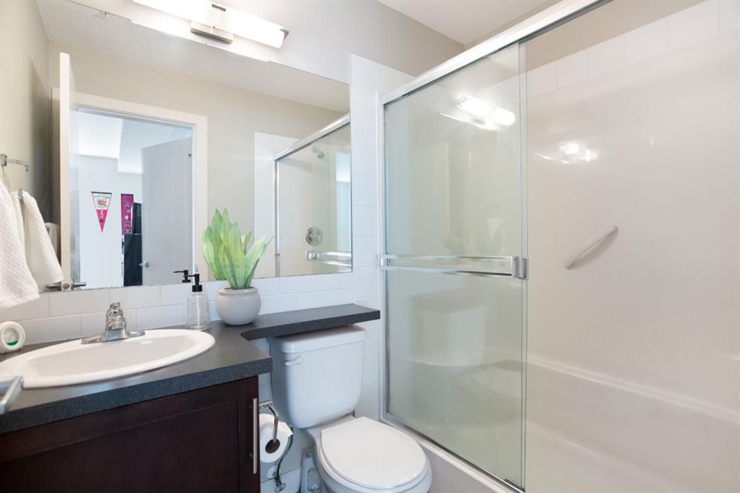 Experience the perfect harmony of modern sophistication and effortless living in this beautifully updated, south-facing sanctuary. Spanning a generous 847 square feet, this two-bedroom, two-bathroom condo is a masterclass in functional design, maximizing every inch to create an atmosphere that feels both expansive and intimate. Bathed in natural light from its coveted southern exposure, the open-concept layout invites you into a bright, airy living area that flows seamlessly onto a private, sun-drenched balcony—the ultimate setting for morning coffee or evening reflection. The heart of this residence is a chef-inspired kitchen that balances warmth with high-end style. Featuring rich walnut cabinetry, contemporary tiling, and a massive central island with seating for four, it serves as a premier hub for weekend entertaining or quiet weeknight meals. The floor plan is thoughtfully arranged with privacy as a priority; the primary suite acts as a true retreat, offering a large window that frames the sun and a dedicated three-piece ensuite. A spacious secondary bedroom and a full four-piece main bathroom provide ample room for guests, a home office, or a growing family, while the convenience of in-suite laundry ensures your daily routine remains streamlined. Beyond the walls of this stunning unit, the location on East Lake Boulevard is truly unparalleled. Imagine a vibrant community where your front door is situated merely steps from the premier amenities of Genesis Place. Whether you are heading to the gym, the pool, or the skating rink, world-class recreation is right at your fingertips. The lifestyle appeal continues with Bert Church High School, outdoor hockey rinks, tennis courts, and diverse shopping destinations all within easy walking distance. Meticulously maintained and entirely move-in ready, this modern residence offers an incredible opportunity for first-time buyers entering the market, downsizers seeking a simpler pace, or savvy investors eyeing a high-demand district. This isn’t just a condo; it’s a gateway to a convenient, active, and luminous future. Don’t allow this rare find to pass you by—come experience the charm of this exceptional property for yourself and schedule your private viewing today!