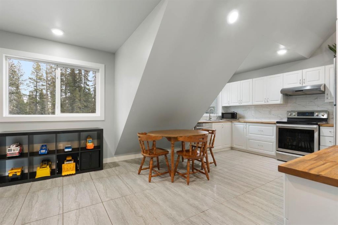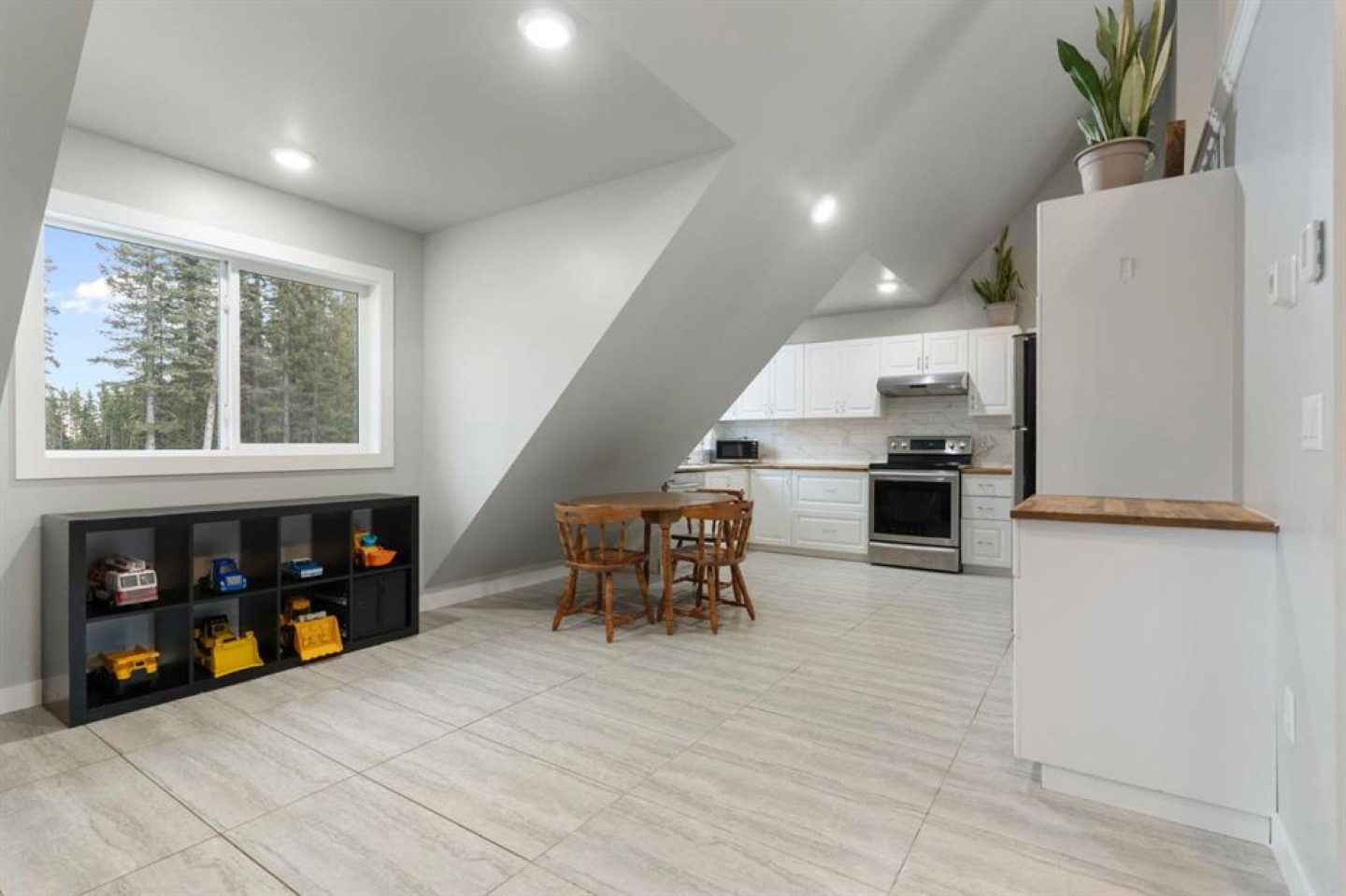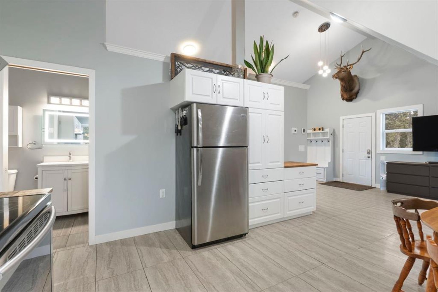 Your Invited to our Open House Saturday February 14th from noon till 3 pm. Escape to your own private retreat on this exceptional acreage with easy access to Crown land, offering unmatched privacy, endless recreation, and true Alberta wilderness right out your back gate. Surrounded by mature trees with open pasture areas and a horse run-in shed already in place, this property is nicely set up for equestrian use, outdoor enthusiasts, or those simply seeking space, serenity, and direct access to nature. The main residence offers over 800 sq ft above grade with a bright, lofty layout designed for future expansion and comfortable country living. Large windows frame peaceful treed views, while the open living and dining areas and the freestanding wood-burning stove create a warm and inviting atmosphere. The kitchen features crisp white cabinetry, warm butcher block countertops, stainless steel appliances, and a modern tile backsplash with natural light that pours in through large windows overlooking the drive and surrounding trees. On the lower level, the impressive, oversized garage space provides substantial room for vehicles, equipment, toys, or workshop use, ideal for hobbyists, trades, or recreational storage. With established infrastructure, usable land, and direct Crown land access for riding, quadding, hiking, and exploring, this is a rare opportunity to secure a truly versatile acreage property.