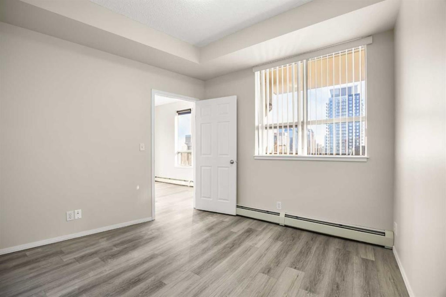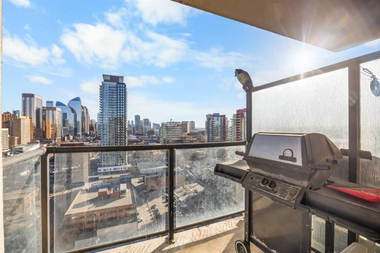 Welcome to this bright 1-bedroom apartment on the 19th floor in the heart of the Beltline! This well-designed unit offers 480 sq ft of functional living space with 9-foot ceilings and an open-concept layout. The functional Kitchen flows seamlessly into the sunny East-facing Living and Dining room combo, filled with natural light throughout the day. Vinyl plank flooring adds style and durability to the Living room, Dining area, and Bedroom. From the Living room, step out to the East-facing balcony with gas hookup, where you can enjoy stunning downtown views—perfect for your morning coffee or evening relaxation. The Primary bedroom provides comfortable space with 2 closets for ample storage. This unit is complete with 1 full bathroom, in-suite laundry, and a Titled underground parking stall. The condo fees cover all utilities—gas, water, and electricity—providing exceptional value for inner-city living. The well-managed Vantage Pointe building includes a fitness centre, bike storage, underground visitor parking, and 24-hour security. Living in the Beltline means having everything nearby: restaurants, grocery stores (Co-Op, Safeway & Community Natural Foods), schools, vibrant 17th Ave, and green spaces like Prince's Island Park. Just a short walk to the C-Train station and Bow River pathway, making it easy to get around whether you're commuting, cycling, or enjoying a quick commute to work in Downtown. Don't miss your chance to live in one of Calgary's most walkable neighborhoods!