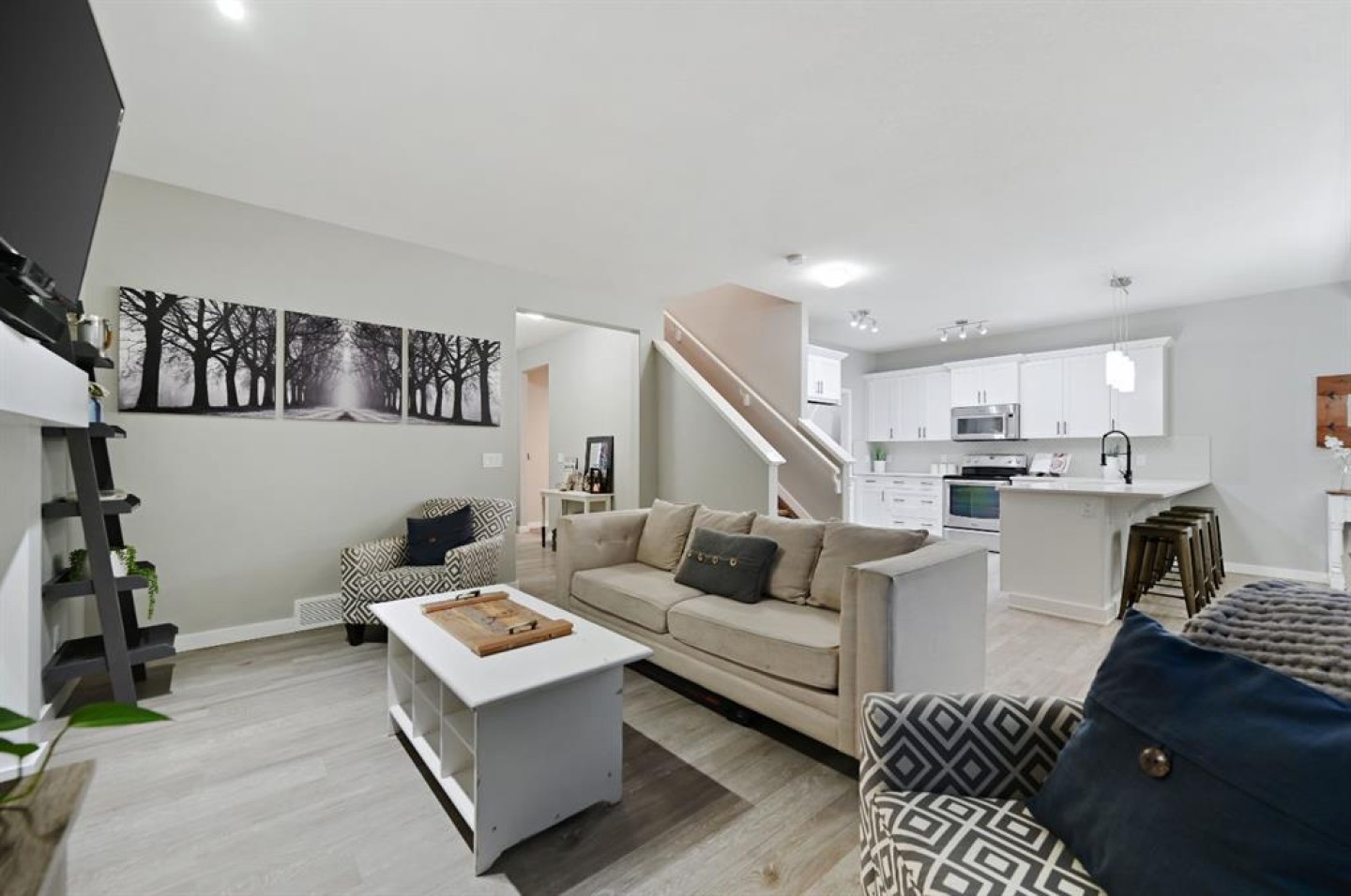 OPEN HOUSES: Thursday March 5th 5-7 pm & Sunday March 8th 1-3 pm | Imagine living just steps from the serene canals in Bayside Estates. This beautifully maintained, move-in-ready home offers over 2,700 sqft of finished living space for your family to grow, play, and relax. Step inside to a bright and spacious entryway that immediately feels warm and inviting. The main floor is thoughtfully designed for everyday living and entertaining, featuring a clean, modern kitchen with crisp white cabinetry, quartz countertops, and a generous pantry that keeps everything organized and within reach. Just off the pantry, you will find a practical mudroom with closet space, perfect for keeping coats, backpacks, and daily essentials neatly tucked away. The adjoining living room is centered around a cozy gas fireplace. A convenient half bath completes this level. Upstairs, you will find a large bonus room that works as a media space, playroom, or quiet retreat. The private primary suite offers a comfortable escape with a four-piece ensuite featuring a soaker tub, separate shower, and an extended vanity with plenty of counter space and storage. The ensuite leads directly into a walk-in closet for added convenience. Two additional bedrooms are well sized (including one with its own walk-in closet) and are both served by another 4-piece bathroom. Upper-level laundry adds everyday ease to this well-designed second floor. The fully finished basement, completed with all required permits, expands your living space further. It features a spacious recreation area, an additional bedroom, and another full four-piece bathroom, making it ideal for guests, teens, or extended family. Step outside and enjoy the lifestyle Bayside is known for: scenic walking paths along the canals, Nose Creek Elementary and W.H. Croxford High within walking distance, and nearby shopping and dining at Bayside Village. On warm summer evenings, sip margaritas on the patio at the local Mexican restaurant while watching the sun set over the water. In the winter, lace up your skates for a game of shinny on the frozen canals. This is what canal-side living is all about. Room for everyone, a top location, and a lifestyle you’ll love, this home has it all.