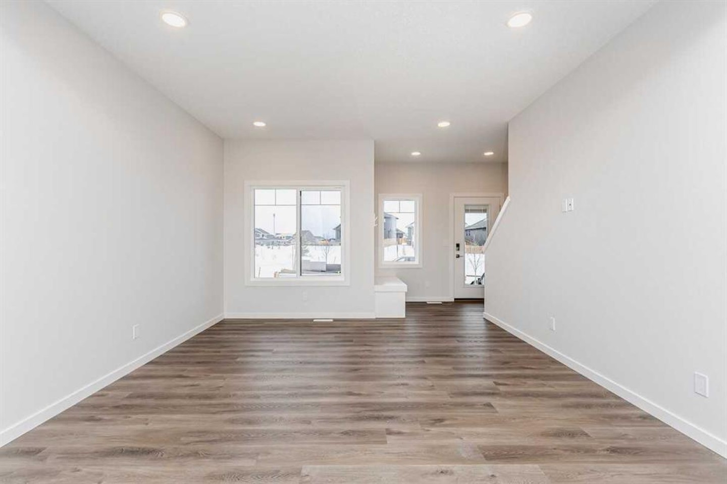 Welcome to this no-condo-fee, mid-unit 2-storey townhome by Bedrock Homes—an ideal low-maintenance home in a growing neighborhood. Enjoy the convenience of a double-car garage on a concrete pad and a thoughtfully designed interior. The modern kitchen features ceiling-height cabinetry with soft-close drawers throughout and a large walk-in pantry. A functional mudroom includes a built-in bench and hooks for everyday organization. Upstairs, the spacious primary bedroom offers a large walk-in closet and a private ensuite with dual sinks and a walk-in shower. The 9’ basement foundation provides increased ceiling height and includes a bathroom rough-in, ready for potential future development. Additional highlights include knockdown ceilings throughout and Bedrock’s Smart Home package with a smart thermostat and keypad front door lock—included at no extra charge.