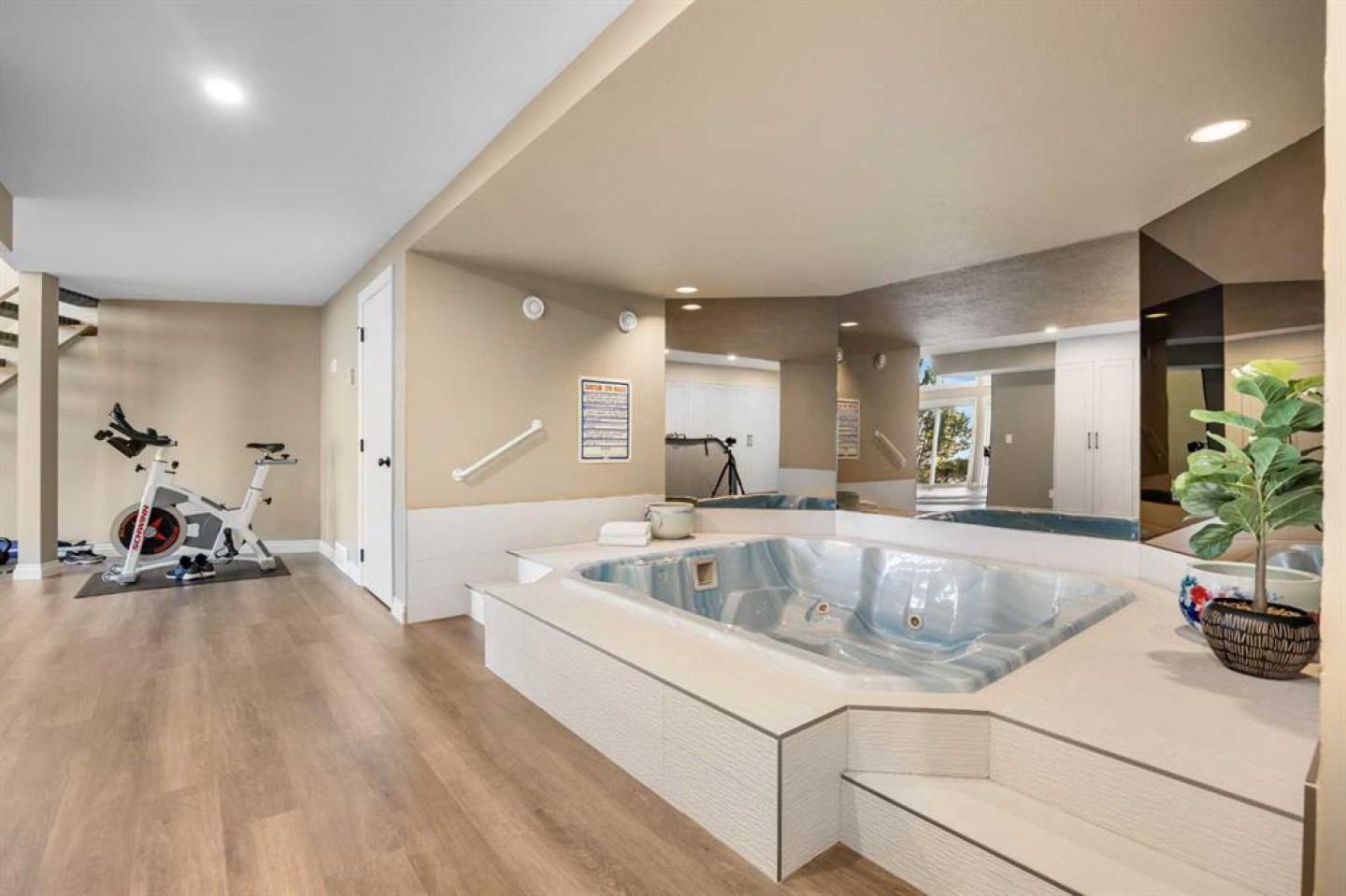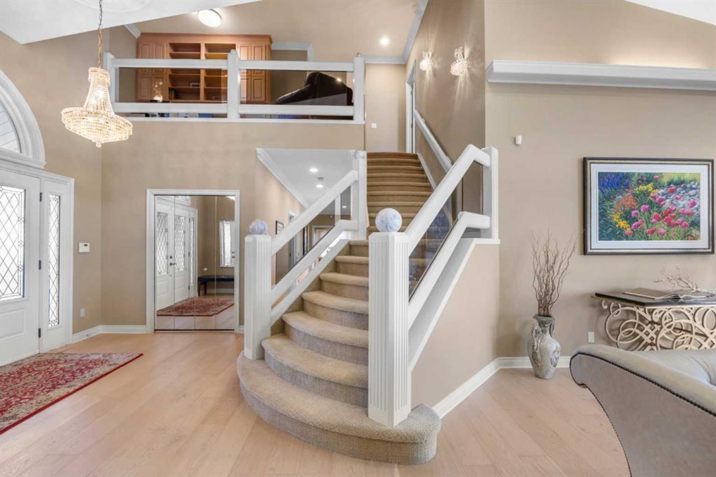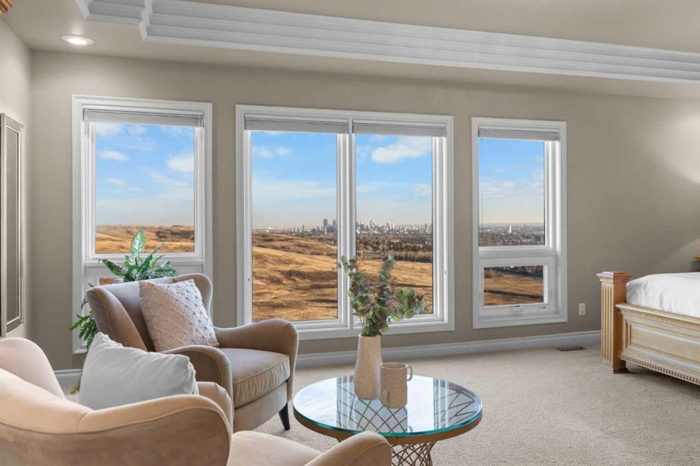 Welcome to the Pinnacle of luxury living at Edelweiss Point, an exclusive hilltop enclave in the prestigious community of Edgemont. This extraordinary 5+2 bedroom, 6 bathroom two-storey walkout estate offers over 6,800 sq ft of refined living space with breathtaking, unobstructed views of Nose Hill Park and Calgary's downtown skyline. Step through double doors to soaring vaulted ceilings and new engineered hardwood flooring throughout the main level, extending into the Living room where walls of windows frame spectacular panoramic views. The Living room opens to a sunny South-East-facing balcony to capture the breathtaking city and sunrise views. A 13-foot ceiling Den with built-in bookcases provides an inspiring workspace. The main level features floor-to-ceiling windows flooding the space with light. The newly renovated white Kitchen boasts quartz countertops, pantry, stainless steel Wolf six-burner gas stove, Sub-Zero fridge, and Bosch dishwasher. The Family room with gas fireplace connected well with the kitchen and Eating Nook, steps out to another Balcony to capture the Views. The elegant formal Dining room features French doors and recessed ceiling. A bedroom with cheater door to 3-piece bath offers guest or office flexibility, and the triple attached garage completes this level. Extensively renovated (2023-2024): all Poly-B are replaced, Navien boiler system, and updated bathroom fixtures. On the upper level, a loft with built-in desk provides versatile space for study. The luxurious Primary bedroom features a cozy seating area with gas-lit fireplace positioned perfectly for enjoying breathtaking views through large windows. The newly renovated 5-piece ensuite bath featuring heated floors, skylight above freestanding soaker tub, separate double vanity, oversized tiled standing shower, and walk-in closet. Three additional well-sized bedrooms complete this level—two share a Jack-and-Jill bathroom, while the other one has a cheater door to another full bath. All upper bathrooms updated (2023-2024). The fully finished walkout basement (2021) with renovated kitchen and bathroom is designed for entertaining and versatile living. A spectacular highlight is the 19-foot vaulted ceiling gym/dance room with skylight and three large mirrors, perfect for fitness enthusiasts, yoga practice, or dance rehearsals. An indoor jacuzzi room and Recreation room offer additional luxury amenities. A full Kitchen with large island, Living room with gas-lit fireplace, Dining area, and 2 bedrooms with 2 full baths complete this exceptional level. Step outside to your South-East-facing backyard backing onto green space with magnificent views of Nose Hill Park and downtown Calgary. Low-maintenance paved patio gardens and mature landscaping, with direct green space access for peaceful walks. Additional highlights include all windows replaced (2012/2013) and 2 decks with new vinyl (2024). Located in prestigious Edgemont—a rare opportunity at Calgary's most coveted hilltop address.