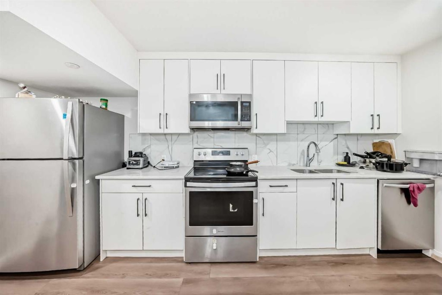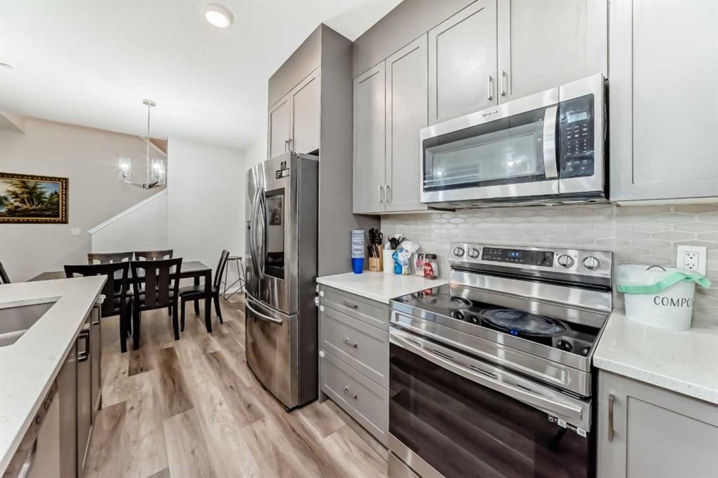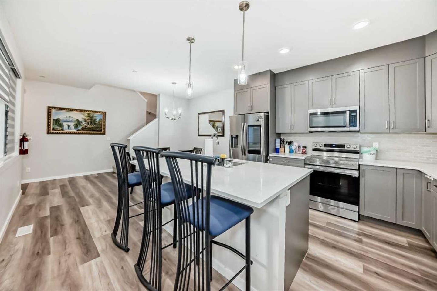 Exceptional value meets modern luxury in this meticulously updated 4-bedroom family home with legal basement suite in vibrant Livingston. Brand-new 2025 roof and fresh siding provide peace of mind for years to come. The thoughtfully designed main floor welcomes you with an open-concept kitchen featuring quartz countertops, stainless steel appliances, and an oversized island—perfect for both everyday living and entertaining. A main-floor bedroom and full bathroom offer flexible space for guests or multi-generational families. Upstairs, three generous bedrooms include a tranquil primary retreat with spa-inspired 5-piece ensuite and walk-in closet. The bonus room and convenient upper-floor laundry complete this level. The legal basement suite is a standout feature with private side entrance, offering tremendous income potential or in-law accommodation. Thoughtfully finished with 1 bedroom, den, full kitchen, bathroom, living area, and laundry—ideal for mortgage helpers, Airbnb income, or extended family. Outside, enjoy your private backyard deck and double garage. Premium location near Stoney Trail, Deerfoot, top-rated schools, parks, shopping, and the Livingston Hub means convenience is at your doorstep. Additional highlights: Central A/C on Reliance plan ($82/month, buyout available). This is more than a home—it's an investment in lifestyle and financial flexibility. Don't miss this rare opportunity in sought-after NW Calgary.