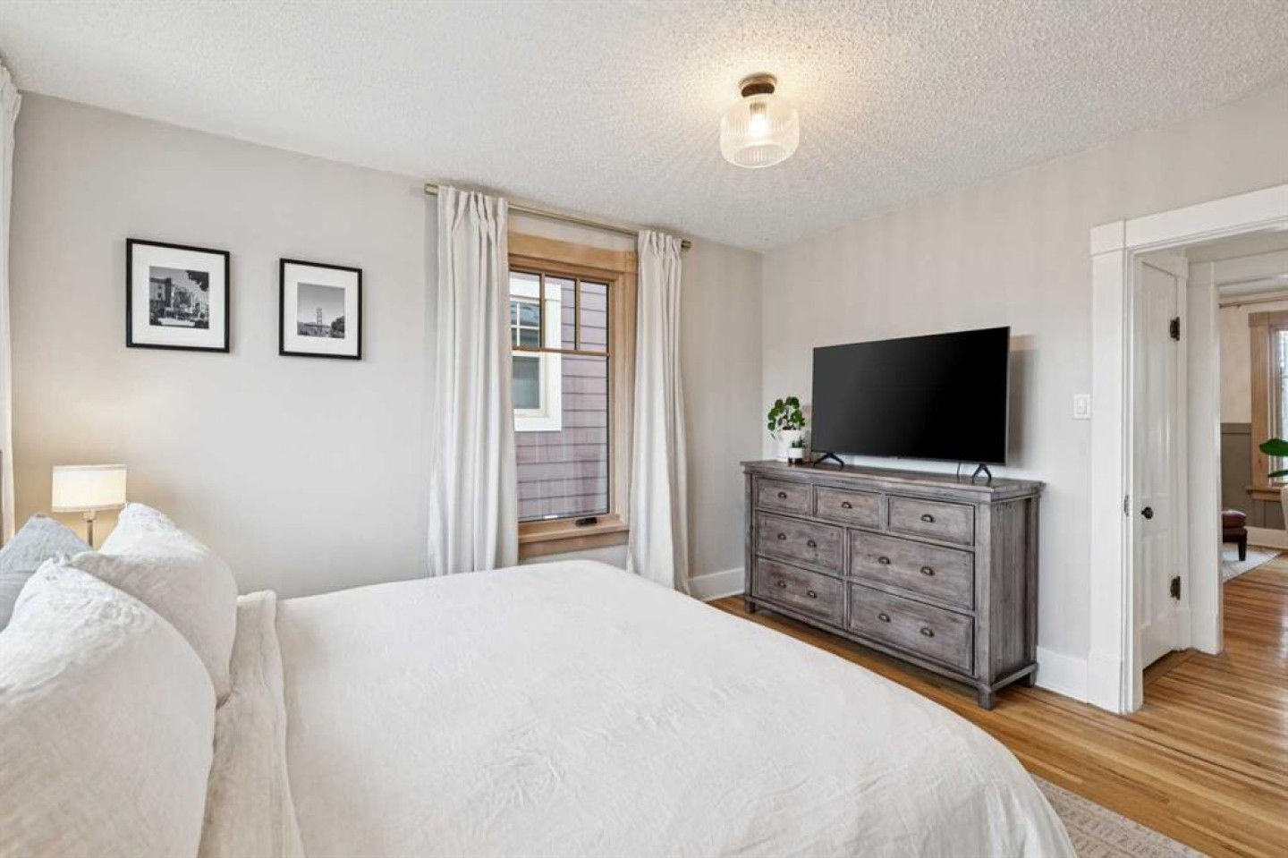 Open House Sat Feb. 14th 1-3pm! Located on the highly desirable 300 block of 11A Street NW in the heart of Hillhurst “proper,” this exceptional property offers an unbeatable inner-city lifestyle as it is just steps from Calgary’s iconic Kensington shopping district, the Sunnyside LRT Station, Riley Park, & the Bow River Pathway System, is within easy walking distance to Hillhurst & Queen Elizabeth Schools, & Downtown is a quick 20-minute walk, it doesn't get more convenient. Situated on a generous 30 x 125 ft lot, this beautifully restored 1912 character home offers >2000 sq. ft. of living space, seamlessly blending heritage charm with extensive modern upgrades. Original details have been thoughtfully retained, including maple & oak hardwood floors, original balusters, & heritage millwork, now complemented by new custom Lux wood windows throughout, improving energy efficiency while remaining true to the home’s historic character. The main floor features a welcoming living room & a spacious dining area with double French doors opening to a large, multi-tiered deck, perfect for entertaining. The modern galley kitchen is well-appointed with a Viking gas range with griddle, Miele dishwasher, newer refrigerator with ice maker, white quartz countertops, a double farmhouse sink, & ample prep space. Just off the kitchen, a cozy nook with a wood-burning stove & built-in desk provides an ideal work-from-home or reading retreat. Upstairs, you’ll find three bedrooms, including a serene primary retreat offering downtown views, a walk-in closet, & a private ensuite with new vanity. The fully developed basement delivers a contemporary feel with a large entertainment room, full 3-piece bathroom, dedicated office, & laundry room. New carpet lends warmth to the space. This home has undergone substantial mechanical & infrastructure upgrades, including: new 200-amp electrical panel, updated plumbing with all Poly-B removed & replaced with PEX, replacement of original lathe & plaster, & updated main sewer line. Comprehensive insulation upgrades include fiber-glass insulation in all above-grade exterior walls, soy-based spray foam in the basement, & R-50 attic insulation Comfort & efficiency are enhanced by a 92% high-efficiency furnace with Nest thermostat & a Navien on-demand hot water system. Additional upgrades include meticulously refinished interior doors & fresh paint throughout. Outside, enjoy the rebuilt two-tiered deck constructed from salvaged heavy cedar timbers, along with new front & rear landscaping, thoughtful uplighting, new aggregate concrete patio & walkways, & new fencing. Completing the property is a new oversized double garage (insulated, drywalled & heated) with a fully equipped custom workshop, featuring a foldaway work table, large built-in work surfaces with French cleat storage system, & wall-mounted bike storage. A rare opportunity to own a thoughtfully upgraded character home in one of Calgary’s most coveted inner-city communities. Call for more information!