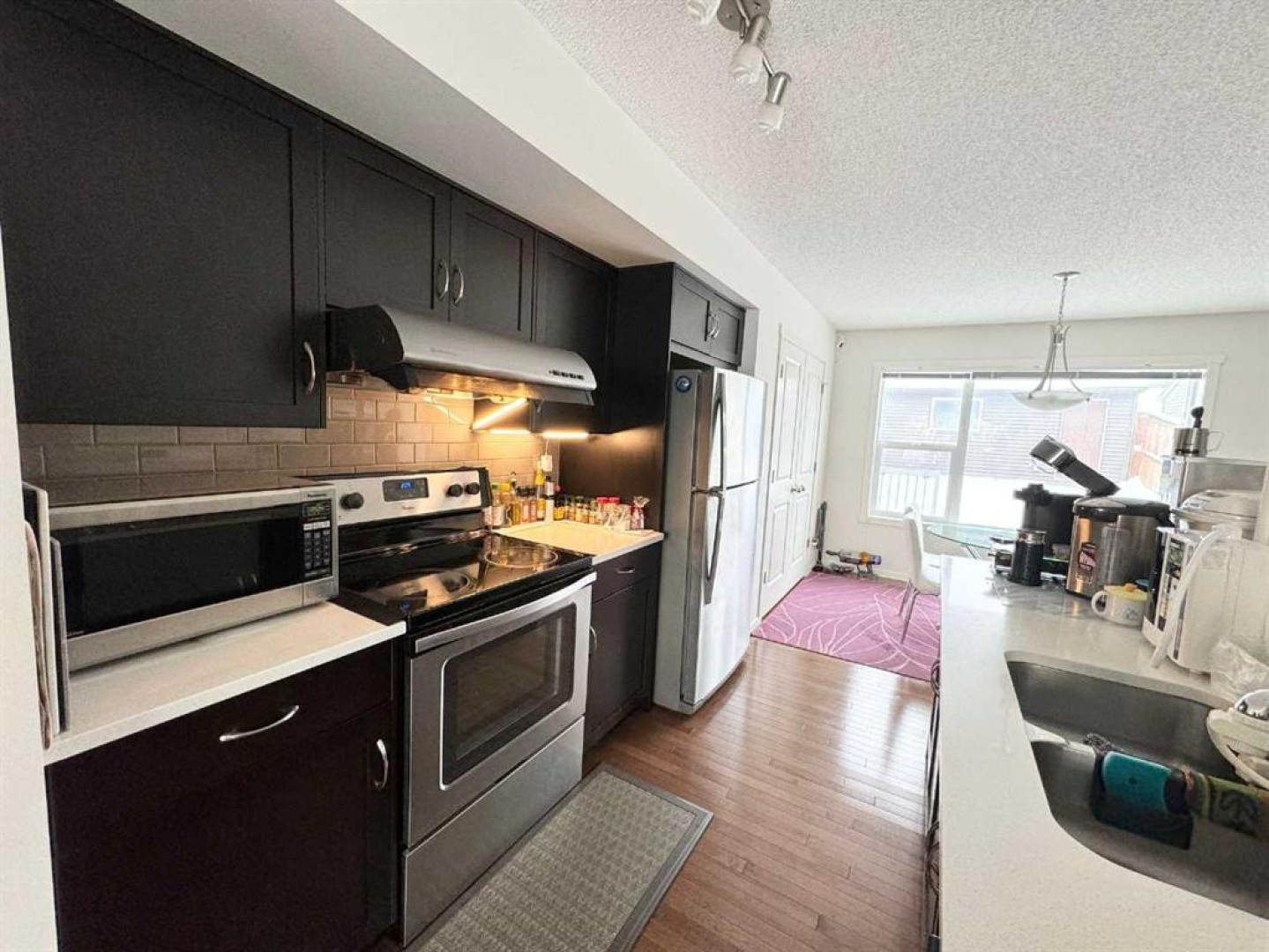 As good as new!!This Homes by Avi built gem is well situated on a quiet street right across from a picturesque park with a sunny south view! This immaculate home in Evanston is a turn key opportunity directly across from the park, offering the ideal family-friendly lifestyle. Step inside to an open-concept layout beginning with a welcoming front entry you'll be greeted by rich dark hardwood floors and tile throughout the main level. The living room is filled with natural light from the south-facing windows with a bright and open living room that flows into the generous dining area with room for the whole family. The well-appointed functional kitchen includes a large centre island, quartz countertops and stainless steel appliances. A rear dinning area and mudroom complete the functional main floor. Upstairs leads you to find 3 well appointed bedrooms including the spacious master suite with a walk-in closet and private ensuite. The secondary bedrooms are bright and thoughtfully designed, with one showcasing a stylish feature wall as well as a full bathroom. The fully developed basement provides a cozy retreat in the family room, a spacious fourth bedroom, and a full bathroom for guests. The laundry room and storage areas in the basement to complete the lower level. Outside, the landscaped backyard is ready to enjoy with a good size deck, walkway, and perfect for both children and pets. The double detached garage provides plenty of additional storage and a place to keep your vehicles out of the elements. This property offers peace of mind and the perfect setting for its next family. This home is centrally located in Evanston, placing you within easy reach of the community’s best amenities. Pathways, parks, and playgrounds are just steps away, while nearby schools make this an ideal spot for families. .