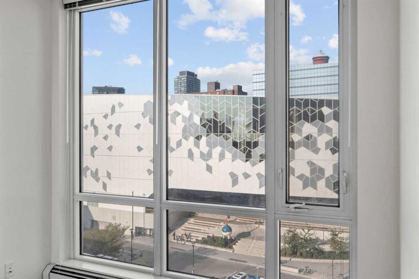 SUN-FILLED SOUTH-FACING 1 BEDROOM + DEN WITH GREAT VIEWS! Located in the heart of East Village, this modern condo offers the ultimate downtown lifestyle. The functional layout includes a spacious bedroom plus a versatile den that can easily serve as a second bedroom or home office. The kitchen features sleek stone counters, ample cabinetry, and a premium stainless steel built-in appliance package, while the combined washer/dryer adds everyday convenience. Enjoy a bright, open living space with floor-to-ceiling windows that showcase daytime sunlight and stunning nighttime skyline views. Step out onto your private balcony to take in the sights of the Central Library. The building is packed with amenities: a rooftop patio with BBQs and 360° city views, a fully equipped gym on the 16th floor, lounge, bike storage, and personal storage lockers. Just steps from the LRT, Studio Bell, restaurants, shopping, and the Central Library, this condo combines style, convenience, and location