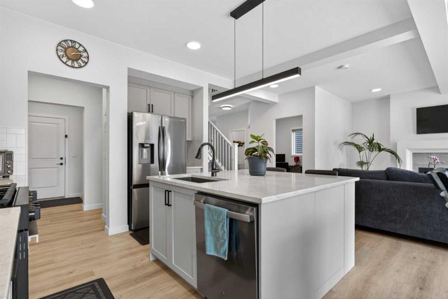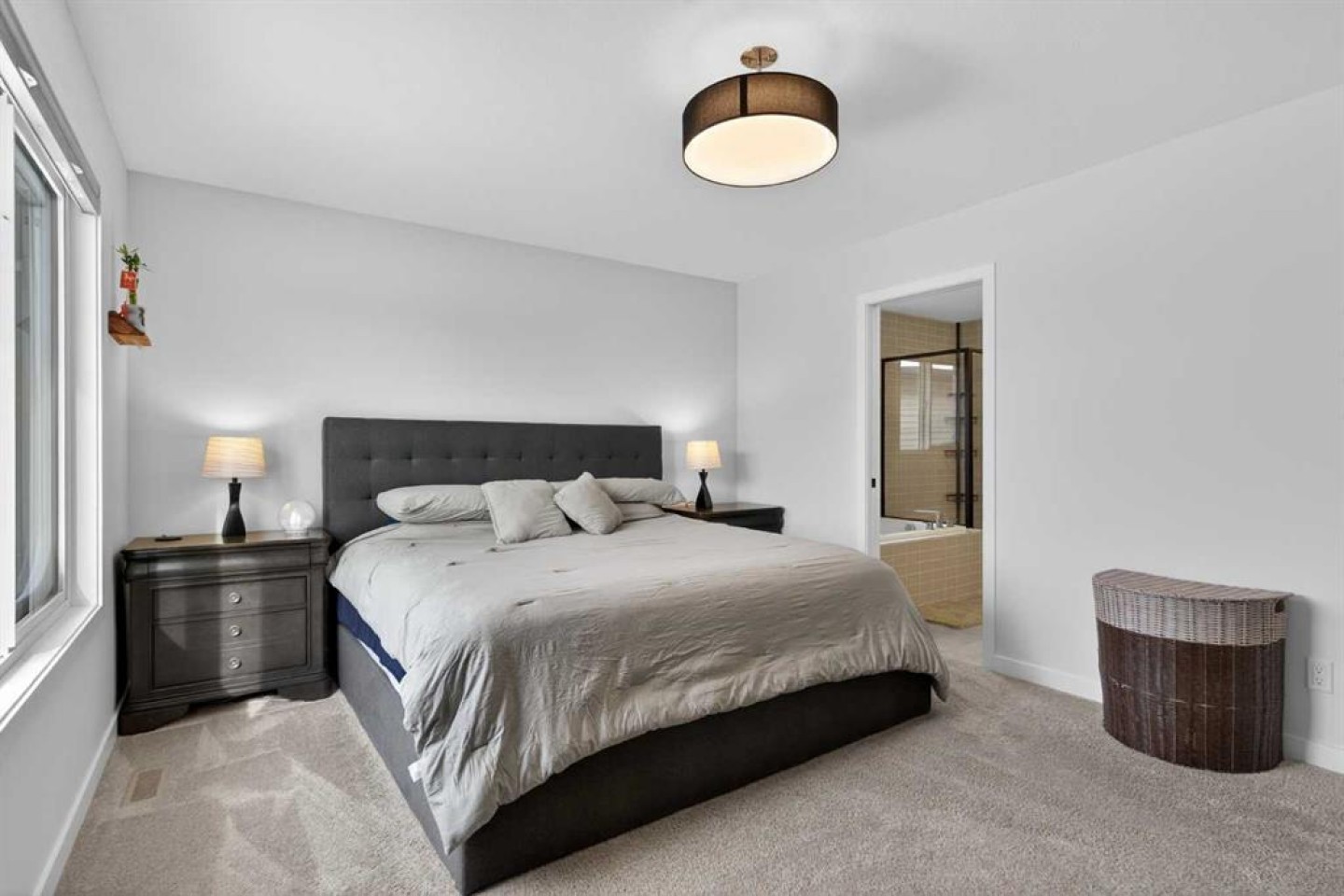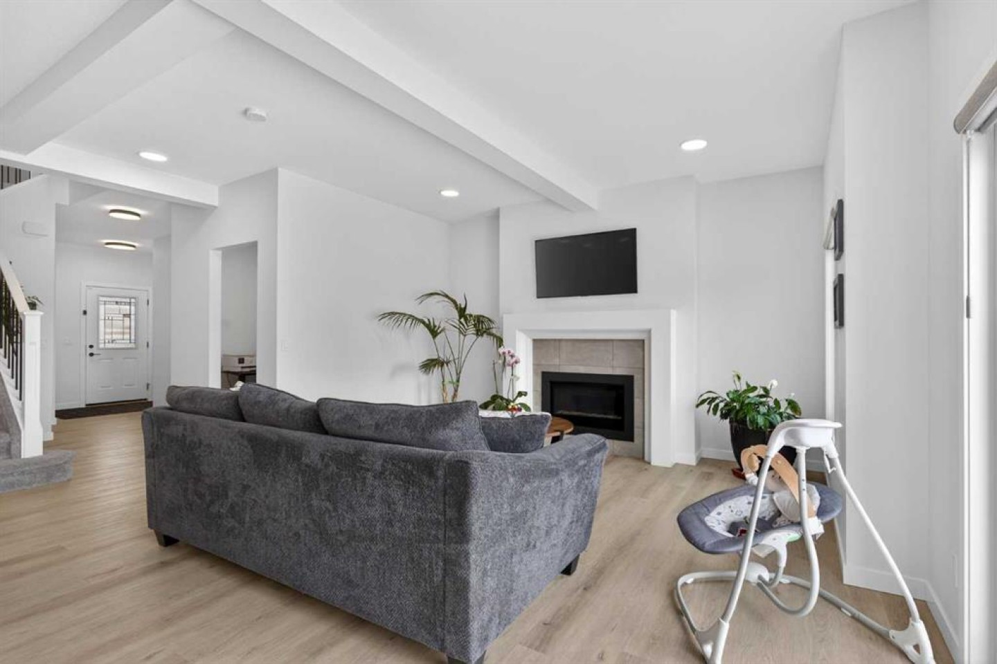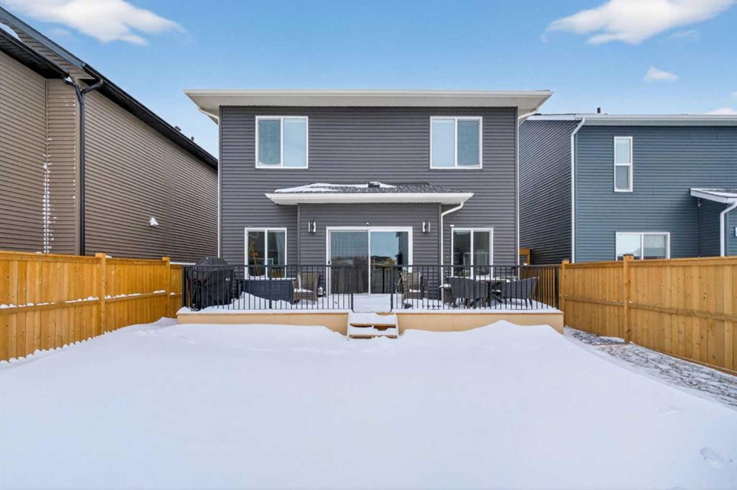 Looking for the perfect home for your family? Well you’ve found it in this beautifully crafted two storey in the popular Airdrie community of Bayside, located here on this quiet crescent within walking distance to neighbourhood parks, ponds & the canals. Built by McKee Homes for the original owners, this wonderful home enjoys luxury vinyl plank floors & quartz countertops, total of 4 bedrooms up, relaxing central air & fantastic outdoor space in the fully fenced & landscaped West backyard. With its 9ft ceilings & expanse of windows, you’ll love the bright & airy main floor with its gracious living room with remote-controlled gas fireplace & beamed ceilings, open concept dining room with views of the backyard, home office alcove & custom kitchen with centre island & quartz counters, butlers & walk-in pantry, ceramic tile backsplash & upgraded stainless steel appliances including a Samsung gas stove/convection oven. Upstairs there are 4 lovely bedrooms highlighted by the West-facing primary bedroom with walk-in closet & ensuite with quartz-topped double vanities, separate shower & soaker tub. Another full bathroom is shared by the other 3 bedrooms…2 of which have walk-in closets. A spacious bonus room & laundry room with GE steam washer & dryer complete the 2nd floor. The unspoiled lower level – with roughed-in bathroom plumbing & oversized windows, offers tremendous potential for future living space. Additional features include Clean Comfort HVAC system & triple-pane windows, natural gas line for your BBQ on the backyard deck, garage door opener with built-in camera, adjustable LED lighting throughout, Ecobee thermostat & upgraded SMART appliances. As one of Southwest Airdrie’s premier family communities, Bayside features 100km of paved pathways winding throughout the neighbourhood & along picturesque canals & ponds, with numerous parks & playgrounds for year-round activities. Nose Creek Elementary & W.H. Croxford High are both just minutes away, & with its prime location to Yankee Valley Blvd means all regional amenities are close-by (Chinook Winds Regional Park, Genesis Place, retail centers, Woodside Golf Course, etc) & you’ve got quick & easy access to the QEII to Cross Iron Mills, the airport & Calgary.
