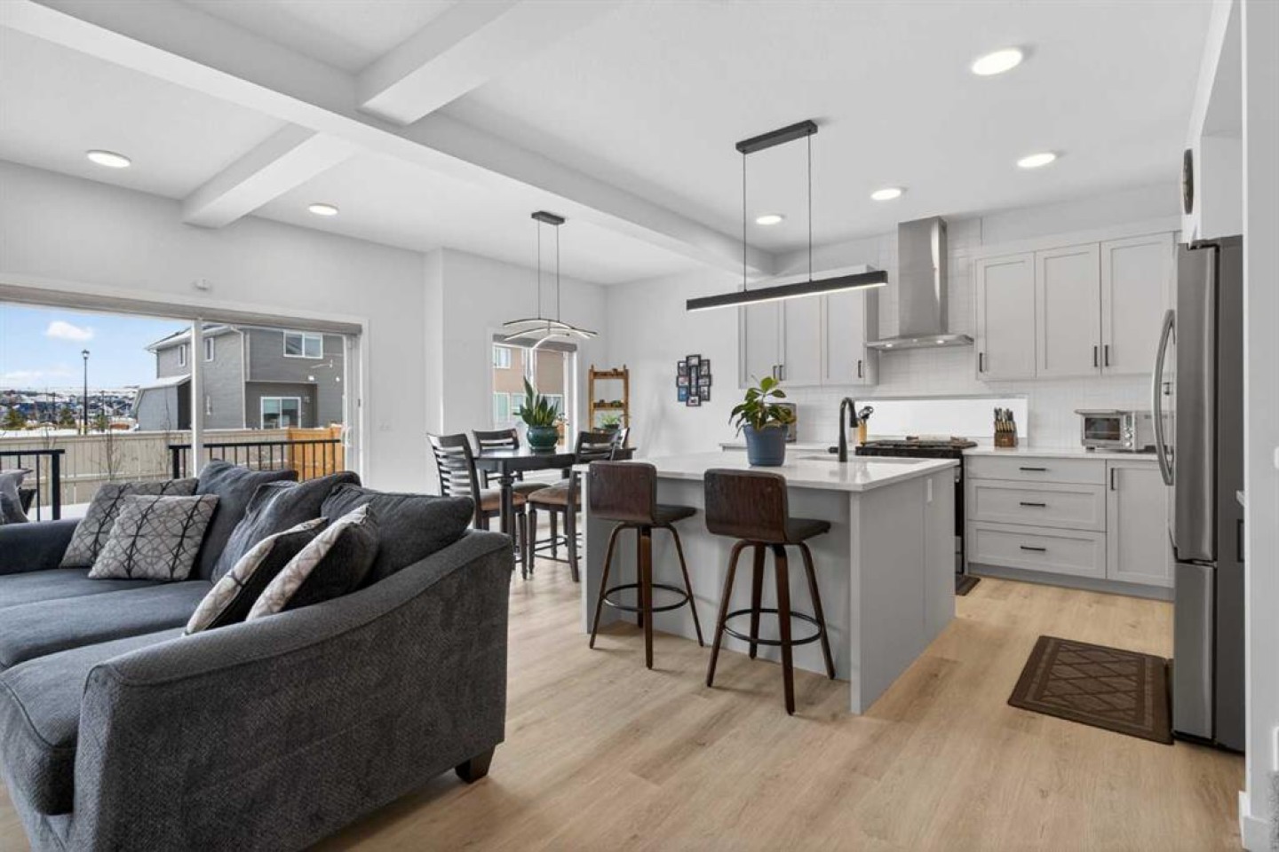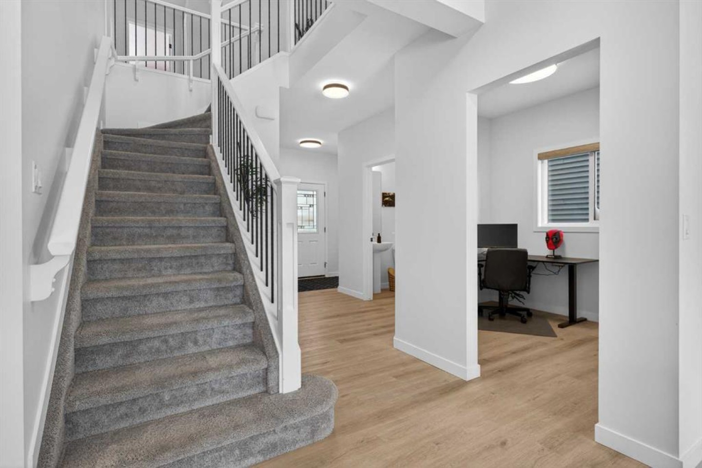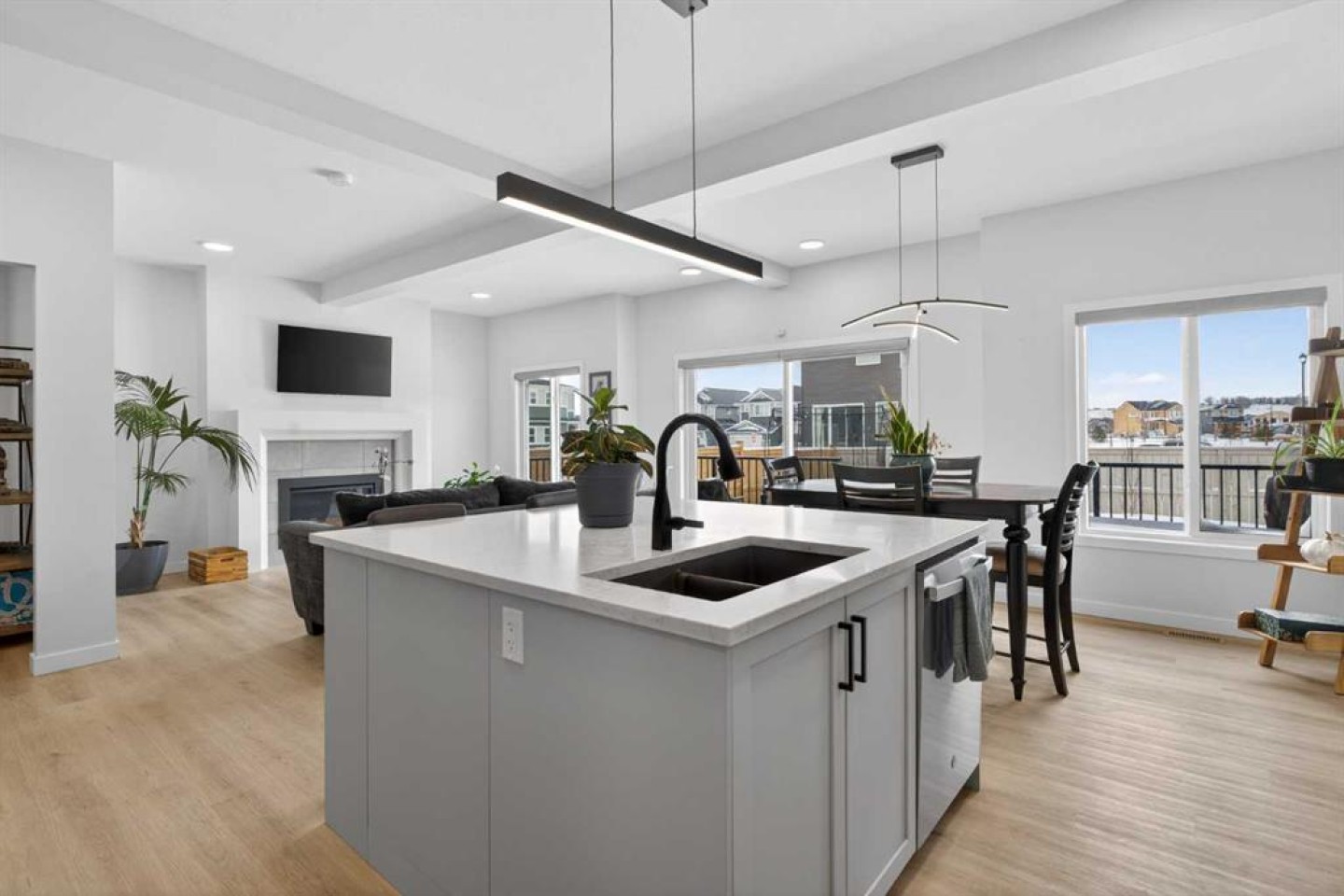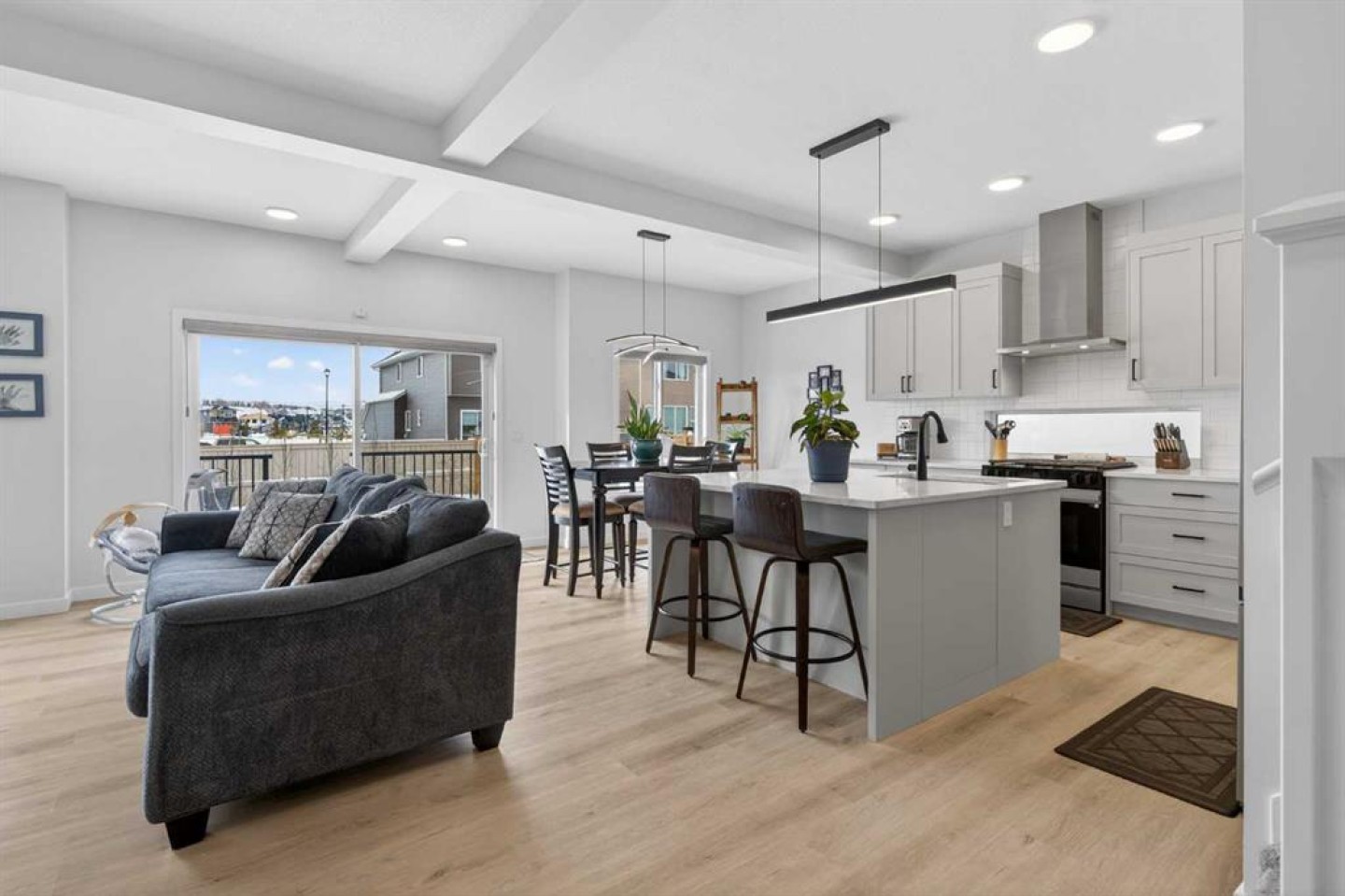 Looking for the perfect home for your family? Well you’ve found it in this beautifully crafted two storey in the popular Airdrie community of Bayside, located here on this quiet crescent within walking distance to neighbourhood parks, ponds & the canals. Built by McKee Homes for the original owners, this wonderful home enjoys luxury vinyl plank floors & quartz countertops, total of 4 bedrooms up, relaxing central air & fantastic outdoor space in the fully fenced & landscaped West backyard. With its 9ft ceilings & expanse of windows, you’ll love the bright & airy main floor with its gracious living room with remote-controlled gas fireplace & beamed ceilings, open concept dining room with views of the backyard, home office alcove & custom kitchen with centre island & quartz counters, butlers & walk-in pantry, ceramic tile backsplash & upgraded stainless steel appliances including a Samsung gas stove/convection oven. Upstairs there are 4 lovely bedrooms highlighted by the West-facing primary bedroom with walk-in closet & ensuite with quartz-topped double vanities, separate shower & soaker tub. Another full bathroom is shared by the other 3 bedrooms…2 of which have walk-in closets. A spacious bonus room & laundry room with GE steam washer & dryer complete the 2nd floor. The unspoiled lower level – with roughed-in bathroom plumbing & oversized windows, offers tremendous potential for future living space. Additional features include Clean Comfort HVAC system & triple-pane windows, natural gas line for your BBQ on the backyard deck, garage door opener with built-in camera, adjustable LED lighting throughout, Ecobee thermostat & upgraded SMART appliances. As one of Southwest Airdrie’s premier family communities, Bayside features 100km of paved pathways winding throughout the neighbourhood & along picturesque canals & ponds, with numerous parks & playgrounds for year-round activities. Nose Creek Elementary & W.H. Croxford High are both just minutes away, & with its prime location to Yankee Valley Blvd means all regional amenities are close-by (Chinook Winds Regional Park, Genesis Place, retail centers, Woodside Golf Course, etc) & you’ve got quick & easy access to the QEII to Cross Iron Mills, the airport & Calgary.