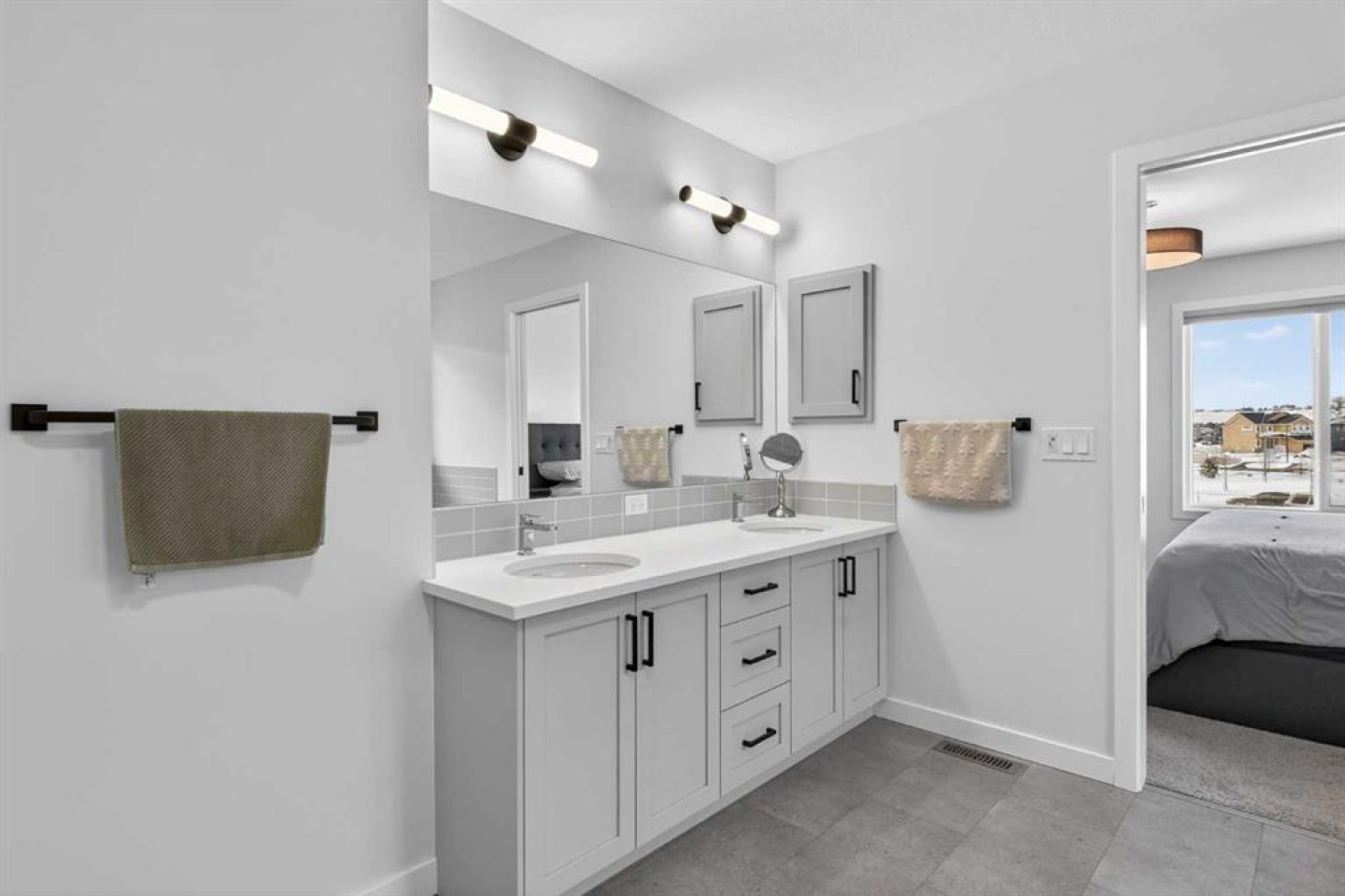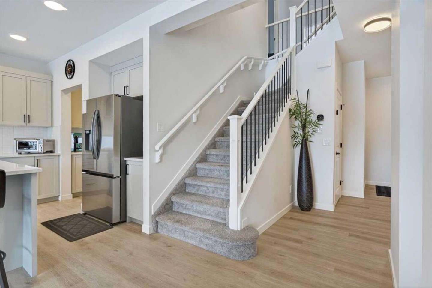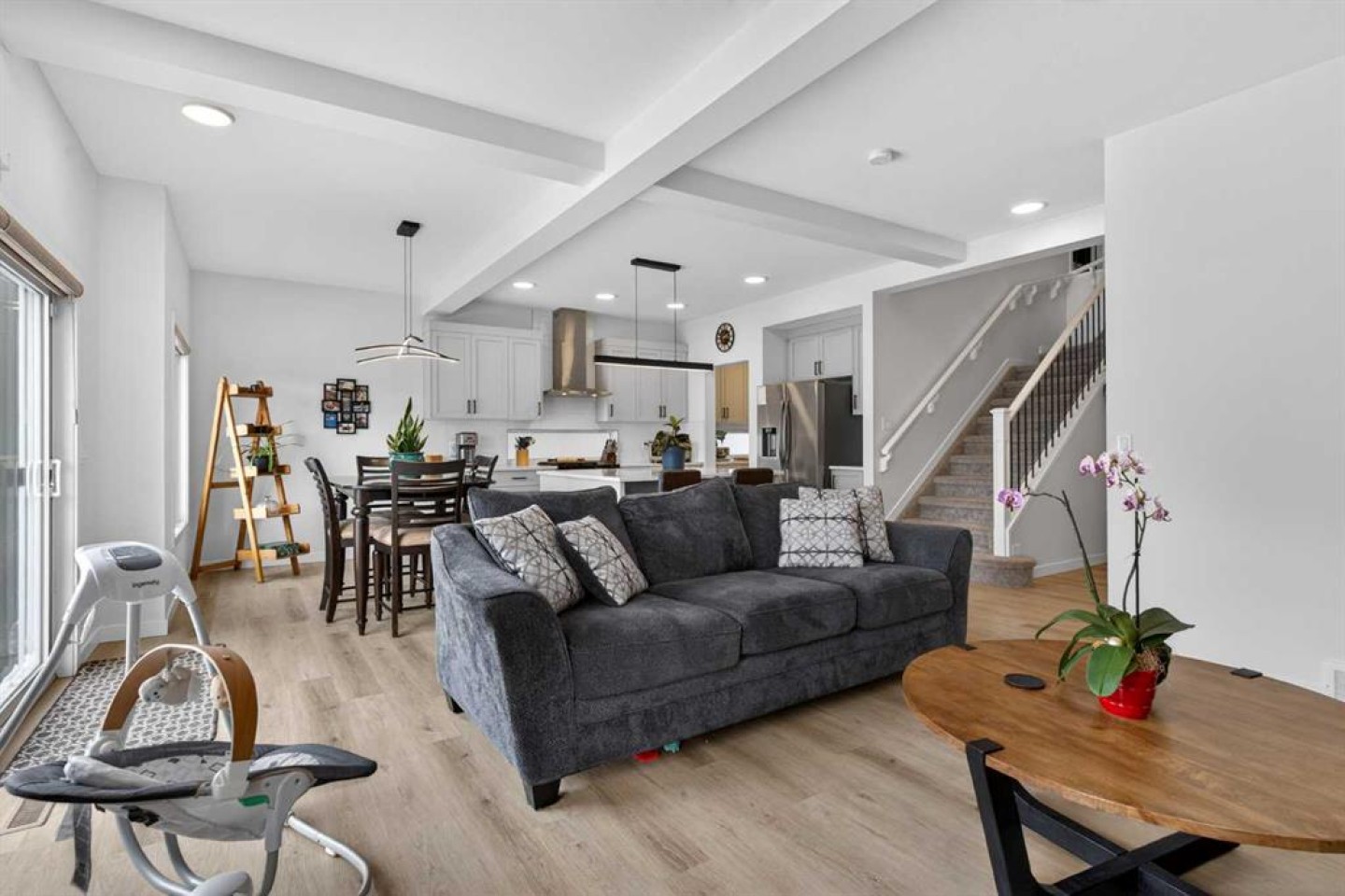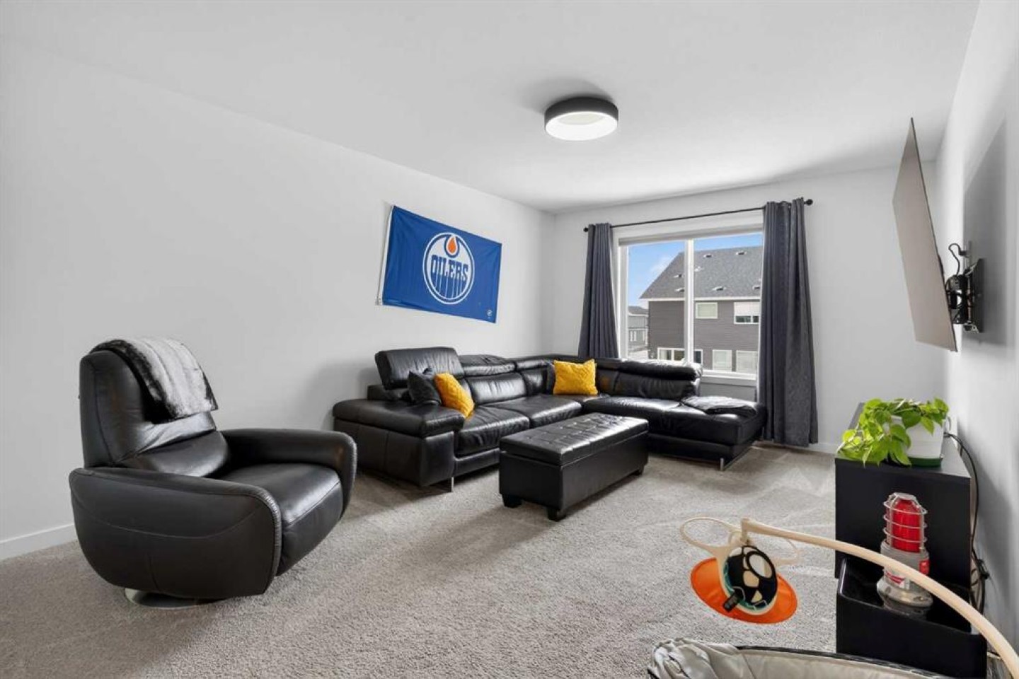 Looking for the perfect home for your family? Well you’ve found it in this beautifully crafted two storey in the popular Airdrie community of Bayside, located here on this quiet crescent within walking distance to neighbourhood parks, ponds & the canals. Built by McKee Homes for the original owners, this wonderful home enjoys luxury vinyl plank floors & quartz countertops, total of 4 bedrooms up, relaxing central air & fantastic outdoor space in the fully fenced & landscaped West backyard. With its 9ft ceilings & expanse of windows, you’ll love the bright & airy main floor with its gracious living room with remote-controlled gas fireplace & beamed ceilings, open concept dining room with views of the backyard, home office alcove & custom kitchen with centre island & quartz counters, butlers & walk-in pantry, ceramic tile backsplash & upgraded stainless steel appliances including a Samsung gas stove/convection oven. Upstairs there are 4 lovely bedrooms highlighted by the West-facing primary bedroom with walk-in closet & ensuite with quartz-topped double vanities, separate shower & soaker tub. Another full bathroom is shared by the other 3 bedrooms…2 of which have walk-in closets. A spacious bonus room & laundry room with GE steam washer & dryer complete the 2nd floor. The unspoiled lower level – with roughed-in bathroom plumbing & oversized windows, offers tremendous potential for future living space. Additional features include Clean Comfort HVAC system & triple-pane windows, natural gas line for your BBQ on the backyard deck, garage door opener with built-in camera, adjustable LED lighting throughout, Ecobee thermostat & upgraded SMART appliances. As one of Southwest Airdrie’s premier family communities, Bayside features 100km of paved pathways winding throughout the neighbourhood & along picturesque canals & ponds, with numerous parks & playgrounds for year-round activities. Nose Creek Elementary & W.H. Croxford High are both just minutes away, & with its prime location to Yankee Valley Blvd means all regional amenities are close-by (Chinook Winds Regional Park, Genesis Place, retail centers, Woodside Golf Course, etc) & you’ve got quick & easy access to the QEII to Cross Iron Mills, the airport & Calgary.