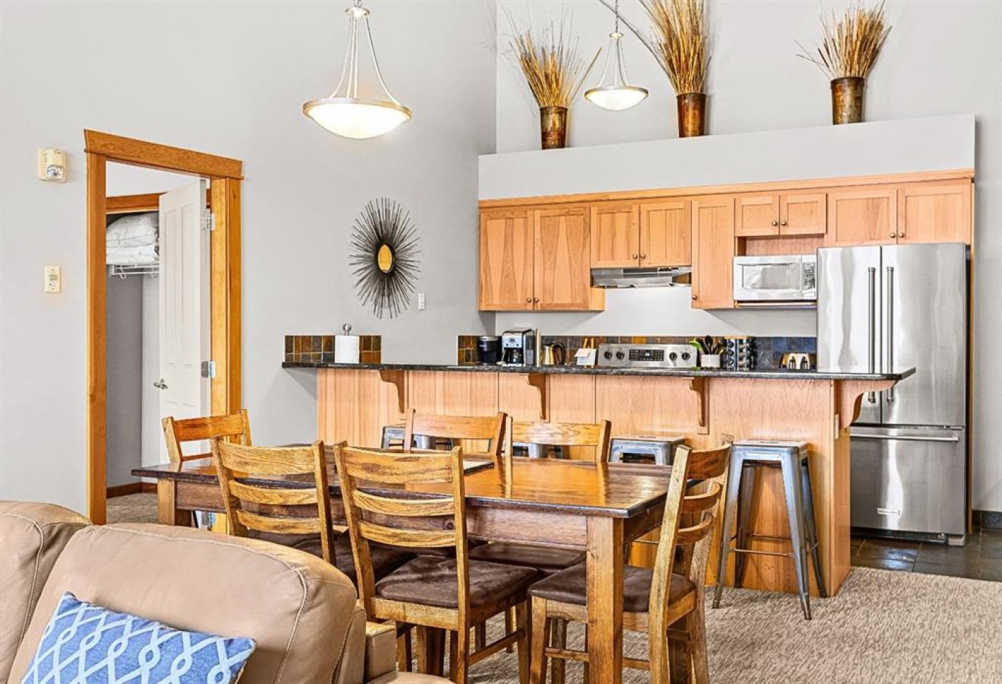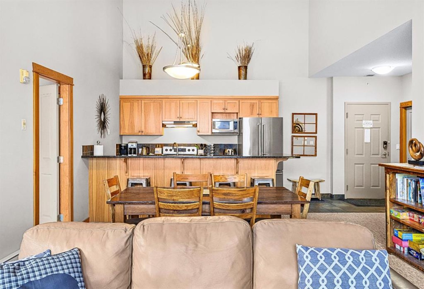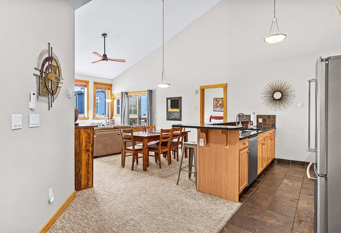 Perched on the end of the top floor in the vibrant heart of Canmore, this 3-bedroom, turn-key short-term rental blends alpine grandeur with effortless income potential. Bordering the iconic wilderness of Banff National Park, you and your guests will marvel at the endless Rocky Mountain peaks that shift beautifully with the changing light of day. At almost 1300 sqft and priced at $1,379,000+GST, this is the time to finally own in Canmore. Inside, soaring vaulted ceilings crown every room, enhancing the sense of space and drawing in natural light from every angle. The bedrooms are positioned to offer the rare luxury of waking up to uninterrupted mountain views from the pillows of all 3 beds. In the living room, large windows frame the Rockies so completely that every seat becomes the best seat in the house. The large kitchen is designed for gathering and entertaining, featuring rich granite countertops, generous cabinetry, and ample preparation space. Whether hosting an après-ski dinner or a relaxed morning brunch before heading out on the trails, the open-concept layout flows seamlessly into the dining and living areas, creating an inviting atmosphere for connection and comfort. Offered fully furnished, the residence is thoughtfully curated and truly turn-key, ready for immediate enjoyment or continued short-term rental success. With two full bathrooms and convenient in-suite laundry, practicality meets elevated mountain living. As a proven income generator, the property offers exceptional flexibility, serving equally well as a personal alpine retreat and a high-performing investment. Residents and guests enjoy access to 2 rooftop hot tubs overlooking the surrounding mountain vistas, where evenings can be spent soaking under a canopy of stars. The complex also features an additional indoor hot tub and 2 well equipped gyms, enhancing the resort-style experience year-round. Located in downtown Canmore, every possible convenience is just steps away, including acclaimed restaurants, grocery stores, ski and bike shops, locally owned boutiques, artisan goods, and even your morning stop at Starbucks or Tim Hortons. Here, you can leave the cars behind in your warm and secure 2 car parking spot and immerse yourself in the rhythm of mountain town living. This top-floor corner Rocky Mountain sanctuary offers views from every room, comfort in every detail, and the rare opportunity to own a fully furnished, high-performing property on the doorstep of one of Canada’s most celebrated national parks. Call and book a viewing today!