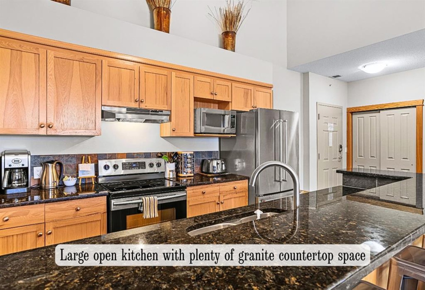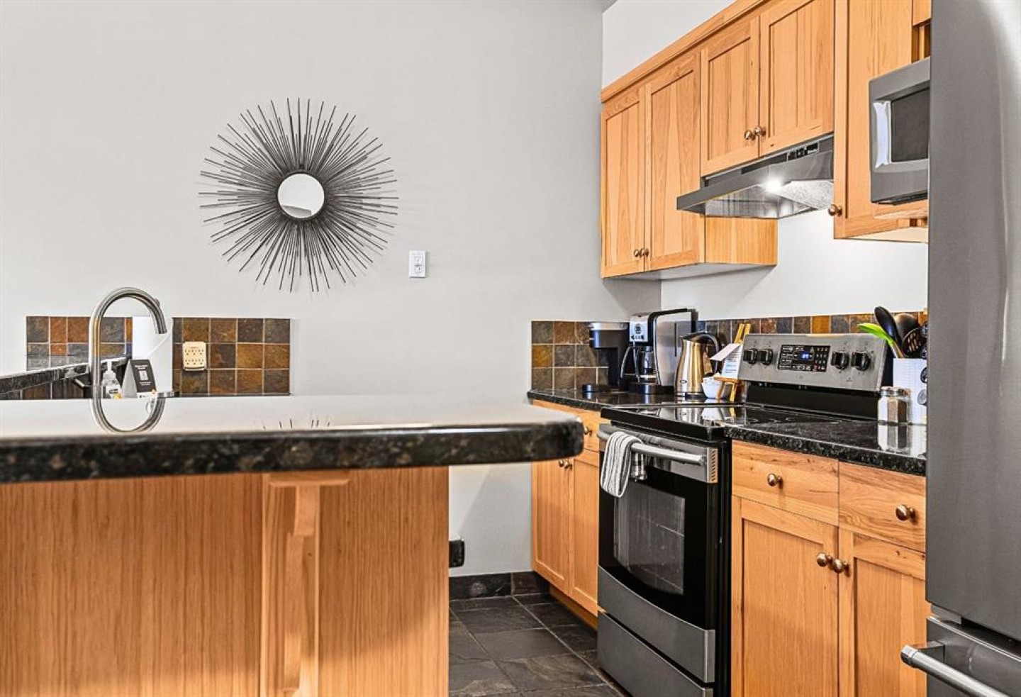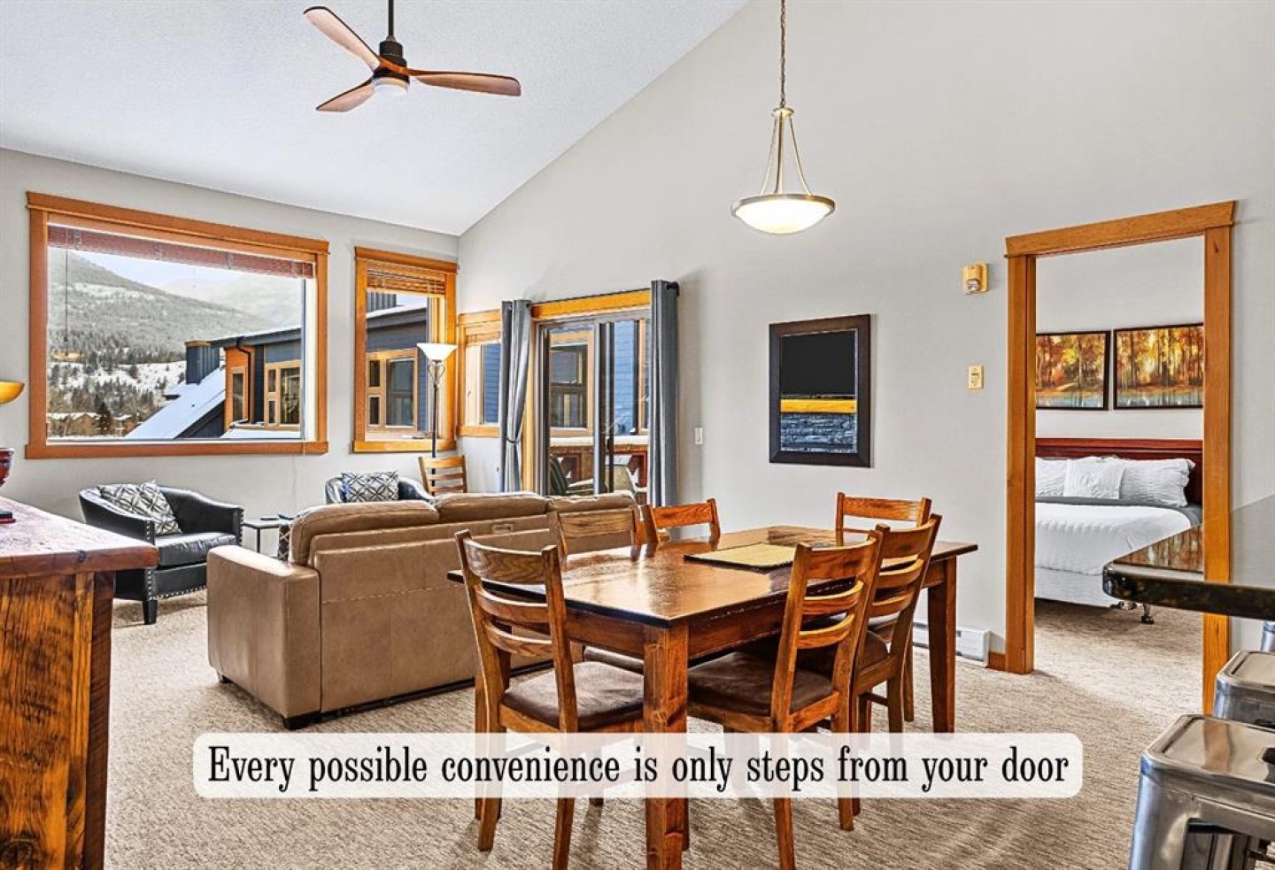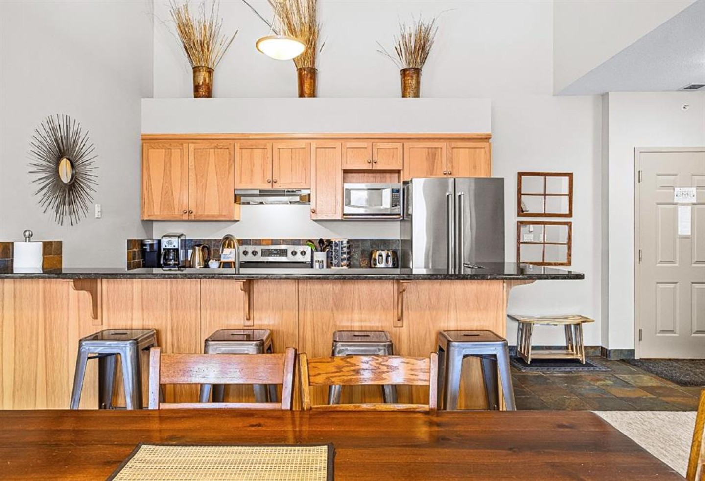 Perched on the end of the top floor in the vibrant heart of Canmore, this 3-bedroom, turn-key short-term rental blends alpine grandeur with effortless income potential. Bordering the iconic wilderness of Banff National Park, you and your guests will marvel at the endless Rocky Mountain peaks that shift beautifully with the changing light of day. At almost 1300 sqft and priced at $1,379,000+GST, this is the time to finally own in Canmore. Inside, soaring vaulted ceilings crown every room, enhancing the sense of space and drawing in natural light from every angle. The bedrooms are positioned to offer the rare luxury of waking up to uninterrupted mountain views from the pillows of all 3 beds. In the living room, large windows frame the Rockies so completely that every seat becomes the best seat in the house. The large kitchen is designed for gathering and entertaining, featuring rich granite countertops, generous cabinetry, and ample preparation space. Whether hosting an après-ski dinner or a relaxed morning brunch before heading out on the trails, the open-concept layout flows seamlessly into the dining and living areas, creating an inviting atmosphere for connection and comfort. Offered fully furnished, the residence is thoughtfully curated and truly turn-key, ready for immediate enjoyment or continued short-term rental success. With two full bathrooms and convenient in-suite laundry, practicality meets elevated mountain living. As a proven income generator, the property offers exceptional flexibility, serving equally well as a personal alpine retreat and a high-performing investment. Residents and guests enjoy access to 2 rooftop hot tubs overlooking the surrounding mountain vistas, where evenings can be spent soaking under a canopy of stars. The complex also features an additional indoor hot tub and 2 well equipped gyms, enhancing the resort-style experience year-round. Located in downtown Canmore, every possible convenience is just steps away, including acclaimed restaurants, grocery stores, ski and bike shops, locally owned boutiques, artisan goods, and even your morning stop at Starbucks or Tim Hortons. Here, you can leave the cars behind in your warm and secure 2 car parking spot and immerse yourself in the rhythm of mountain town living. This top-floor corner Rocky Mountain sanctuary offers views from every room, comfort in every detail, and the rare opportunity to own a fully furnished, high-performing property on the doorstep of one of Canada’s most celebrated national parks. Call and book a viewing today!