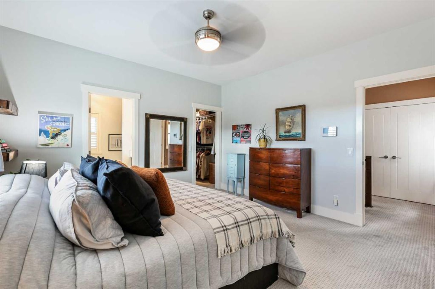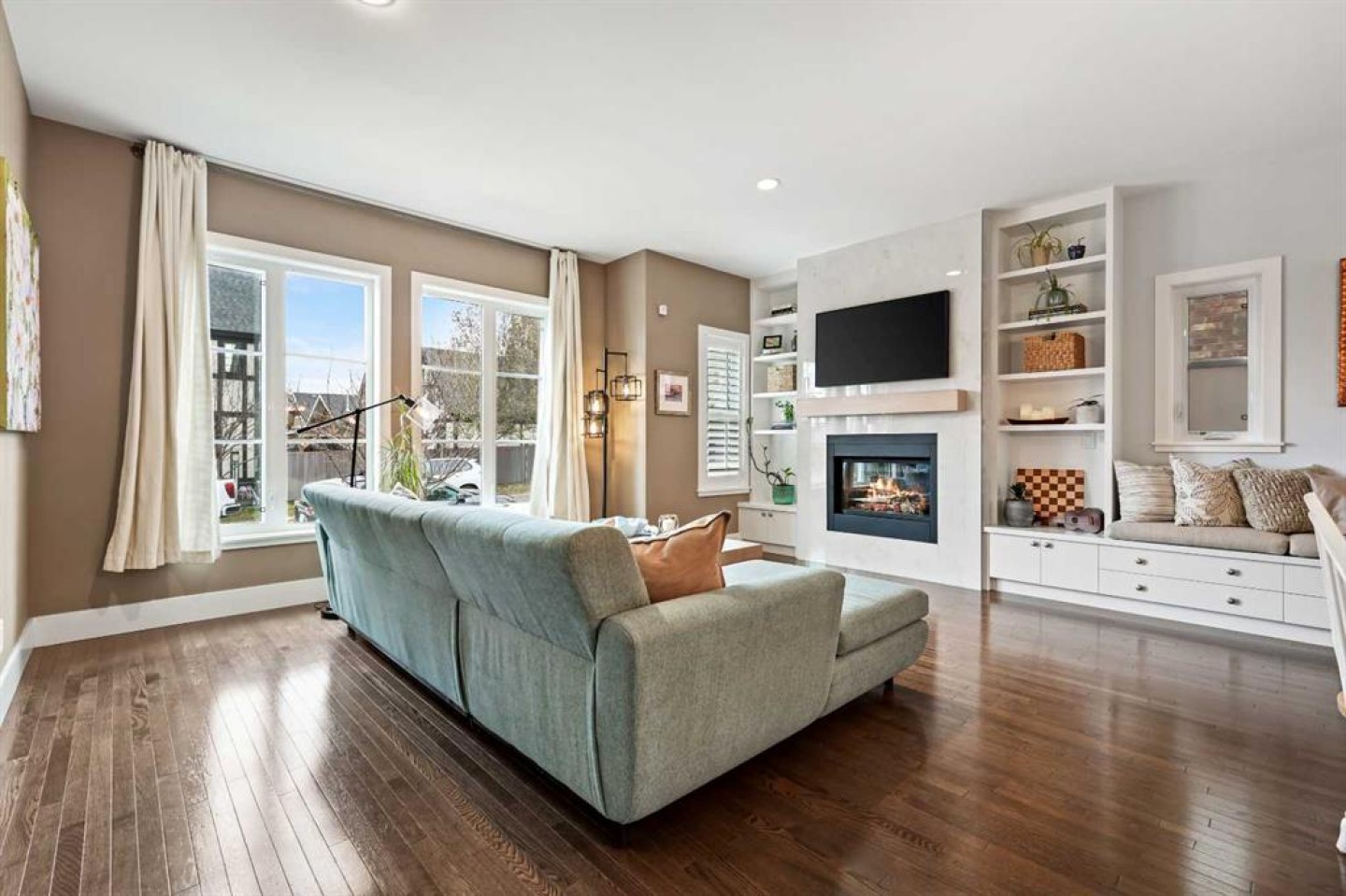 Welcome to this exceptional Custom-Built home, perfectly situated in one of Calgary’s most sought-after inner-city communities. Boasting over 2,600 sq. ft. of meticulously designed living space, this home blends refined craftsmanship with modern elegance — all just minutes from downtown. Step through the welcoming front entrance into an open-concept main level featuring 9-ft ceilings, rich hardwood floors throughout, and a designer staircase that seamlessly connects the home’s beautiful living spaces. The living room exudes warmth and style, anchored by a floor-to-ceiling tiled gas fireplace — a perfect focal point for cozy evenings. Custom built-in cabinetry adds both charm and functionality, creating a space designed for comfort and connection. The dining area offers an elegant setting for gatherings, while the chef-inspired kitchen is truly a showpiece -complete with a massive quartz island, premium stainless steel appliances, extended cabinetry, and abundant storage. Whether you love to entertain or cook with family, this kitchen delivers both form and function. From the kitchen, step outside to your professionally landscaped, low-maintenance backyard — fully fenced, south-facing, and exceptionally private. The extended patio creates the perfect space for outdoor dining and relaxation in the sun. Upstairs, discover three spacious bedrooms, each designed for rest and relaxation. The primary suite is a private retreat, featuring a spa-inspired ensuite with a dual vanity, soaker tub, tiled glass shower, and a generous walk-in closet. Large windows and custom window coverings complement the 9-ft ceilings, bathing each room in natural light. The upper-level laundry adds additional convenience. Downstairs enjoy the fully developed basement extending the home’s versatility — rec room with built-in surround sound, fourth bedroom and/or home gym with a murphy bed, and a stylish four-piece bathroom completes this space. Additional luxury upgrades include Air Conditioning, GEM Stone exterior lighting (never hang Christmas lights again), central vacuum system, and more. Located in vibrant Currie Barracks, you’re surrounded by parks including outdoor rink, splash pad, playgrounds, walking paths, schools, and local amenities — plus easy access to the downtown core in under 10 minutes. Bonus **Approved City Development Permit for a future Carriage Home — an incredible opportunity for added value or income potential. Call today to book your Showing!