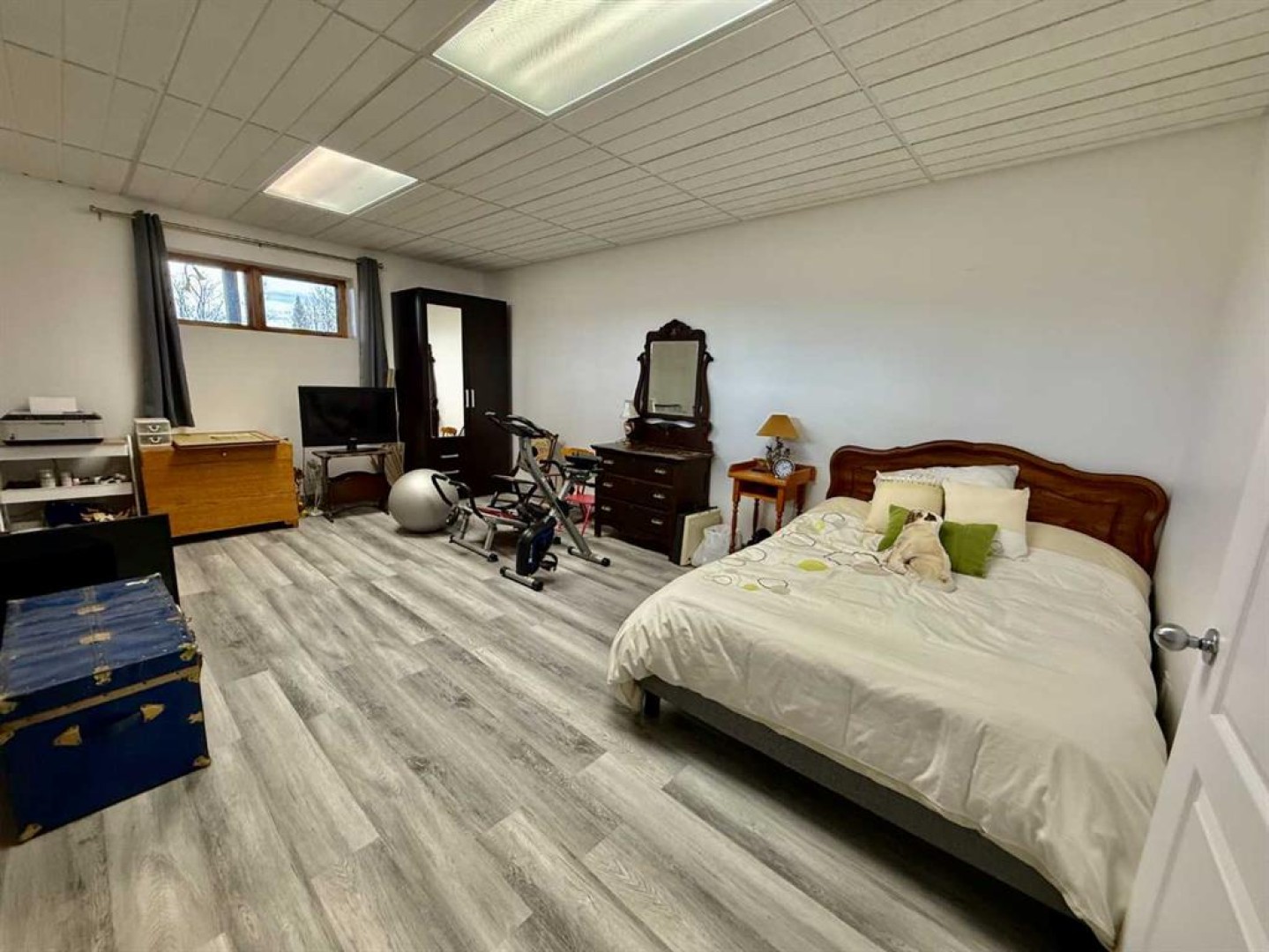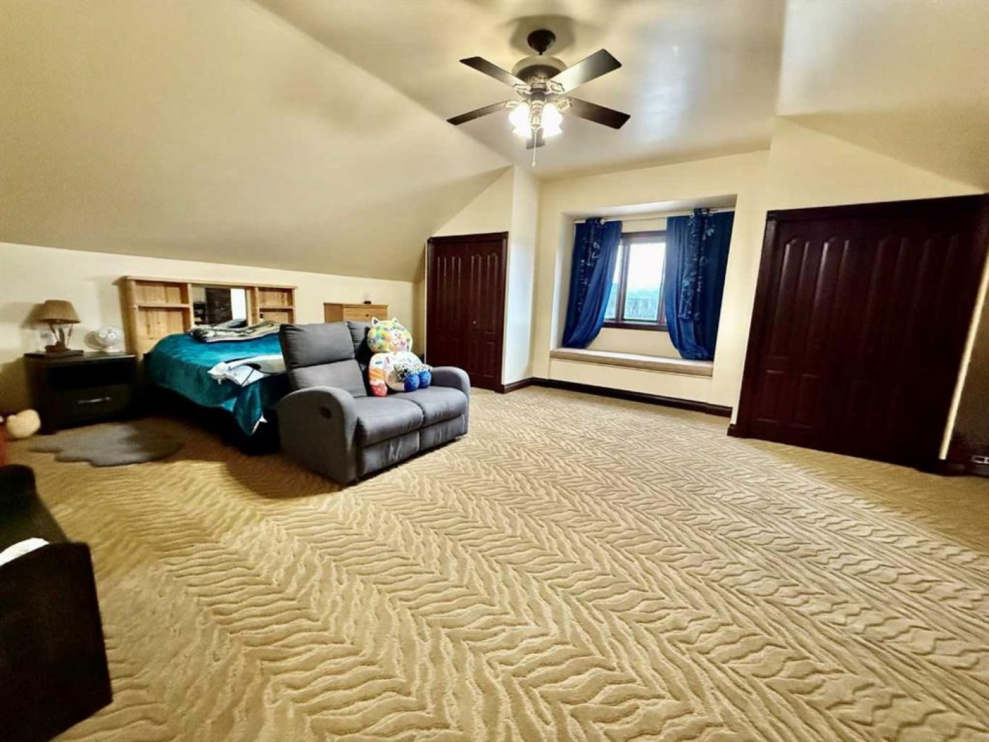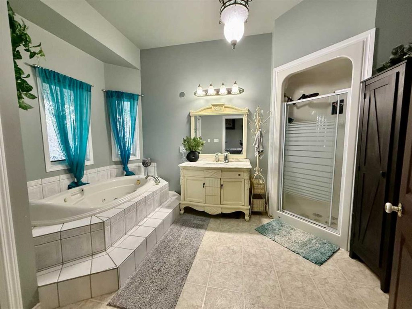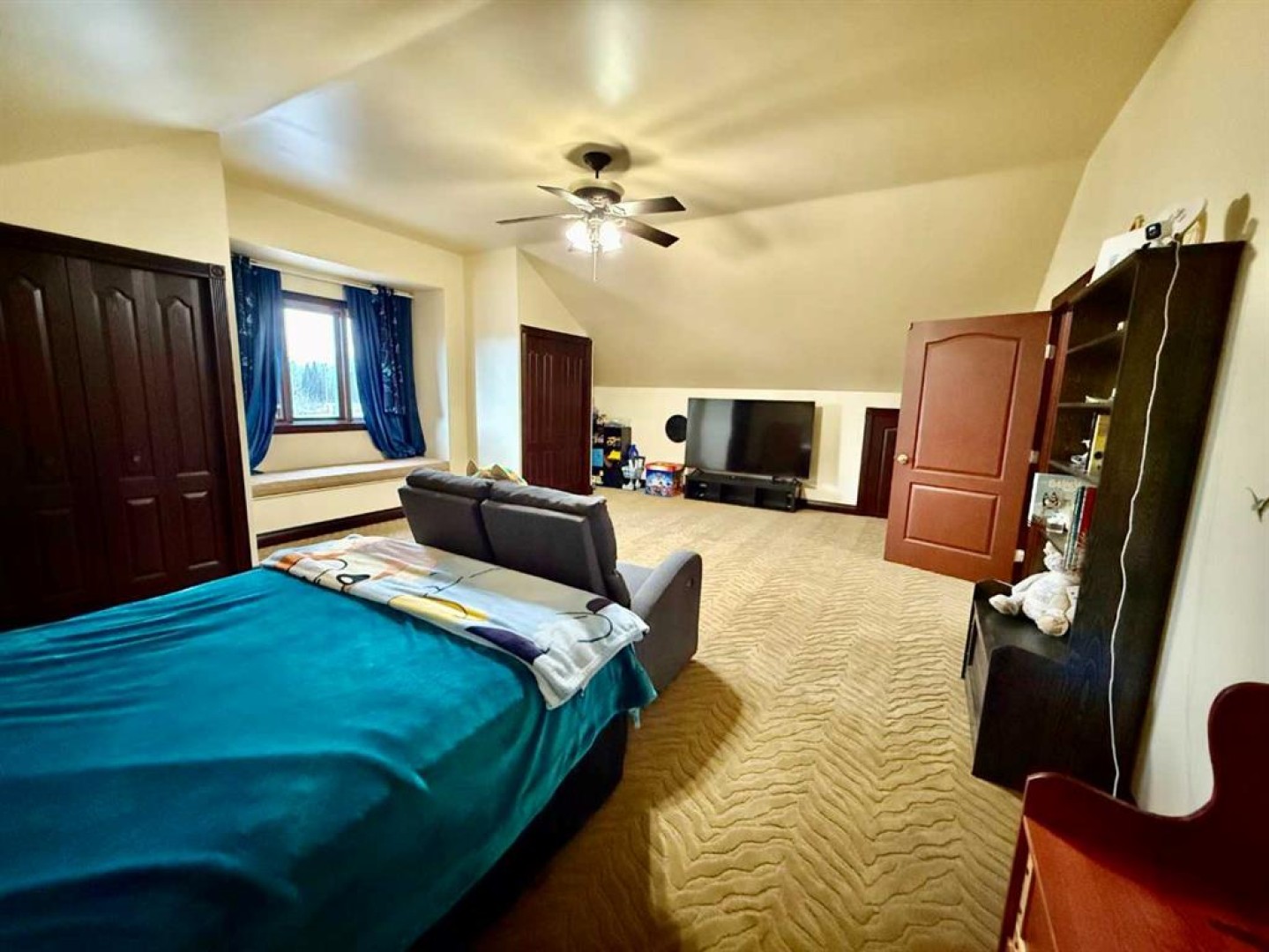 Set on 9.96 private acres surrounded by crown land, this exceptional 5,412 sq. ft. estate offers the perfect blend of luxury, functionality, and breathtaking mountain views. With a stunning 1,688 sq. ft. wrap-around deck, this property is designed to embrace its peaceful setting and expansive surroundings. The versatile zoning allows for a variety of uses, making this acreage as practical as it is beautiful. Step inside through the east entrance and you’re welcomed by an impressive sense of space. The expansive dining area flows seamlessly into the thoughtfully designed kitchen, featuring tile flooring, an eating bar, updated fridge and wall oven, walk-in pantry, and soaring 10 ft. ceilings. Just off the kitchen, the 3-season sunroom—roughed in for electric heat—offers the perfect place to unwind while enjoying the views. The living room showcases detailed custom trim work, a cozy wood stove, and large west-facing windows that frame stunning mountain vistas. The primary suite is a private retreat, complete with a walk-in closet and luxurious ensuite. The main floor also includes a full bathroom, spacious laundry room, and additional walk-in pantry for added convenience. Upstairs, you’ll find two oversized bedrooms (with a framed doorway to easily convert into three), along with a beautifully appointed bathroom featuring a soaker tub and walk-in shower—an ideal space for children or guests. The fully developed basement offers 9 ft. ceilings, a generous family room, two additional bedrooms, a 3-piece bathroom with updated sink and vanity, a second kitchen, new flooring throughout, and a utility room—perfect for extended family or added flexibility. Comfort is paramount with in-floor heating on every level, controlled by seven separate zones for customized climate control. Outdoors, the property continues to impress with stamped concrete walkways, a greenhouse, partial fencing with secure gates, and a heated 28' x 36' shop complete with mezzanine, cold room, and roughed-in in-floor heat. An additional hay shed with seacan storage on either side adds even more utility to this remarkable acreage. This is a rare opportunity to own a private mountain-view estate that truly has it all.