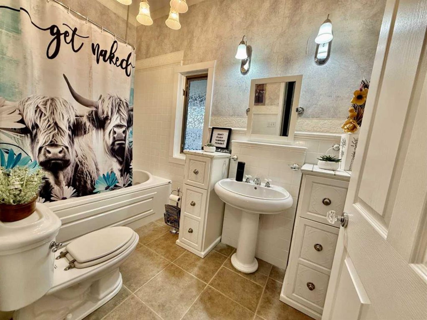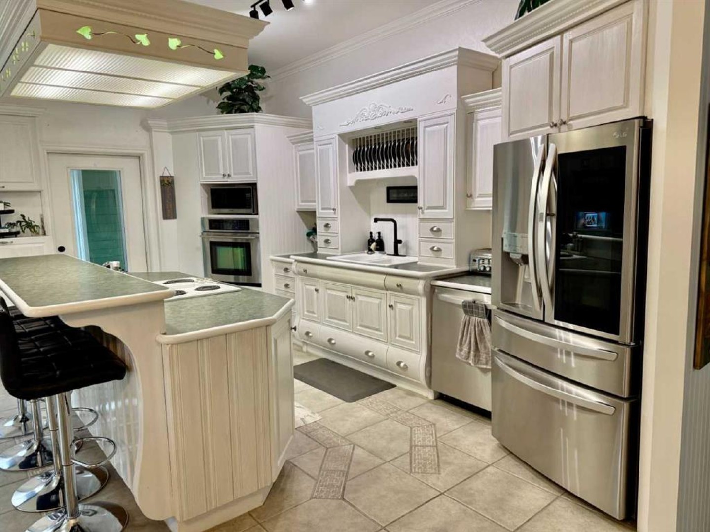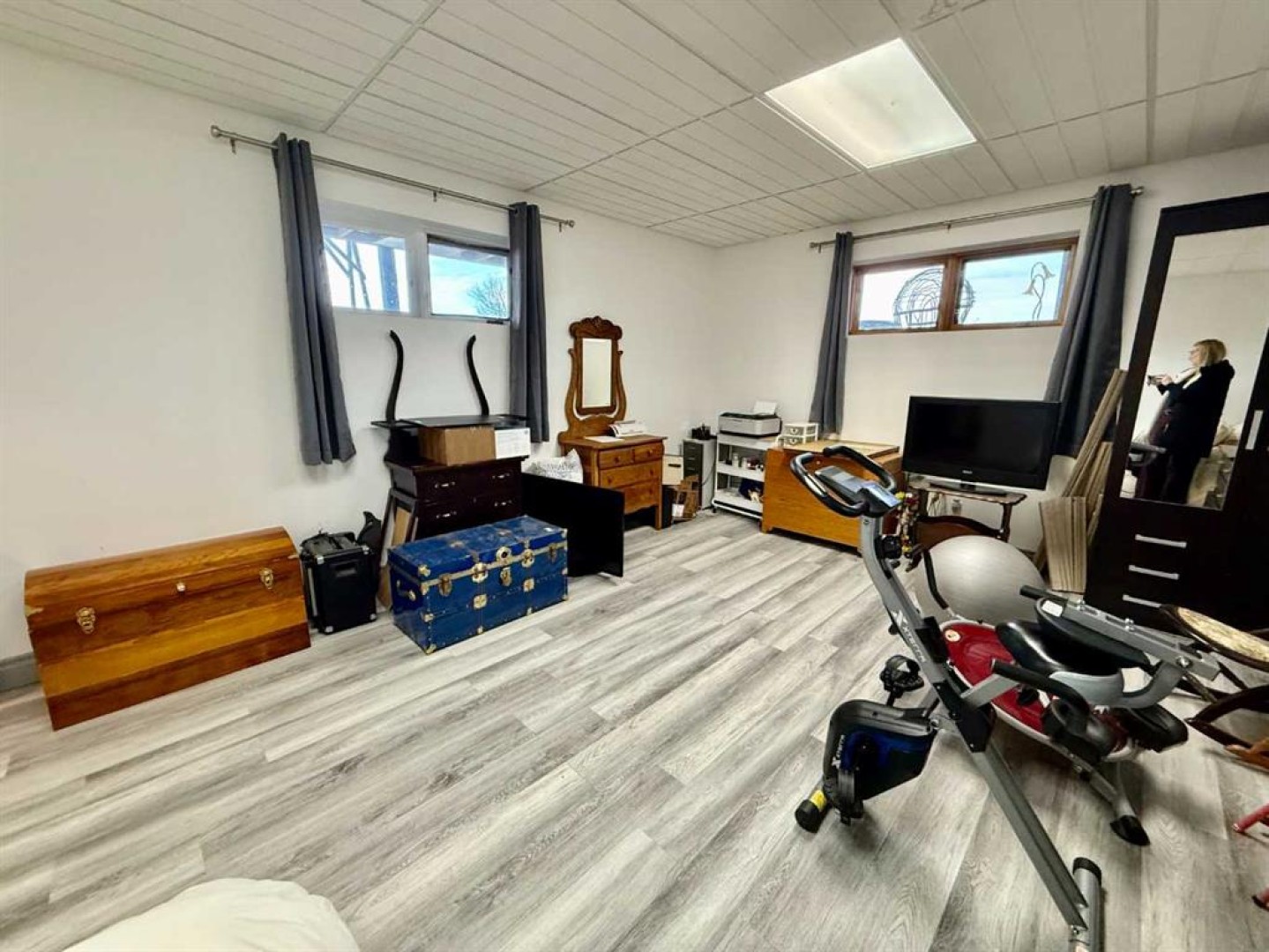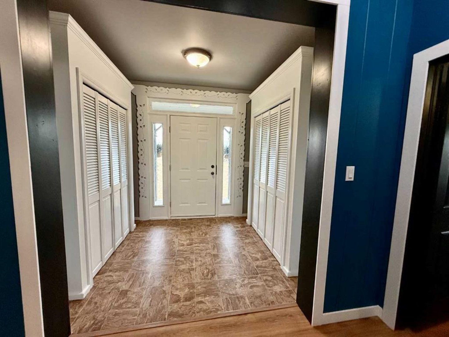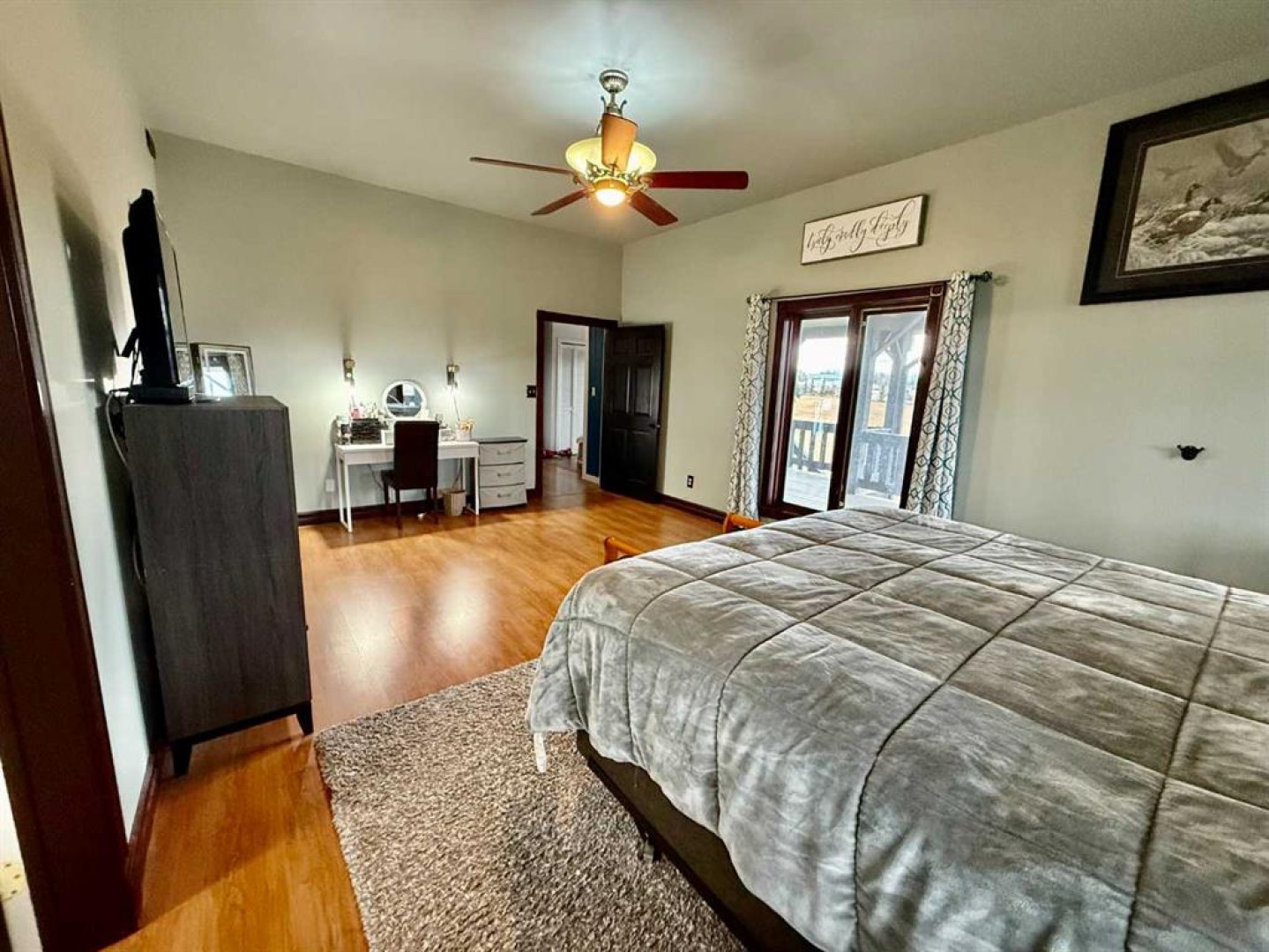 Set on 9.96 private acres surrounded by crown land, this exceptional 5,412 sq. ft. estate offers the perfect blend of luxury, functionality, and breathtaking mountain views. With a stunning 1,688 sq. ft. wrap-around deck, this property is designed to embrace its peaceful setting and expansive surroundings. The versatile zoning allows for a variety of uses, making this acreage as practical as it is beautiful. Step inside through the east entrance and you’re welcomed by an impressive sense of space. The expansive dining area flows seamlessly into the thoughtfully designed kitchen, featuring tile flooring, an eating bar, updated fridge and wall oven, walk-in pantry, and soaring 10 ft. ceilings. Just off the kitchen, the 3-season sunroom—roughed in for electric heat—offers the perfect place to unwind while enjoying the views. The living room showcases detailed custom trim work, a cozy wood stove, and large west-facing windows that frame stunning mountain vistas. The primary suite is a private retreat, complete with a walk-in closet and luxurious ensuite. The main floor also includes a full bathroom, spacious laundry room, and additional walk-in pantry for added convenience. Upstairs, you’ll find two oversized bedrooms (with a framed doorway to easily convert into three), along with a beautifully appointed bathroom featuring a soaker tub and walk-in shower—an ideal space for children or guests. The fully developed basement offers 9 ft. ceilings, a generous family room, two additional bedrooms, a 3-piece bathroom with updated sink and vanity, a second kitchen, new flooring throughout, and a utility room—perfect for extended family or added flexibility. Comfort is paramount with in-floor heating on every level, controlled by seven separate zones for customized climate control. Outdoors, the property continues to impress with stamped concrete walkways, a greenhouse, partial fencing with secure gates, and a heated 28' x 36' shop complete with mezzanine, cold room, and roughed-in in-floor heat. An additional hay shed with seacan storage on either side adds even more utility to this remarkable acreage. This is a rare opportunity to own a private mountain-view estate that truly has it all.