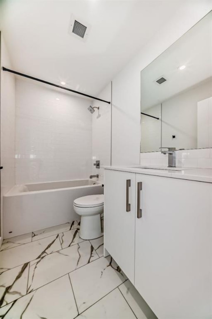 Discover this distinctive 2-Bedroom, 2.5-Bath residence in Frontier—Truman’s newest boutique development ideally located in the heart of vibrant Kensington. This rare multi-level home offers a thoughtfully designed layout that perfectly blends style, comfort, and functionality. The upper level entry welcomes you into the bright, open-concept living space featuring a modern kitchen with quartz countertops, full-height cabinetry, and stainless steel appliances. The kitchen flows seamlessly into the spacious dining and living areas, complemented by a convenient half bath—perfect for entertaining or relaxing in style. Downstairs, the private lower level hosts two well-appointed bedrooms, including the primary suite with its own ensuite bathroom, along with a secondary full bath. From this level, residents enjoy direct access to the building’s boutique-style amenities, including the fitness centre and co-working spaces. Situated just steps from Kensington’s boutique shops, top-rated restaurants, trendy cafés, the Bow River pathways, LRT access, and downtown Calgary, this home offers the ultimate in connected urban living. Photo gallery of a similar unit; finishes may vary.