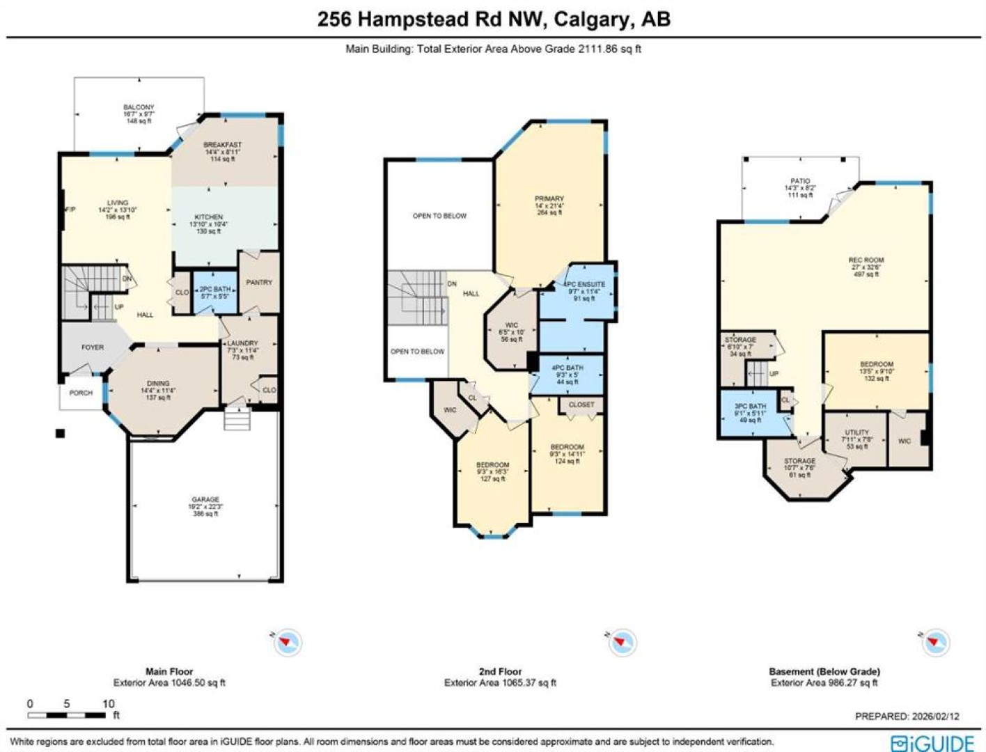 Available for quick possession is this Calbridge Homes two storey walkout in the highly-desirable golf course community of Hamptons, located here on this quiet street only minutes walk to bus stops & neighbourhood shopping. Offering a total of 4 bedrooms & central air, this fully finished home enjoys hardwood & vinyl floors, white kitchen with quartz countertops, 3.5 bathrooms & almost 3000sqft of developed living space. Fantastic family-friendly floorplan featuring sunny living room with gas fireplace & soaring 17ft ceilings, separate formal dining room, dining nook with access onto the rear balcony & terrific open concept kitchen with centre island, stainless steel appliances & walkthrough pantry with built-in cabinets. Upstairs there are 3 lovely bedrooms & 2 full baths; the primary bedroom has a big walk-in closet & soaker tub ensuite with separate shower & tile floors. The walkout level is finished with a 4th bedroom with walk-in closet, bathroom with shower, lots of storage space & games/rec room with access into the backyard. Main floor laundry room complete with sink, built-in cabinets & Kenmore washer/dryer set. Ready & waiting for a new family to make it their own, this dynamite home is only minutes to the golf course clubhouse & Hamptons School, community parks & sports courts, playgrounds & easy access to major retail centers, Nose Hill Park, University of Calgary, hospitals & downtown.