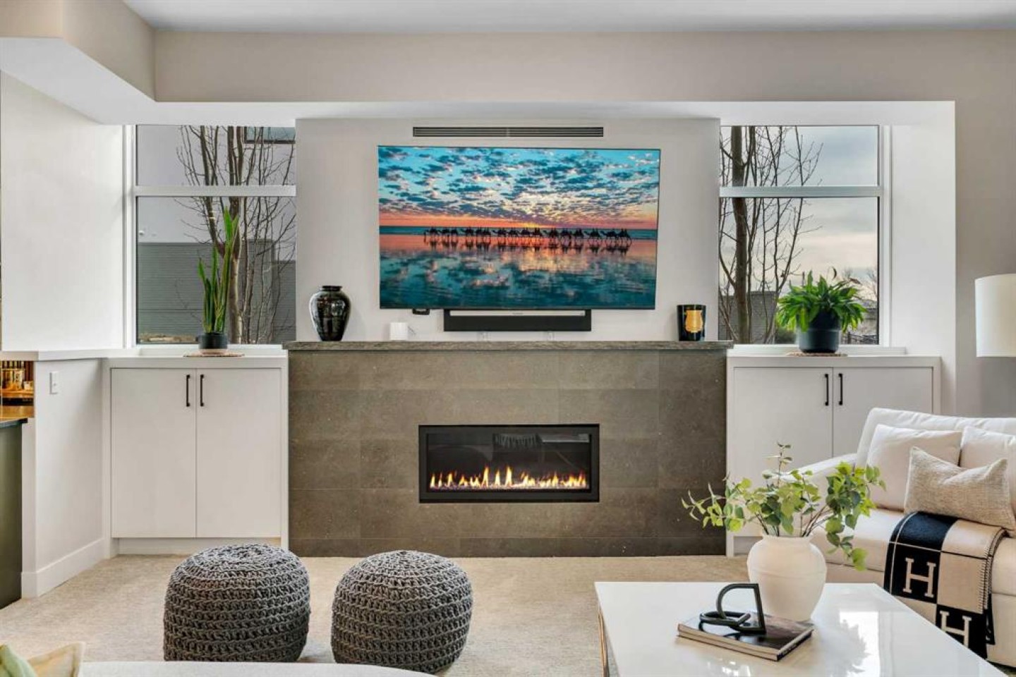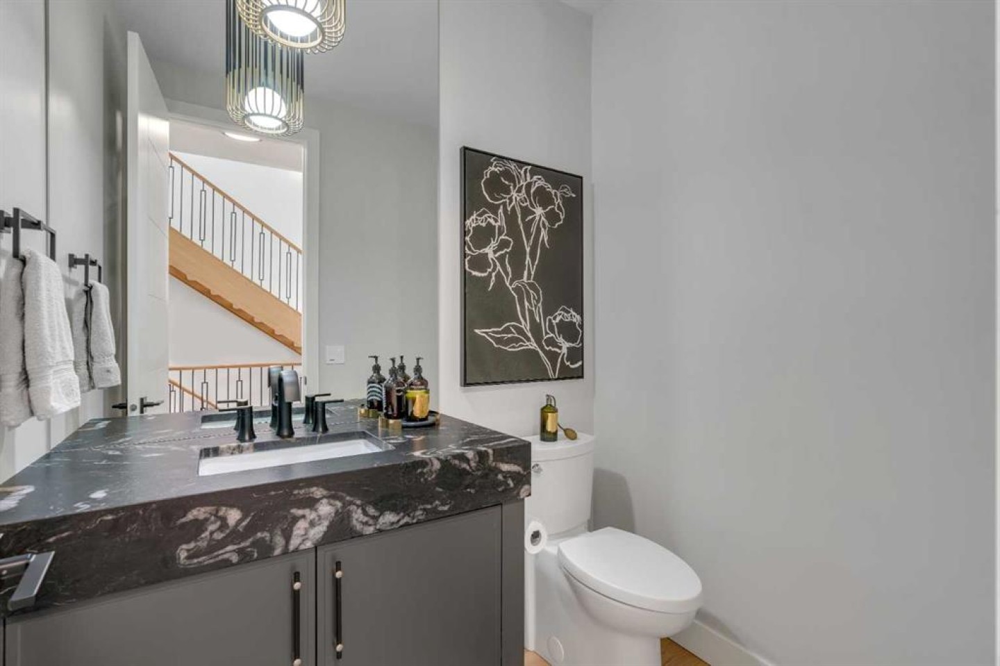 Welcome to 100 Elkton Close SW, a spectacular luxury walk-out bungalow with loft by Winchester Builders, ideally situated on one of Springbank Hill’s most exclusive crescents. Offering 6,160 total square feet of impeccably finished living space plus a heated quadruple garage, this home delivers exceptional craftsmanship, thoughtful design, and everyday livability at the highest level. From the moment you enter, soaring ceilings, abundant natural light, and designer finishes create an immediate sense of understated elegance. The heart of the home is a stunning gourmet kitchen, anchored by an 11.5’ quartz sit-up island with added storage, top-of-the-line Thermador appliances, custom Hammersmith hood fan, beverage centre, and soft-close custom cabinetry with maple-lined, dovetail drawers. A fully equipped butler’s pantry adds a second sink, dishwasher, beverage fridge, Bosch speed oven, and generous storage. The kitchen flows seamlessly into the dining and great room, highlighted by a dramatic fireplace and coffered ceiling. A versatile flex room provides the option for a home office or formal dining space. The main-floor primary retreat is a true sanctuary, featuring a private deck, spa-inspired ensuite with heated floors, soaker tub, glassed shower, double vanity, private water closet, and a show-stopping walk-in closet with custom built-ins and dual laundry chutes. A second main-floor bedroom with its own heated-floor ensuite, a beautiful powder room, a dream laundry room, and a large mudroom complete this level. The upper loft offers a quiet retreat with a dual tech desk, TV lounge, private 4-piece bath, linen storage, and a third bedroom. The expansive walk-out lower level is designed for entertaining, featuring a custom wet bar with large island, third dishwasher, and illuminated glass wine storage for 144 bottles. A second fireplace anchors the lounge area, alongside space for a full-size pool table, seating areas, a glass-enclosed home gym, fourth bedroom, full bathroom with heated floors, and a flex space easily converted to a fifth bedroom. A full-width deck with privacy panels and future hot tub wiring extends outdoor living. Additional highlights include flat ceilings, solid core doors, custom lighting, CAT5 wiring, Ecobee thermostats, air conditioning, built-in speakers, Ring security, and a 900+ sq. ft. heated quadruple garage with 10’ doors, epoxy flooring, EV charging, hot/cold taps, floor drains, and lift-ready ceilings. The professionally landscaped yard features xeriscaping and irrigation. Ideally located near top public and private schools, parks, pathways, Westhills, Aspen Landing, Westside Rec Centre, and major roadways, this is an exceptional Springbank Hill residence where luxury meets effortless living.
