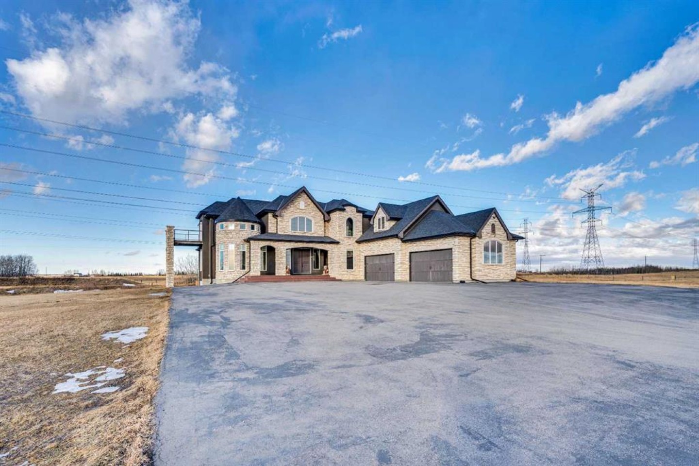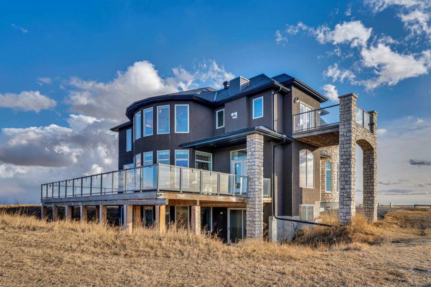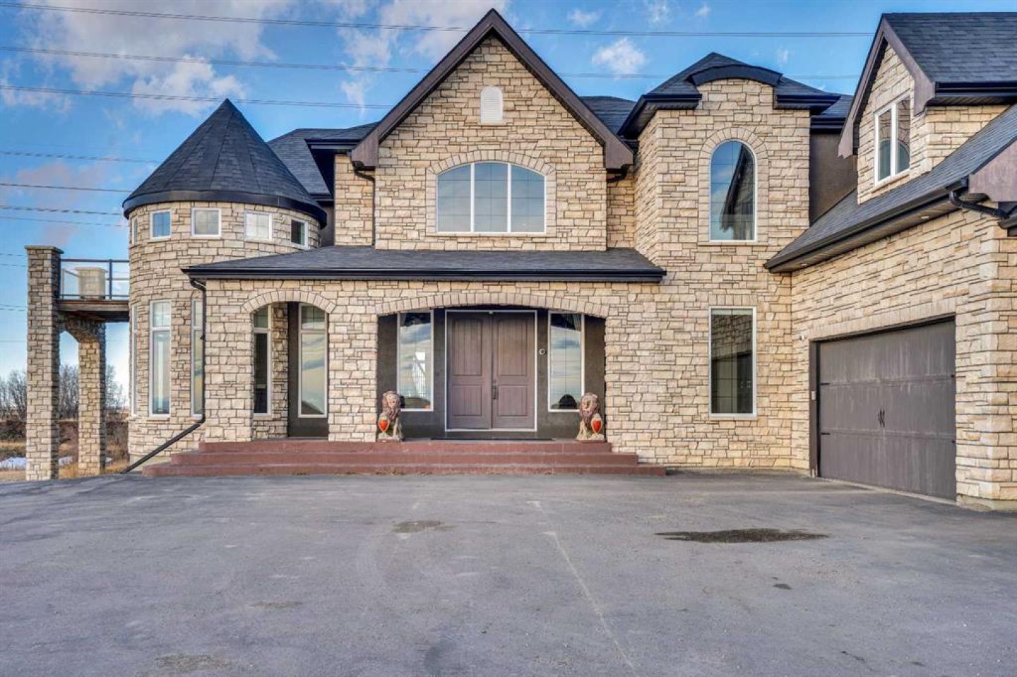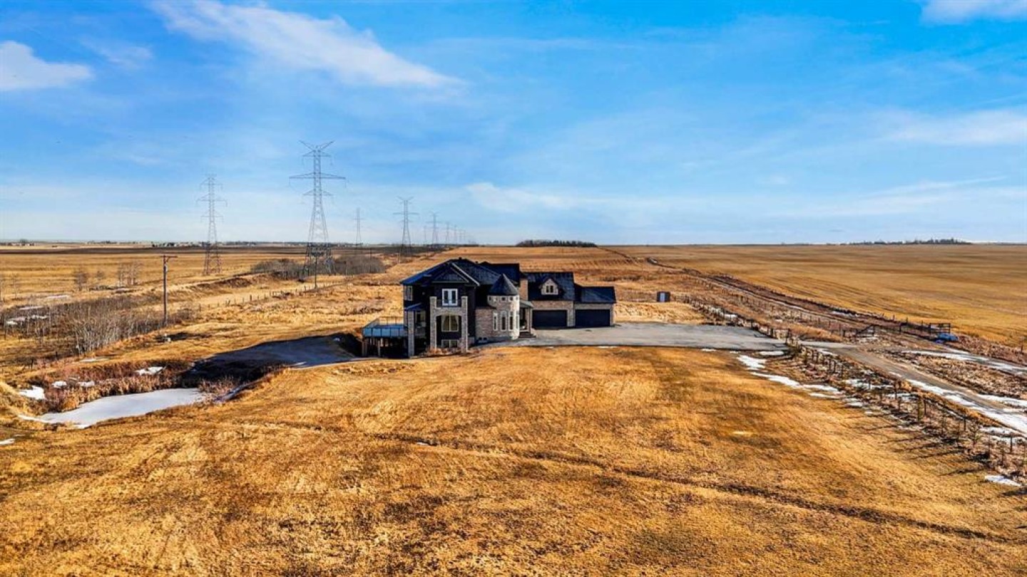 ?Welcome to this extraordinary custom-built estate offering over 7,000 sq ft of developed living space across three levels, including 4,682 sq ft above grade, all set on a beautifully positioned 4-acre parcel with a private gated driveway and a 4-car garage. Combining luxury, scale, and serenity, this remarkable property delivers peaceful country living just minutes from Calgary and Boulder Creek Golf Course. A grand double staircase and soaring open-to-below ceilings create a stunning first impression in the expansive foyer. The open-concept main floor showcases rich hardwood flooring, oversized windows framing panoramic views, and seamless flow designed for both entertaining and everyday living.? The chef-inspired kitchen features full-height cabinetry, stainless steel appliances, granite countertops, a hidden built-in range hood, wine cooler, built-in wine rack, and a large centre island with bar seating and bar sink. A walkthrough pantry connects directly to the mudroom and main-floor laundry for exceptional functionality. The bright dining nook and formal dining room both open through French doors to the massive north-facing deck, creating effortless indoor-outdoor living. The inviting living room is anchored by a double-sided gas fireplace shared with the kitchen, adding warmth and ambiance. A main-level office/den provides the perfect work-from-home space.? Upstairs, you’ll find three spacious bedrooms and a large family room with lofted ceilings that enhance the home’s grandeur. The primary suite is a private retreat featuring a west-facing balcony with mountain views. The luxurious 5-piece ensuite offers a deep soaking tub set against a wall of windows, a tiled steam shower with bench seating, dual vanities, a private water closet, and a custom walk-in closet with built-in organization. Bedrooms two and three share a well-designed 5-piece bathroom with dual sinks and a separate shower/tub and toilet area—ideal for family living.? The bright walkout basement offers an additional 2,347 sq ft of space, is PAINT READY and fully developed featuring a recreation area, home theatre, gym, or additional bedrooms, 2 full bathrooms.? This one-of-a-kind estate blends breathtaking views, expansive living spaces, and refined finishes in a highly desirable location just minutes from the city. A rare opportunity to own a truly remarkable home that must be experienced to be fully appreciated.