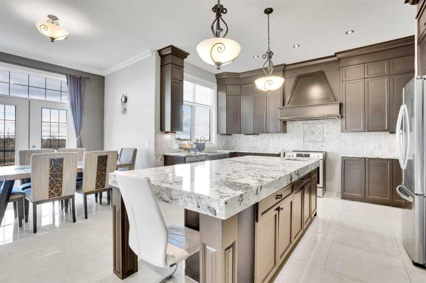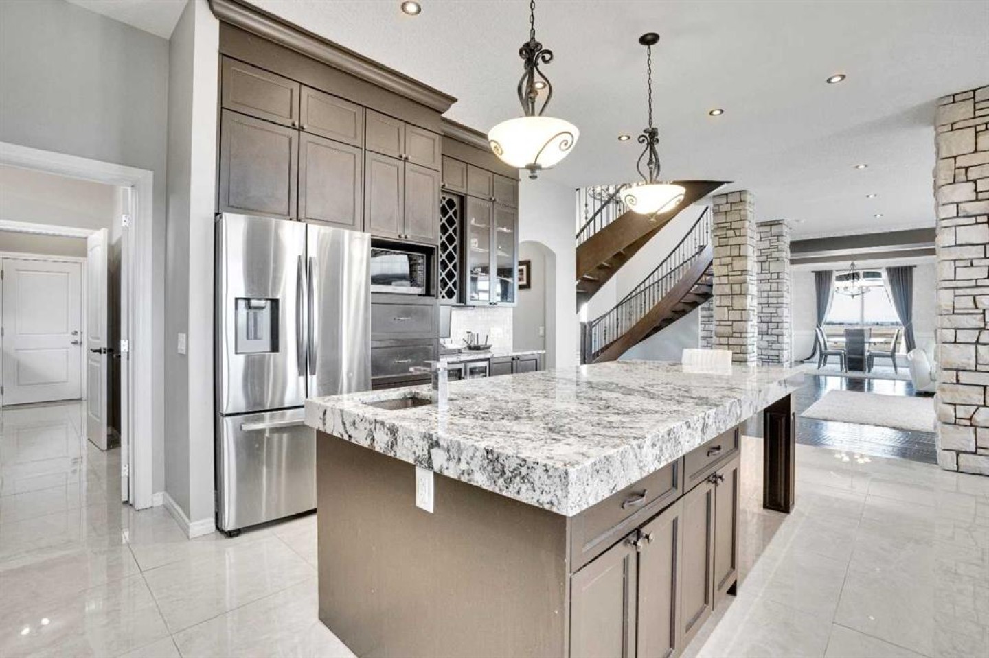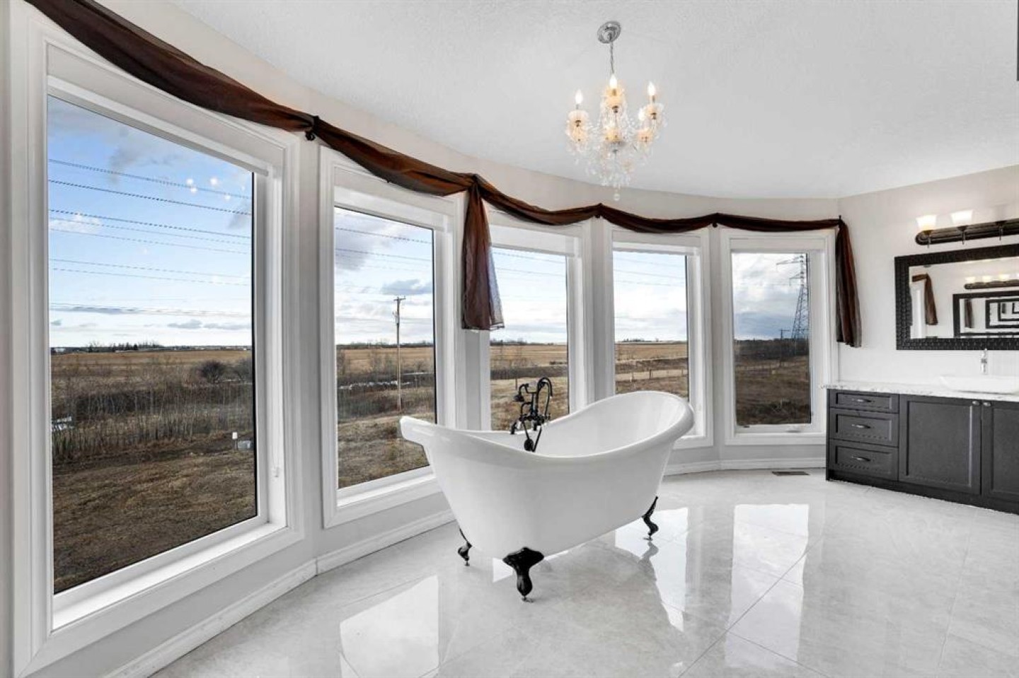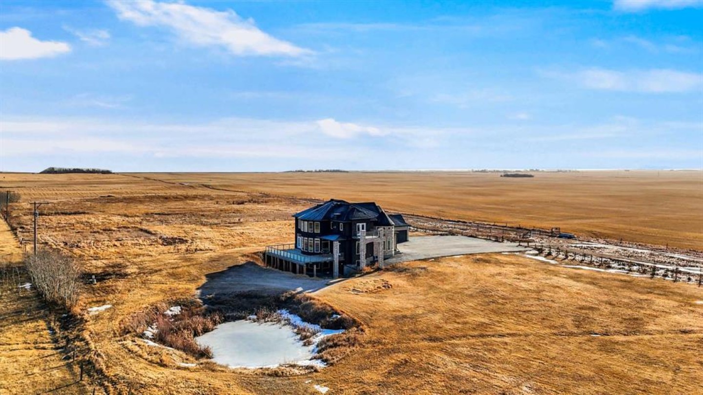 ?Welcome to this extraordinary custom-built estate offering over 7,000 sq ft of developed living space across three levels, including 4,682 sq ft above grade, all set on a beautifully positioned 4-acre parcel with a private gated driveway and a 4-car garage. Combining luxury, scale, and serenity, this remarkable property delivers peaceful country living just minutes from Calgary and Boulder Creek Golf Course. A grand double staircase and soaring open-to-below ceilings create a stunning first impression in the expansive foyer. The open-concept main floor showcases rich hardwood flooring, oversized windows framing panoramic views, and seamless flow designed for both entertaining and everyday living.? The chef-inspired kitchen features full-height cabinetry, stainless steel appliances, granite countertops, a hidden built-in range hood, wine cooler, built-in wine rack, and a large centre island with bar seating and bar sink. A walkthrough pantry connects directly to the mudroom and main-floor laundry for exceptional functionality. The bright dining nook and formal dining room both open through French doors to the massive north-facing deck, creating effortless indoor-outdoor living. The inviting living room is anchored by a double-sided gas fireplace shared with the kitchen, adding warmth and ambiance. A main-level office/den provides the perfect work-from-home space.? Upstairs, you’ll find three spacious bedrooms and a large family room with lofted ceilings that enhance the home’s grandeur. The primary suite is a private retreat featuring a west-facing balcony with mountain views. The luxurious 5-piece ensuite offers a deep soaking tub set against a wall of windows, a tiled steam shower with bench seating, dual vanities, a private water closet, and a custom walk-in closet with built-in organization. Bedrooms two and three share a well-designed 5-piece bathroom with dual sinks and a separate shower/tub and toilet area—ideal for family living.? The bright walkout basement offers an additional 2,347 sq ft of space, is PAINT READY and fully developed featuring a recreation area, home theatre, gym, or additional bedrooms, 2 full bathrooms.? This one-of-a-kind estate blends breathtaking views, expansive living spaces, and refined finishes in a highly desirable location just minutes from the city. A rare opportunity to own a truly remarkable home that must be experienced to be fully appreciated.