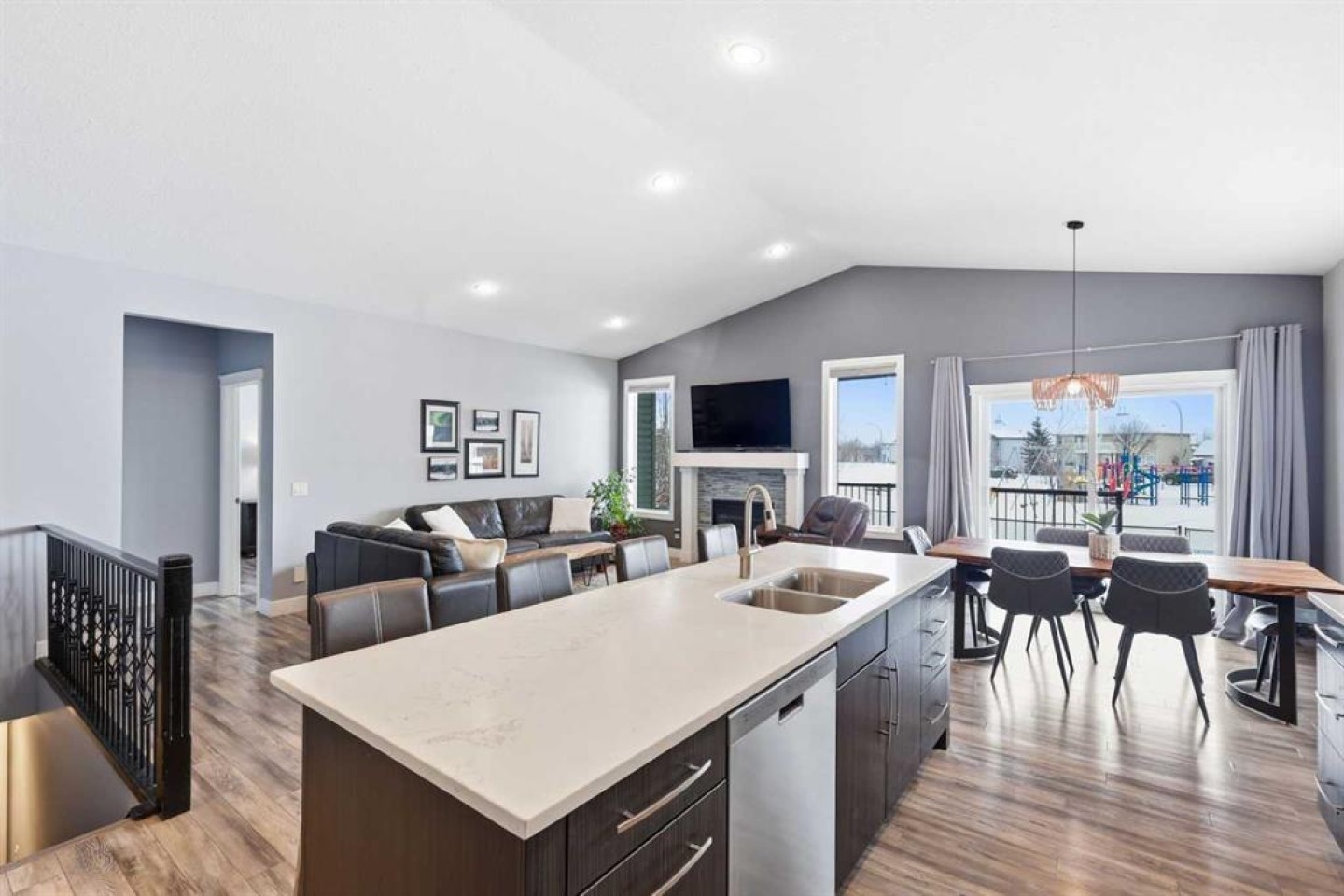 There is something about High River that you cannot quite explain until you experience it. The pace slows, the streets feel quieter, kids are actually outside riding bikes and neighbours still wave when you drive by. It is the kind of town where you trade chaos for connection without sacrificing convenience. Okotoks, Costco and everyday amenities are just minutes away, and Calgary remains an easy commute when you need it. Now pair that lifestyle with a bungalow backing directly onto green space, a pump track and park right out your back gate, and no rear neighbours behind you. Nearly 2,700 square feet of developed living space across two levels gives you room to breathe. Three full bedrooms on the main floor, which is rare for a bungalow, means young families can stay together upstairs, and downsizers can still host grandkids or create the perfect home office without compromise. The main level has been extensively renovated with updated flooring, bathrooms, kitchen, fireplace and fresh paint, creating a warm, move in ready feel the moment you step inside. The east facing covered deck is where mornings start slowly with coffee and sunrise light, and the primary suite feels like a true retreat with a deep soaker tub, separate shower and walk in closet. Downstairs, high ceilings and in floor heat transform the lower level into space you will actually use, not space you settle for. Massive bedrooms, vinyl plank flooring and a media area ready for movie nights make it ideal for growing families or long term guests. Central air conditioning keeps summers comfortable, and the oversized double garage has been fully insulated and drywalled, adding clean, functional space that extends beyond the house itself. The yard is intentionally low maintenance, yet it opens onto all the green space you could ever want, complete with in ground irrigation and a separate dog run. This is the kind of home that quietly checks every box, where kids can run out the back gate to the park and adults can finally exhale at the end of the day. 2026 High Country Rise is more than a bungalow. It is small town living done right, with the space, comfort and community people move south for. Come see it in person and you will understand.