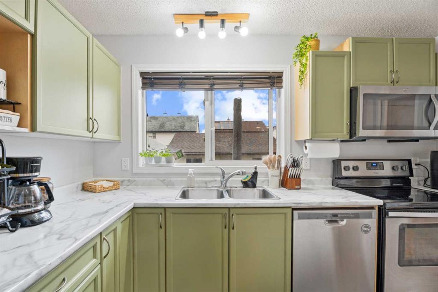 Situated in the charming and highly sought-after south community of McKenzie Towne, this upgraded 4-bedroom, 3.5-bath semi-detached home perfectly blends comfort, style, and convenience. Enjoy easy access to all amenities along 130th Avenue, including restaurants, grocery stores, Walmart, Home Depot, and more, with quick routes to Deerfoot Trail and Stoney Trail for effortless commuting. The inviting open-concept main floor connects the living room, dining area, and kitchen, which features ample cabinet space, a functional island with an eating bar, and access to a large east-facing deck, recently updated in 2025, overlooking a fully fenced and landscaped backyard. Upstairs, the spacious primary bedroom easily accommodates a king-size bed and includes a 3-piece ensuite. Two additional bedrooms share a full 4-piece bath, while laminate flooring flows throughout the main and upper levels. The fully developed basement offers a large recreation room, a fourth bedroom, a 3-piece bath, and convenient laundry facilities. Recent upgrades include vinyl plank flooring (Basement - 2023), new washer and dryer (2023), new over-the-range microwave (2023), and a new refrigerator (2024). The exterior was freshly painted in 2025. A double oversized detached garage, fully insulated, drywalled, and equipped with a garage door opener, completes this fantastic home. With thoughtful upgrades throughout and a prime location in McKenzie Towne, this property is truly a must-see! Don’t wait—schedule a showing today and fall in love with your new home in the charming McKenzie Towne!