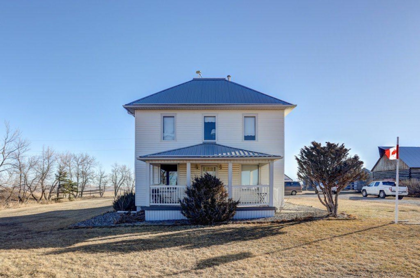 Welcome to the MD of Pincher Creek. Situated on 3.66 acres, 4 km south of the Town of Pincher Creek, this turn of the Century four bedroom, two bathroom, heritage home is rich in character and charm. Original doors and moldings blend beautifully with modern updates. Enjoy a large eat in country kitchen, separate dining room as well as a spacious living room, perfect for family time and entertaining. All upstairs bedrooms feature walk in closets. Relax on the west facing veranda and enjoy striking mountain views and sunsets. Features include an OHV shed, mounded concrete root cellar to store winter vegetables and seeds, plus 6 granaries. A charming circa 1900 , 8 stall barn with loft storage completes this unique property, offering the perfect balance of country living and convenient proximity to town.