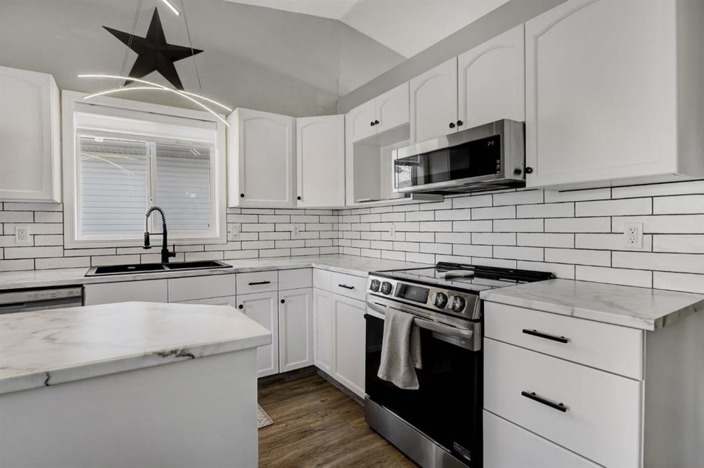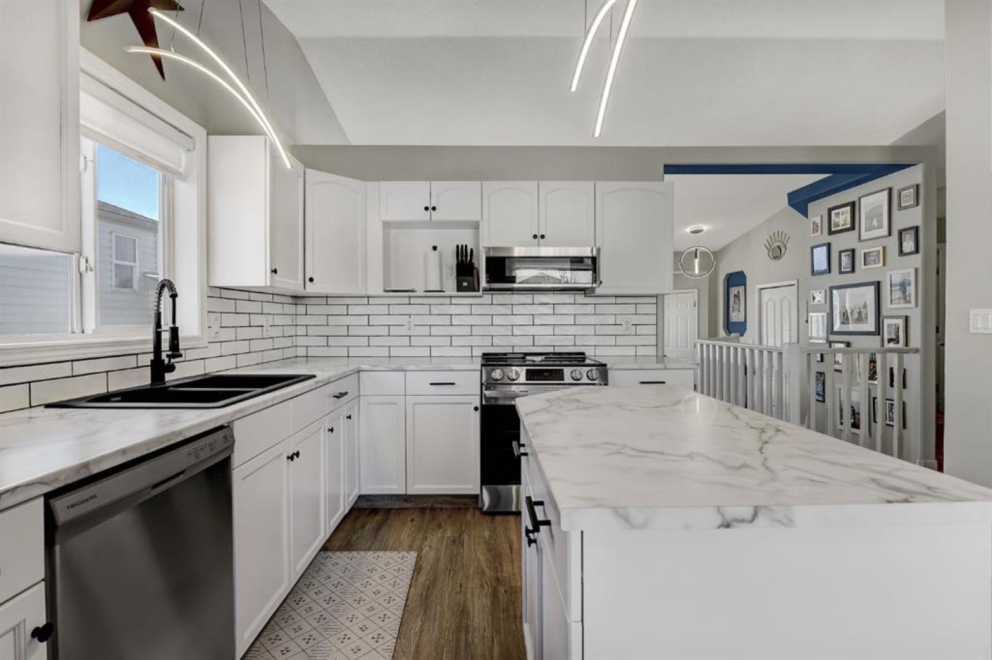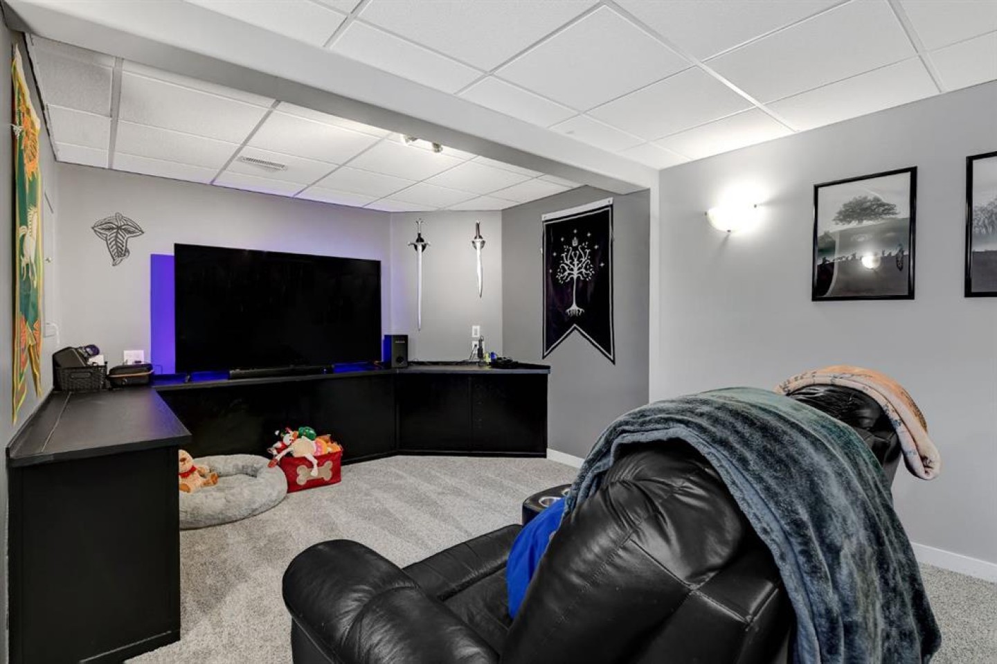 Completely refreshed and truly move-in ready, this beautifully updated bungalow sits on a quiet street in the desirable, family-friendly community of Pinnacle Ridge. The home has undergone a full facelift featuring new paint throughout, new carpet, new countertops, refinished cabinets, tile backsplash, updated lighting fixtures, and central A/C, making it turnkey for its next owner. The spacious entry leads up to a bright, cozy living room and into the kitchen with island, pantry, newer appliances, and a sunny dining area with a large window. Down the hall you’ll find the primary bedroom with full ensuite, two additional bedrooms, and a main bathroom, giving the main floor a light and airy feel. The fully developed basement offers an open layout with a dry bar, flex space/ family room, plus an additional large bedroom and full bathroom. The laundry room is tucked away with ample storage to keep everything organized and out of sight. Outside, enjoy the oversized 22x24 attached finished garage with radiant tube heating, an extra-wide driveway ideal for RVs or extra vehicles, a fully fenced backyard with a dog run, and a rear deck perfect for relaxing or entertaining. This home is truly turnkey and ready for its new owner.