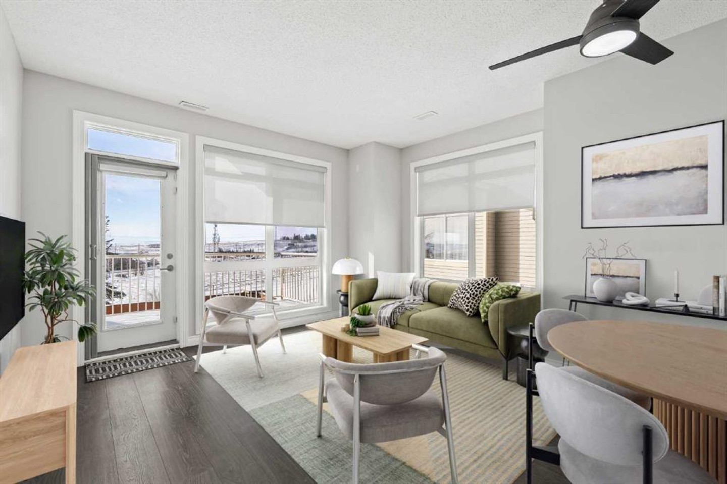 Welcome to this exceptional end unit townhome in Blue Sky at Rocky Ridge, where comfort, style, and breathtaking mountain views come together. This beautifully updated two storey home offers a rare and highly desirable dual primary layout, with two spacious bedrooms — each complete with its own private ensuite — creating the perfect setup for roommates and/or guests. Step inside to discover brand new vinyl plank flooring and fresh designer paint throughout, giving the entire home a modern, move in ready feel. The open concept main floor is bright and inviting, enhanced by the added privacy of being an end unit with only one shared wall. Large windows fill the space with natural light while showcasing incredible mountain views and the peaceful green space the home backs onto — offering both privacy and a beautiful backdrop year round. The kitchen is thoughtfully designed with stainless steel appliances, a pantry for additional storage, and generous cabinetry, seamlessly flowing into the dining and living areas for effortless entertaining or relaxed evenings at home. Comfort is elevated year-round with the added benefit of air conditioning, while the convenience of in unit stacked laundry makes daily living easy. This home also includes a titled parking stall and a dedicated storage unit, along with excellent in-unit storage options throughout — ensuring everything has its place. Ideally located just 25 minutes from downtown Calgary, you’ll enjoy close proximity to childcare, grocery stores, shopping, transit, and nearby pathways and parks. Whether you’re a first-time buyer, investor, or looking to downsize without compromising on quality or views, this Rocky Ridge gem delivers low-maintenance living with upscale finishes in one of northwest Calgary’s most desirable communities.