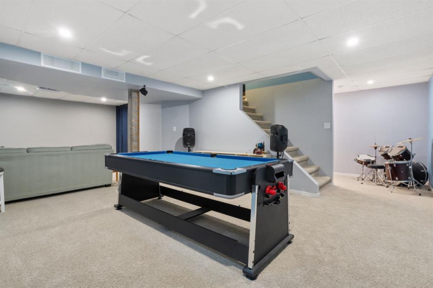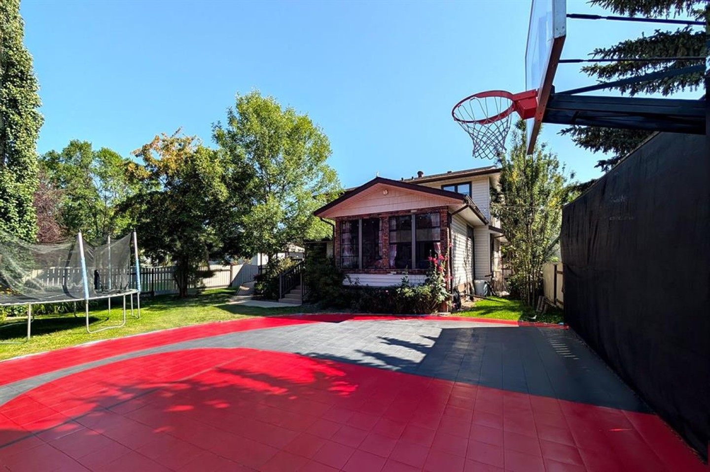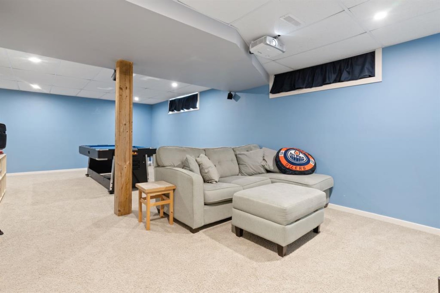 Welcome to this exceptional 2,106 sq ft two storey home with a double attached garage, perfectly positioned in an unbeatable family location. Backing directly onto a park and just steps from playgrounds and two elementary schools, this is a home where lifestyle and convenience truly shine. From the moment you step inside, the space is undeniable. Designed for entertaining on a grand scale, the living room and dining room comfortably accommodate seating for hosting holidays, celebrations, and gatherings of any size. The kitchen is a true chef’s dream, featuring beautiful soapstone countertops, a functional island, and an abundance of prep and storage space. Wrapped in windows and filled with natural light, the space is complemented by high end appliances, including an impressive gas stovetop that anchors the room. Whether cooking for family or a crowd, this kitchen delivers both style and function. Just off the kitchen, the family room offers a warm and inviting atmosphere, ideal for studying, relaxing, or basking in the glow of the wood burning fireplace, with deck doors leading to the beautiful tiered deck & yard. The main floor is complete with convenient laundry and a 2 piece bathroom. The stunning sunroom is sure to become your favorite space in the house. Surrounded by windows that all open to create incredible airflow, it is the perfect place to curl up with a book, relax, or entertain without worrying about bugs, rain, or wind. Upstairs, you will find four generous bedrooms, including a spacious primary retreat with a 3 piece ensuite, plus an additional 4 piece bathroom for the family. The fully finished basement adds even more versatility, featuring a bedroom, rec room, and a 3 piece bathroom, perfect for guests, teens, or extended family. Outside, the backyard is truly next level. a stunning deck will be your outdoor retreat while cheering the kids on the custom basketball court, designed to full high school three point distance with additional space beyond the line, featuring professional grade tiles, an NBA size adjustable hoop and fence that can be removed if desired. High quality weatherproof Bluetooth speakers are installed in custom enclosures and connect directly to the sunroom, creating an incredible indoor outdoor entertaining experience. This home is equally impressive when it comes to entertainment and technology. With premium surround sound systems on both levels, and a dedicated basement media setup with a short throw projector and a custom painted theatre style screen spanning 10 feet diagonally. The home is also wired for Ethernet in several rooms, providing fast and reliable connections for work, gaming, or streaming. This is a rare opportunity to own a home that offers incredible space, thoughtful design, premium features, and a location that is hard to beat. A true lifestyle property that must be experienced to be fully appreciated.