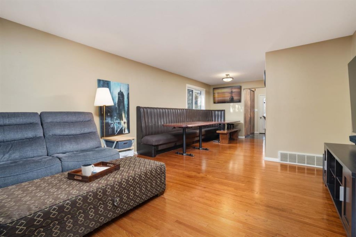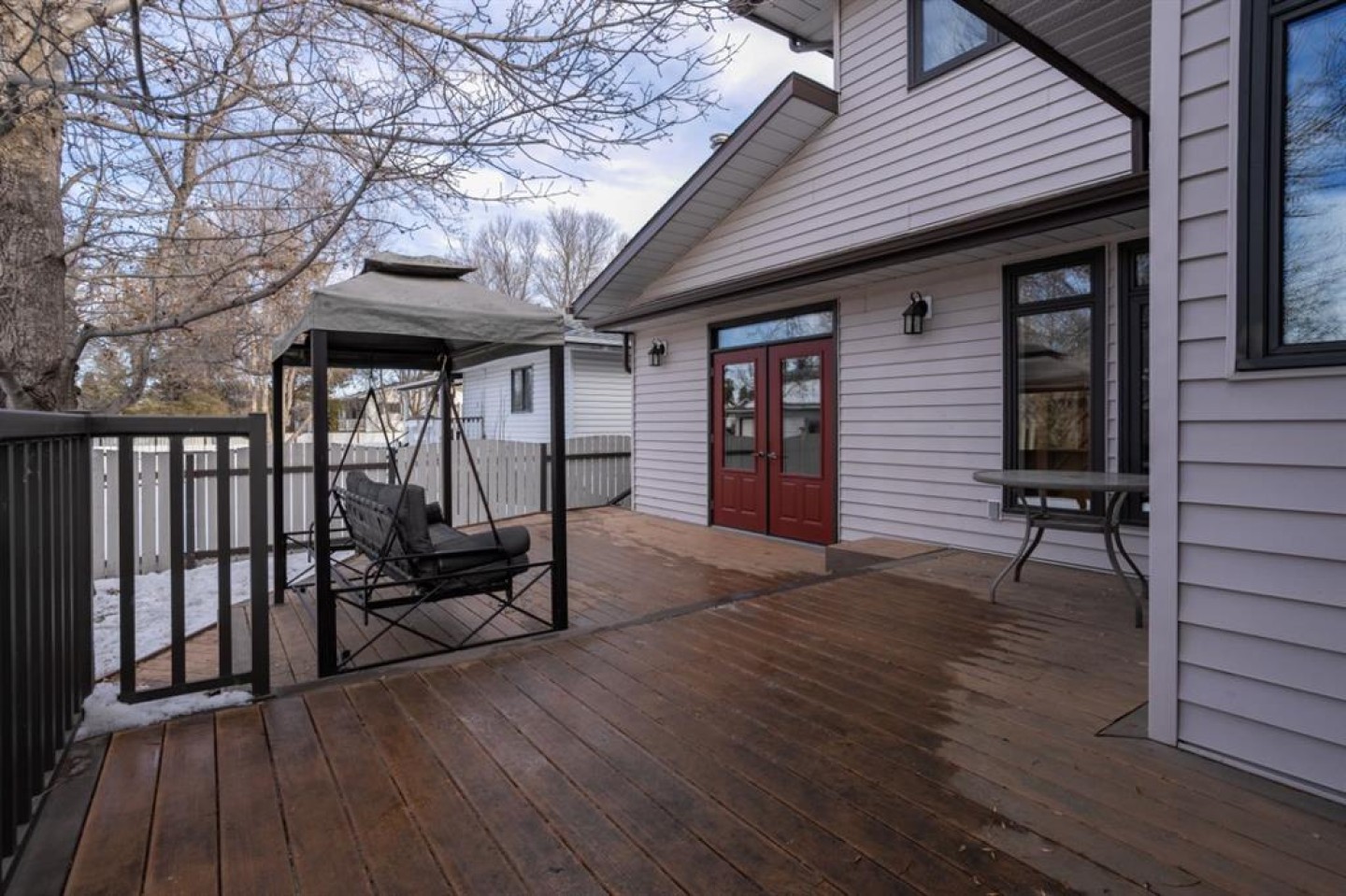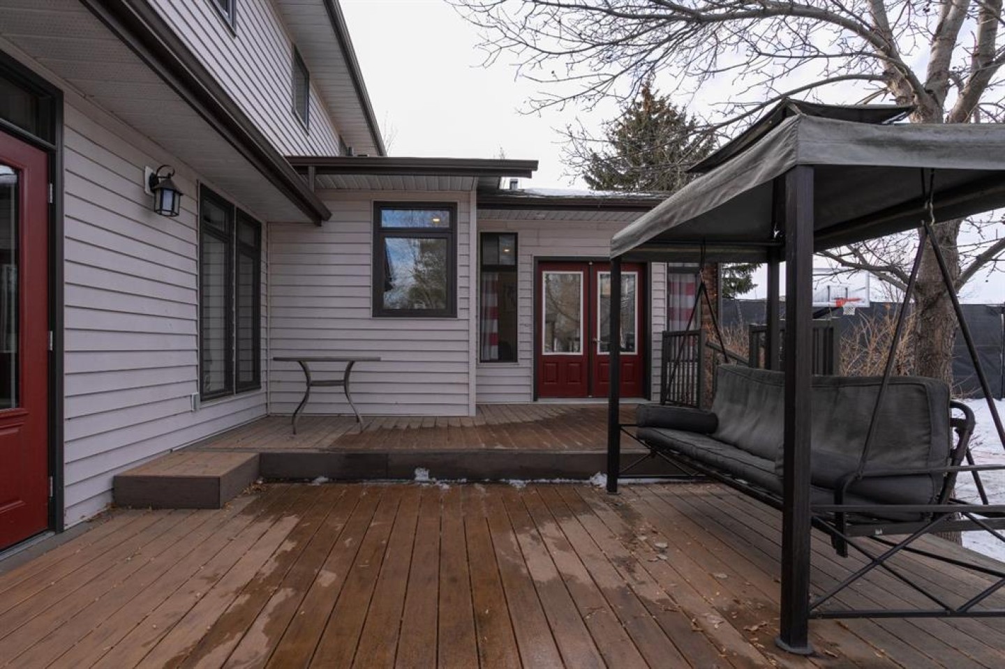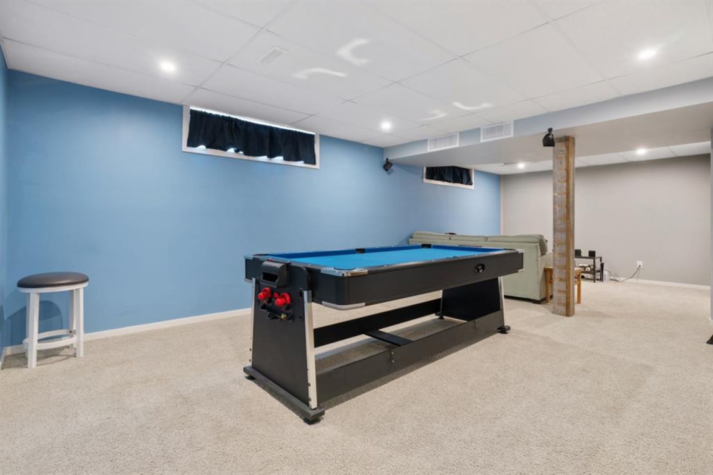 Welcome to this exceptional 2,106 sq ft two storey home with a double attached garage, perfectly positioned in an unbeatable family location. Backing directly onto a park and just steps from playgrounds and two elementary schools, this is a home where lifestyle and convenience truly shine. From the moment you step inside, the space is undeniable. Designed for entertaining on a grand scale, the living room and dining room comfortably accommodate seating for hosting holidays, celebrations, and gatherings of any size. The kitchen is a true chef’s dream, featuring beautiful soapstone countertops, a functional island, and an abundance of prep and storage space. Wrapped in windows and filled with natural light, the space is complemented by high end appliances, including an impressive gas stovetop that anchors the room. Whether cooking for family or a crowd, this kitchen delivers both style and function. Just off the kitchen, the family room offers a warm and inviting atmosphere, ideal for studying, relaxing, or basking in the glow of the wood burning fireplace, with deck doors leading to the beautiful tiered deck & yard. The main floor is complete with convenient laundry and a 2 piece bathroom. The stunning sunroom is sure to become your favorite space in the house. Surrounded by windows that all open to create incredible airflow, it is the perfect place to curl up with a book, relax, or entertain without worrying about bugs, rain, or wind. Upstairs, you will find four generous bedrooms, including a spacious primary retreat with a 3 piece ensuite, plus an additional 4 piece bathroom for the family. The fully finished basement adds even more versatility, featuring a bedroom, rec room, and a 3 piece bathroom, perfect for guests, teens, or extended family. Outside, the backyard is truly next level. a stunning deck will be your outdoor retreat while cheering the kids on the custom basketball court, designed to full high school three point distance with additional space beyond the line, featuring professional grade tiles, an NBA size adjustable hoop and fence that can be removed if desired. High quality weatherproof Bluetooth speakers are installed in custom enclosures and connect directly to the sunroom, creating an incredible indoor outdoor entertaining experience. This home is equally impressive when it comes to entertainment and technology. With premium surround sound systems on both levels, and a dedicated basement media setup with a short throw projector and a custom painted theatre style screen spanning 10 feet diagonally. The home is also wired for Ethernet in several rooms, providing fast and reliable connections for work, gaming, or streaming. This is a rare opportunity to own a home that offers incredible space, thoughtful design, premium features, and a location that is hard to beat. A true lifestyle property that must be experienced to be fully appreciated.