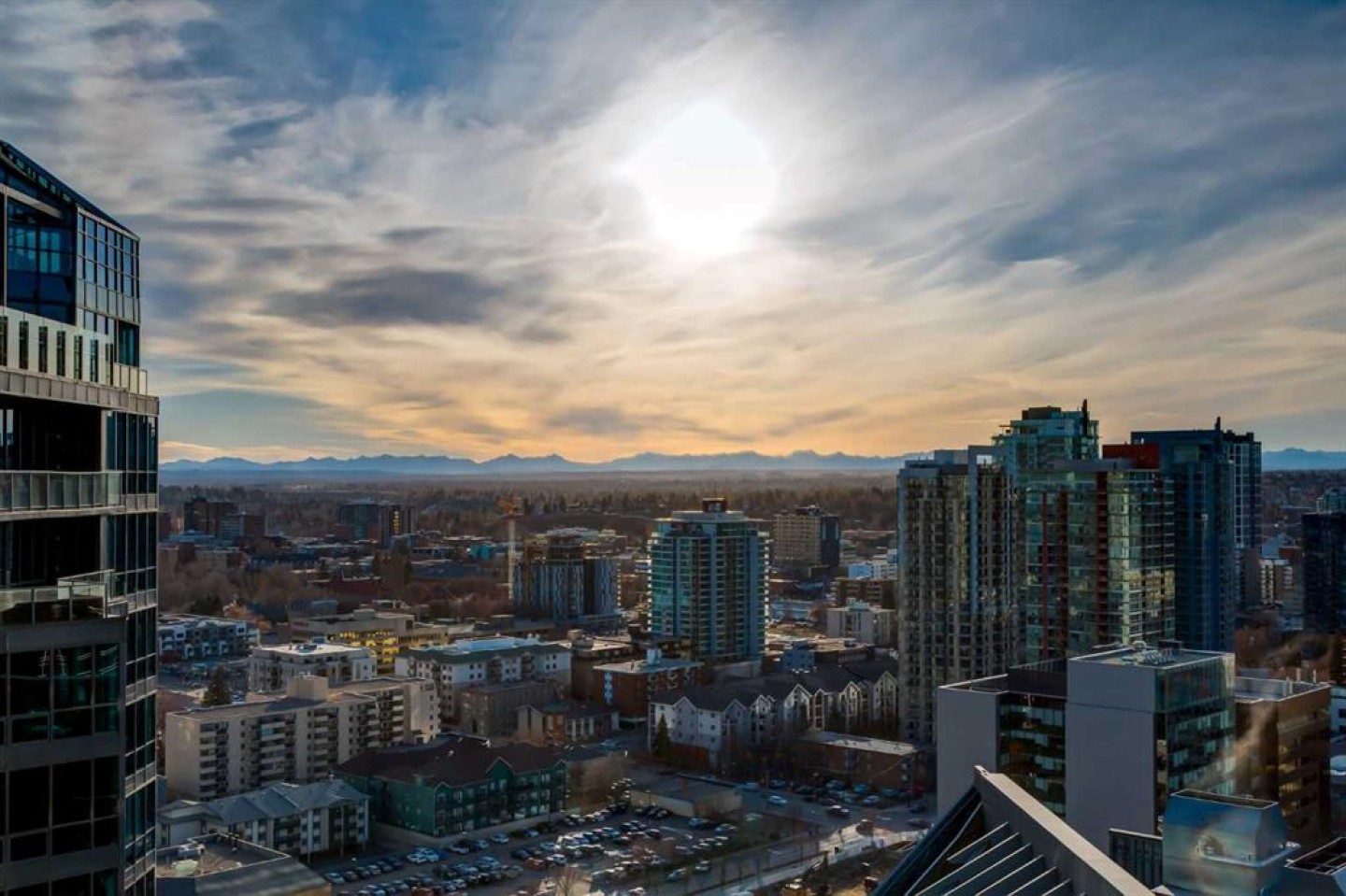 Enjoy unobstructed, panoramic views from this one bedroom, one bathroom residence perched on the 25th floor of Keynote Two. This bright, air conditioned home features 9 foot ceilings, hardwood flooring, stone countertops, stainless steel appliances, and convenient in suite laundry. Floor to ceiling windows frame spectacular views of the Saddledome, downtown skyline, and the Rocky Mountains beyond. The unit includes a storage locker, bike storage, and one of the largest and most desirable parking stalls in the entire parkade, a rare and valuable offering in the building. Residents enjoy direct +15 access to Sunterra, a well equipped fitness centre, owners lounge, and guest suites, all within a professionally managed concrete tower in the heart of the Beltline. An exceptional opportunity offering views, amenities, and parking that truly set it apart.