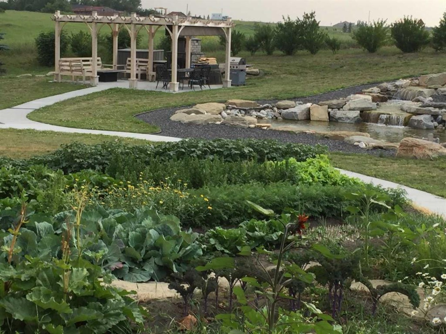 Back Yard, Corner Lot, Front Yard, Fruit Trees/Shrub(s), Garden, Gazebo, Landscaped, Lawn, Many Trees, No Neighbours Behind, Paved, Private, Treed, Views, Waterfall