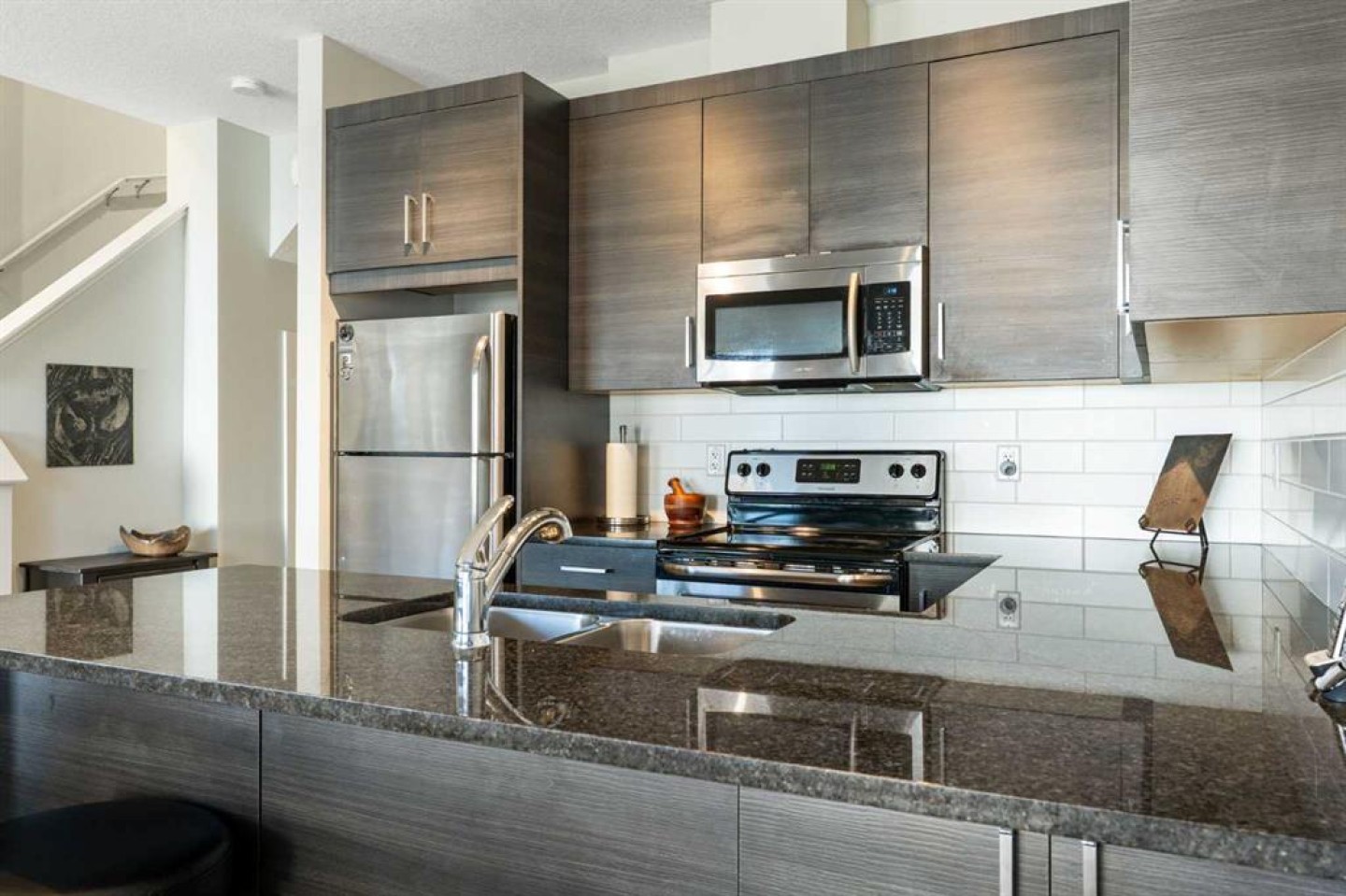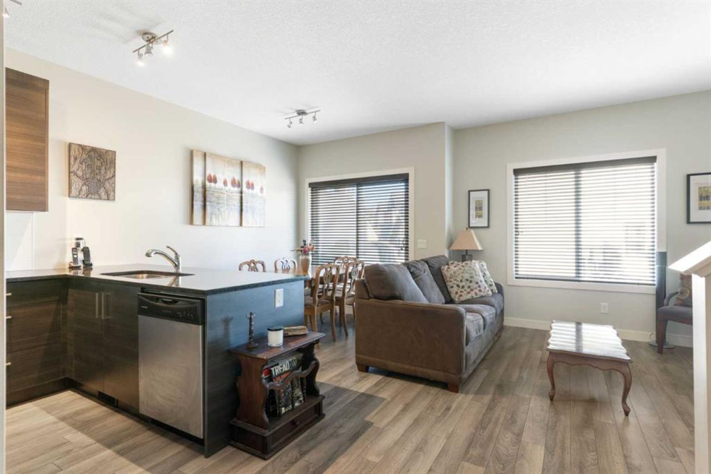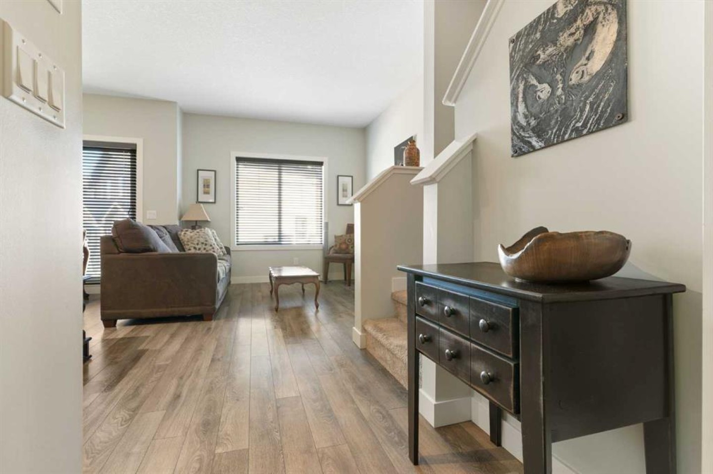 | OPEN HOUSE FEB. 21 12PM-2PM | Live Steps from Nature: Walk right out to the serene ravine and river for walking trails, scenic views, and summer/winter recreation. Located in a well-maintained complex, with easy access to schools, shopping, and transit. This home offers an open-concept living and dining area which boasts laminate flooring, abundant natural light, and a convenient two-piece bath tucked down the hall. The dining area leads out to your private, fenced backyard and deck with a gas BBQ hookup—perfect for relaxation, pets, and small children. Upstairs, the expansive primary bedroom is a true retreat with a walk-in closet and a luxurious 4-piece ensuite with granite. Two additional good-sized bedrooms, a second 4-piece bath (also with granite), and a dedicated laundry area complete the upper level. The lower level is undeveloped with a 3 piece rough in for another bathroom. As an added bonus the common walls in the basement have been upgraded with additional sound proofing. This home has been very well cared for by the original owner and is move in ready! A fantastic combination of location & functionality. Call for a showing today and discover why Living in Cochrane is Loving where you Live!