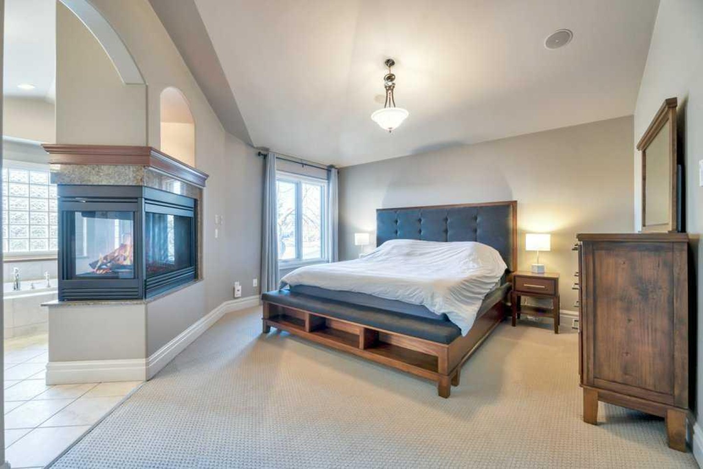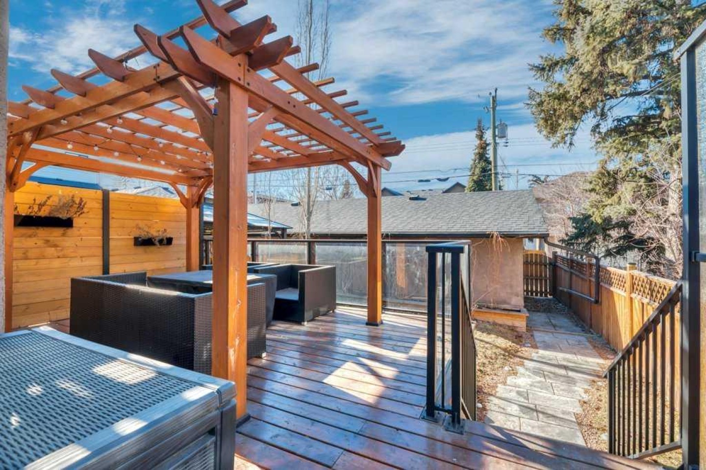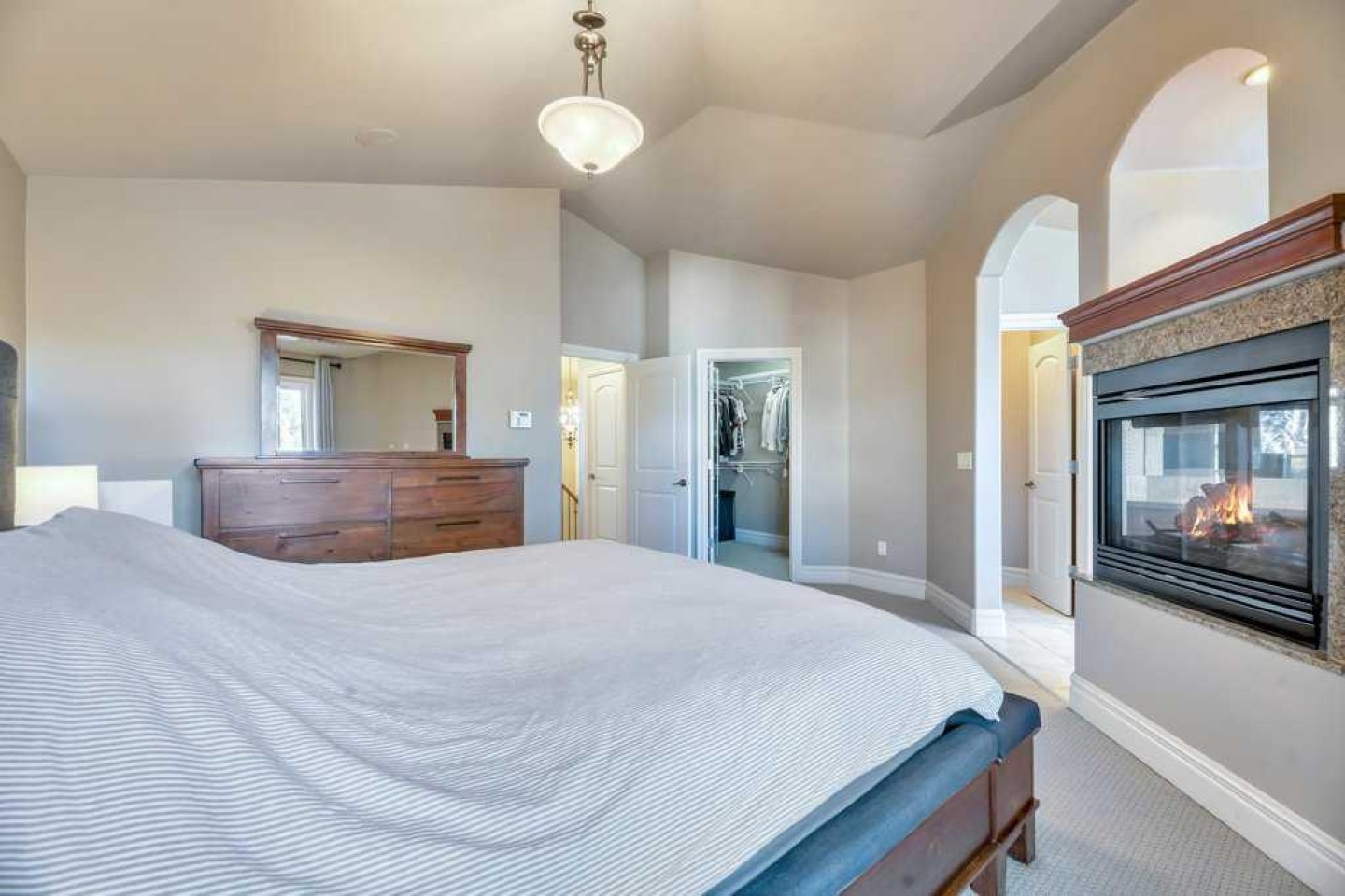 This beautifully crafted custom home showcases timeless architecture, refined finishes, and a highly functional layout, ideally situated on a quiet street with convenient access to schools, parks, and transit. Designed for both elegant entertaining and comfortable everyday living, this residence offers an exceptional balance of style and substance. The inviting foyer opens to formal living and dining areas highlighted by gleaming hardwood floors and soaring 9-foot ceilings, setting a sophisticated tone throughout the open-concept main level. The chef-inspired kitchen is a standout, featuring granite countertops, an oversized central island, stainless steel appliances including a new gas range (2023), wall oven, and tiled backsplash. The kitchen flows seamlessly into the dining nook and family room with fireplace, creating an ideal space for hosting or relaxed evenings at home. A striking curved staircase leads to the vaulted upper level, where the king-sized primary retreat offers a true executive escape. The spa-inspired ensuite features double sinks with granite counters, a soaker tub, a large separate tiled shower, and a three-sided fireplace shared with the bedroom. A generous walk-in closet completes this private sanctuary. Two additional well-appointed bedrooms and a full 4-piece bathroom complete the upper floor. The fully developed basement extends the living space with a bright family and recreation room, an additional spacious bedroom, and a full bathroom—ideal for guests, a home office, or extended living. A newer mudroom addition (2022) leads to a professionally designed deck with pergola, also completed in 2022, offering an elegant outdoor setting for entertaining and relaxation. The landscaped yard, paved lane, and double detached garage provide both functionality and convenience. Meticulously maintained with extensive upgrades, this home reflects true pride of ownership, including new shingles, downspouts, and gutter guards (June 2025), a new electrical panel and wiring (Nov 2025), updated main-floor lighting (Apr 2021), and new upstairs and basement bathroom fixtures (July 2024). A complete list of improvements is available in the Supplements. An exceptional opportunity for the discerning buyer seeking quality, comfort, and quiet sophistication—book your private showing today.