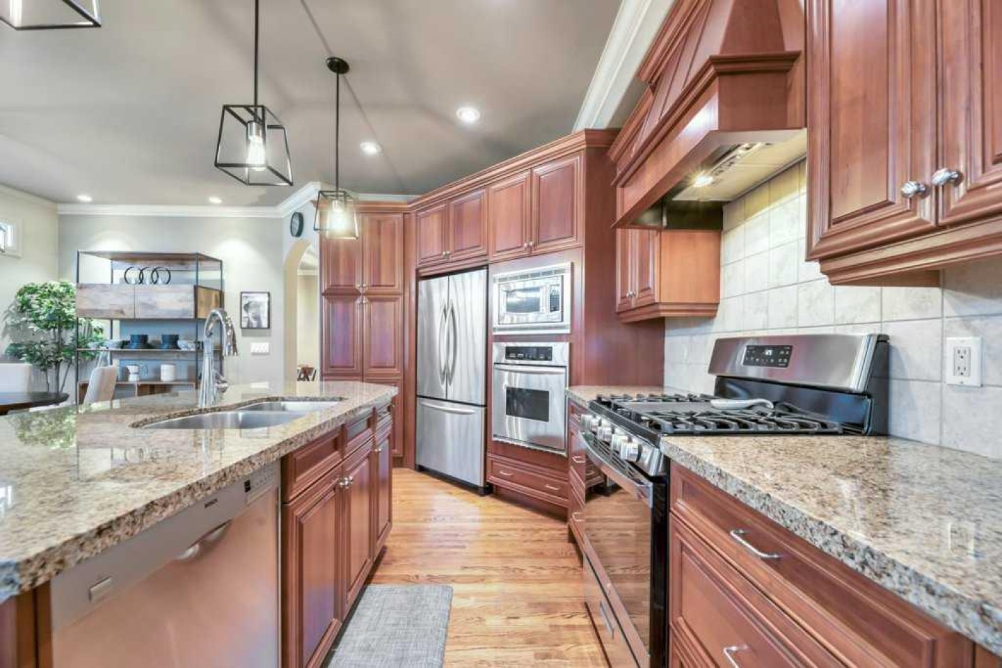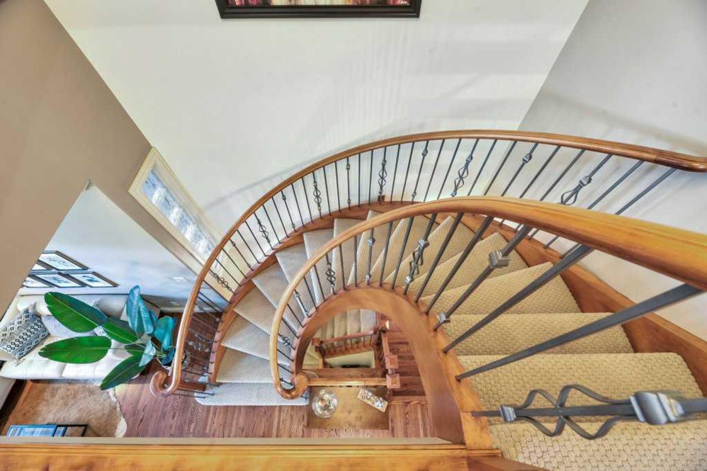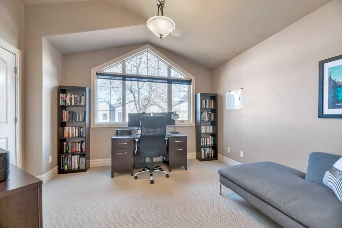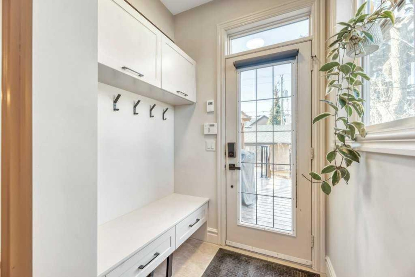 This beautifully crafted custom home showcases timeless architecture, refined finishes, and a highly functional layout, ideally situated on a quiet street with convenient access to schools, parks, and transit. Designed for both elegant entertaining and comfortable everyday living, this residence offers an exceptional balance of style and substance. The inviting foyer opens to formal living and dining areas highlighted by gleaming hardwood floors and soaring 9-foot ceilings, setting a sophisticated tone throughout the open-concept main level. The chef-inspired kitchen is a standout, featuring granite countertops, an oversized central island, stainless steel appliances including a new gas range (2023), wall oven, and tiled backsplash. The kitchen flows seamlessly into the dining nook and family room with fireplace, creating an ideal space for hosting or relaxed evenings at home. A striking curved staircase leads to the vaulted upper level, where the king-sized primary retreat offers a true executive escape. The spa-inspired ensuite features double sinks with granite counters, a soaker tub, a large separate tiled shower, and a three-sided fireplace shared with the bedroom. A generous walk-in closet completes this private sanctuary. Two additional well-appointed bedrooms and a full 4-piece bathroom complete the upper floor. The fully developed basement extends the living space with a bright family and recreation room, an additional spacious bedroom, and a full bathroom—ideal for guests, a home office, or extended living. A newer mudroom addition (2022) leads to a professionally designed deck with pergola, also completed in 2022, offering an elegant outdoor setting for entertaining and relaxation. The landscaped yard, paved lane, and double detached garage provide both functionality and convenience. Meticulously maintained with extensive upgrades, this home reflects true pride of ownership, including new shingles, downspouts, and gutter guards (June 2025), a new electrical panel and wiring (Nov 2025), updated main-floor lighting (Apr 2021), and new upstairs and basement bathroom fixtures (July 2024). A complete list of improvements is available in the Supplements. An exceptional opportunity for the discerning buyer seeking quality, comfort, and quiet sophistication—book your private showing today.