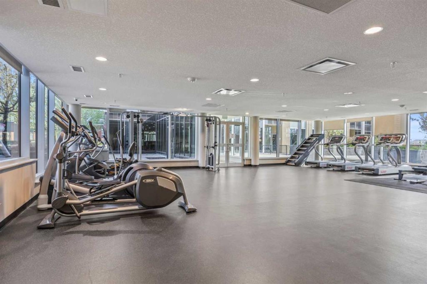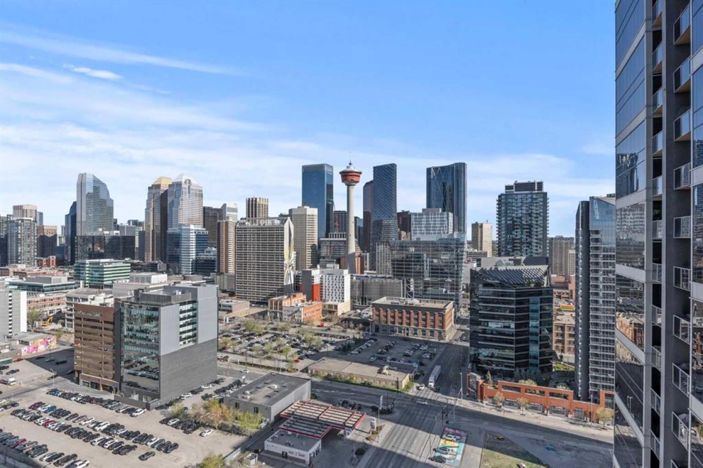 Experience downtown living at its finest in this beautifully designed 2 bed, 2 bath condo located in the heart of Calgary’s vibrant core. Offering nearly 800 sq ft of thoughtfully planned space, this unit blends style, comfort, and convenience—perfect for professionals, roommates, or those looking to downsize without compromising on location or function. Step inside to discover a bright and open living area with floor-to-ceiling windows that flood the space with natural light and showcase amazing city views. The modern kitchen is equipped with stainless steel appliances, quartz countertops, and sleek cabinetry, all seamlessly integrated into the open-concept layout that makes entertaining or relaxing feel effortless. Both bedrooms are strategically located on opposite sides of the unit, providing excellent privacy. Each features a walk-through closet and direct access to a full bathroom—ideal for shared living or hosting guests. The spacious primary bedroom includes a private 4-piece ensuite, while the second bedroom connects to the main bathroom, which also offers a secondary entrance from the main living area. Brand new carpets add a fresh, updated feel, complementing the durable tile flooring and bringing warmth to the bedrooms. Comfort is top of mind year-round thanks to central A/C, and in-suite laundry ensures everyday convenience. This well-managed building offers excellent amenities including a fully equipped fitness centre and a sunny outdoor courtyard—perfect for morning coffee or unwinding with friends. You'll also enjoy a titled underground parking stall and assigned storage for all your gear. Located steps from shops, restaurants, cafes, the river pathways, and transit, this condo offers unbeatable access to the best of downtown Calgary. Whether you're investing, downsizing, or buying your first home, this move-in-ready unit offers exceptional value and a lifestyle to match. Don’t miss your chance to call this urban retreat your own!