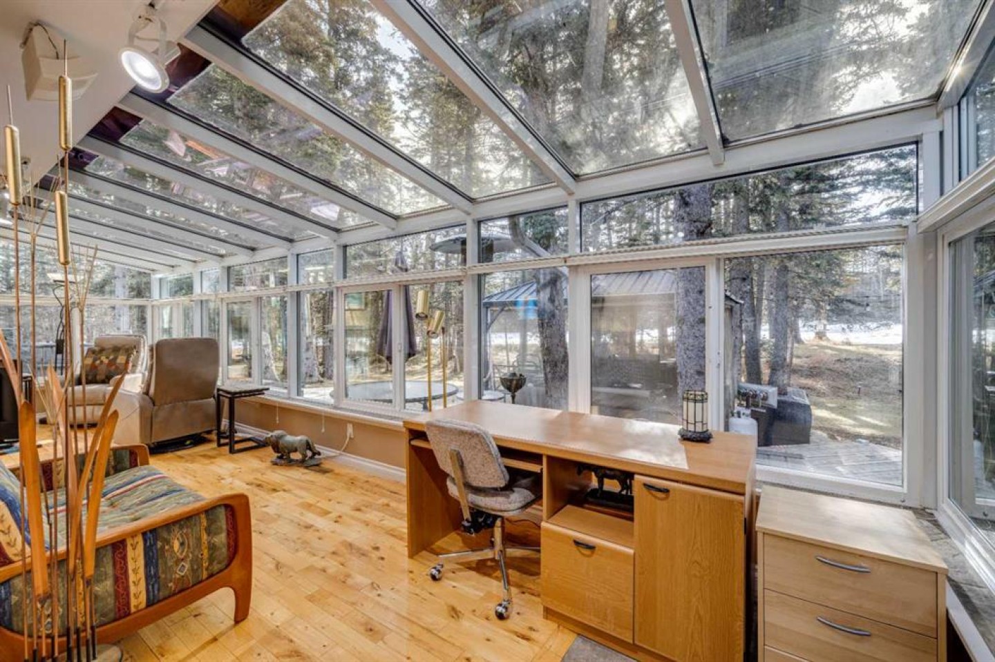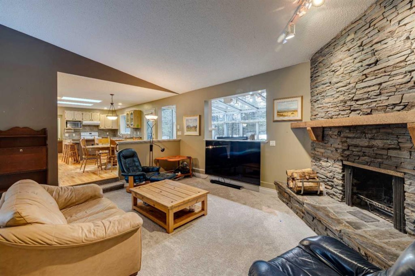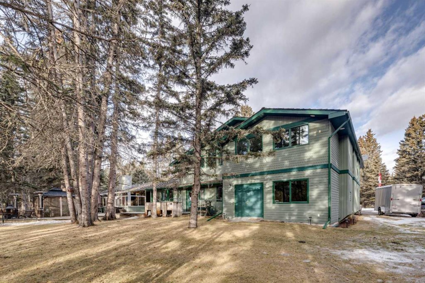 This inviting bungalow with a versatile loft sits on a spacious 0.5+ acre lot in a quiet cul de sac, offering privacy, outdoor enjoyment, and exceptional functionality. Backing directly onto the Redwood Meadows golf course, the setting feels open, peaceful, and connected to nature. Inside, the home features a bright, generous living room with a wood burning fireplace and a four season sunroom warmed by a gas fireplace, perfect for relaxing year round. The well designed layout includes 3 bedrooms and 2.5 bathrooms, an additional main floor office can be used as as a 4th bedroom providing comfortable space for families, guests, or downsizers who still want room to breathe. The loft adds tremendous flexibility and can serve as a home office, kids’ zone, TV lounge, or creative studio. The large lot also includes a hot tub, teepee, gazebo, a shed, gardens and sprinkler system; everything you need for easy, enjoyable outdoor living and entertaining. Convenient attached double garage and shop, large enough to accommodate a 40’+ motorhome, trailer, or recreational toys. With a full interior sani dump and 2 30 Amp hook-ups, it’s a dream setup for RV owners. Alternatively, the space can be transformed into an indoor sports court or an incredible multi use area, making it ideal for hobbyists or anyone needing extra workspace. This property blends comfort, practicality, and lifestyle in a way that’s hard to find. A rare opportunity in a prime cul de sac location.