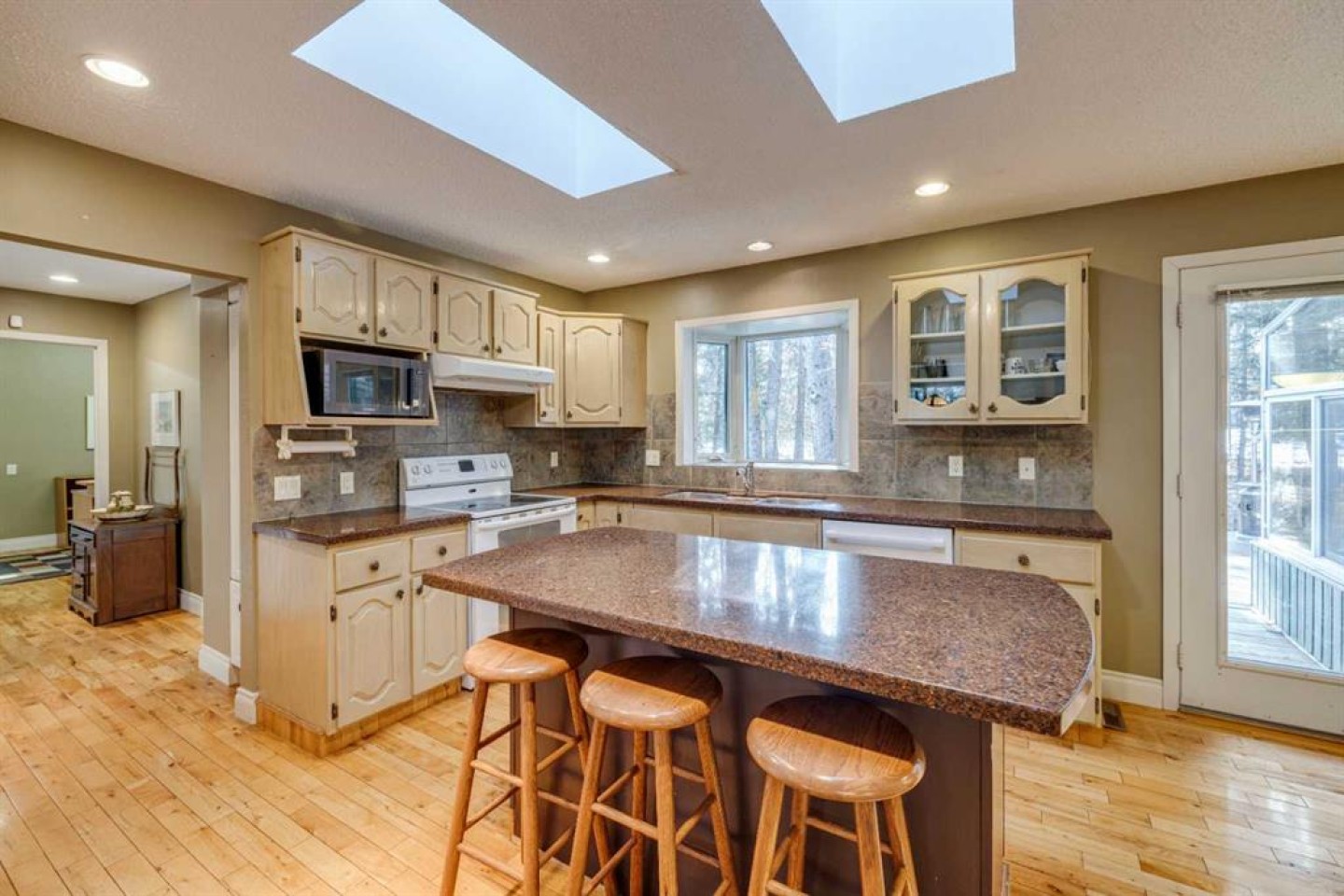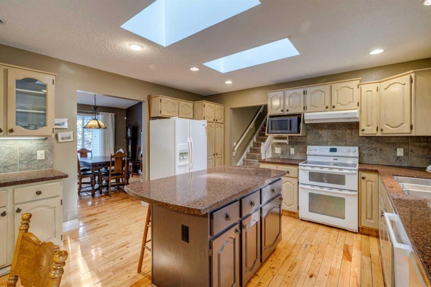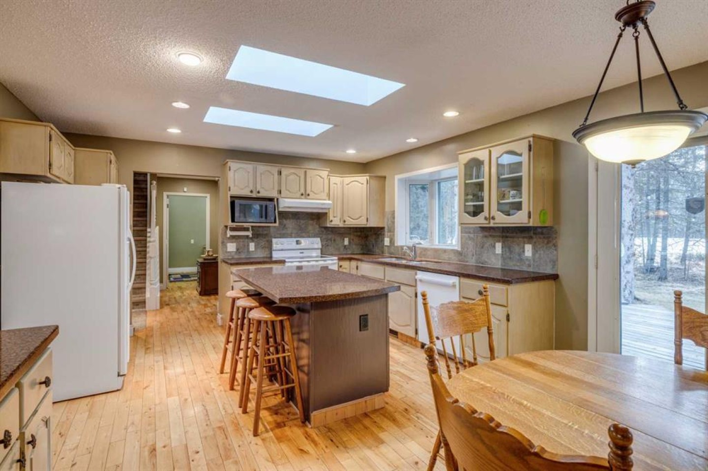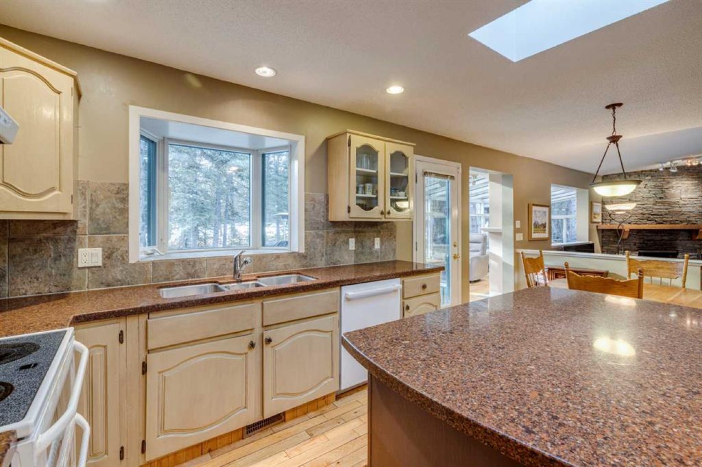 This inviting bungalow with a versatile loft sits on a spacious 0.5+ acre lot in a quiet cul de sac, offering privacy, outdoor enjoyment, and exceptional functionality. Backing directly onto the Redwood Meadows golf course, the setting feels open, peaceful, and connected to nature. Inside, the home features a bright, generous living room with a wood burning fireplace and a four season sunroom warmed by a gas fireplace, perfect for relaxing year round. The well designed layout includes 3 bedrooms and 2.5 bathrooms, an additional main floor office can be used as as a 4th bedroom providing comfortable space for families, guests, or downsizers who still want room to breathe. The loft adds tremendous flexibility and can serve as a home office, kids’ zone, TV lounge, or creative studio. The large lot also includes a hot tub, teepee, gazebo, a shed, gardens and sprinkler system; everything you need for easy, enjoyable outdoor living and entertaining. Convenient attached double garage and shop, large enough to accommodate a 40’+ motorhome, trailer, or recreational toys. With a full interior sani dump and 2 30 Amp hook-ups, it’s a dream setup for RV owners. Alternatively, the space can be transformed into an indoor sports court or an incredible multi use area, making it ideal for hobbyists or anyone needing extra workspace. This property blends comfort, practicality, and lifestyle in a way that’s hard to find. A rare opportunity in a prime cul de sac location.
