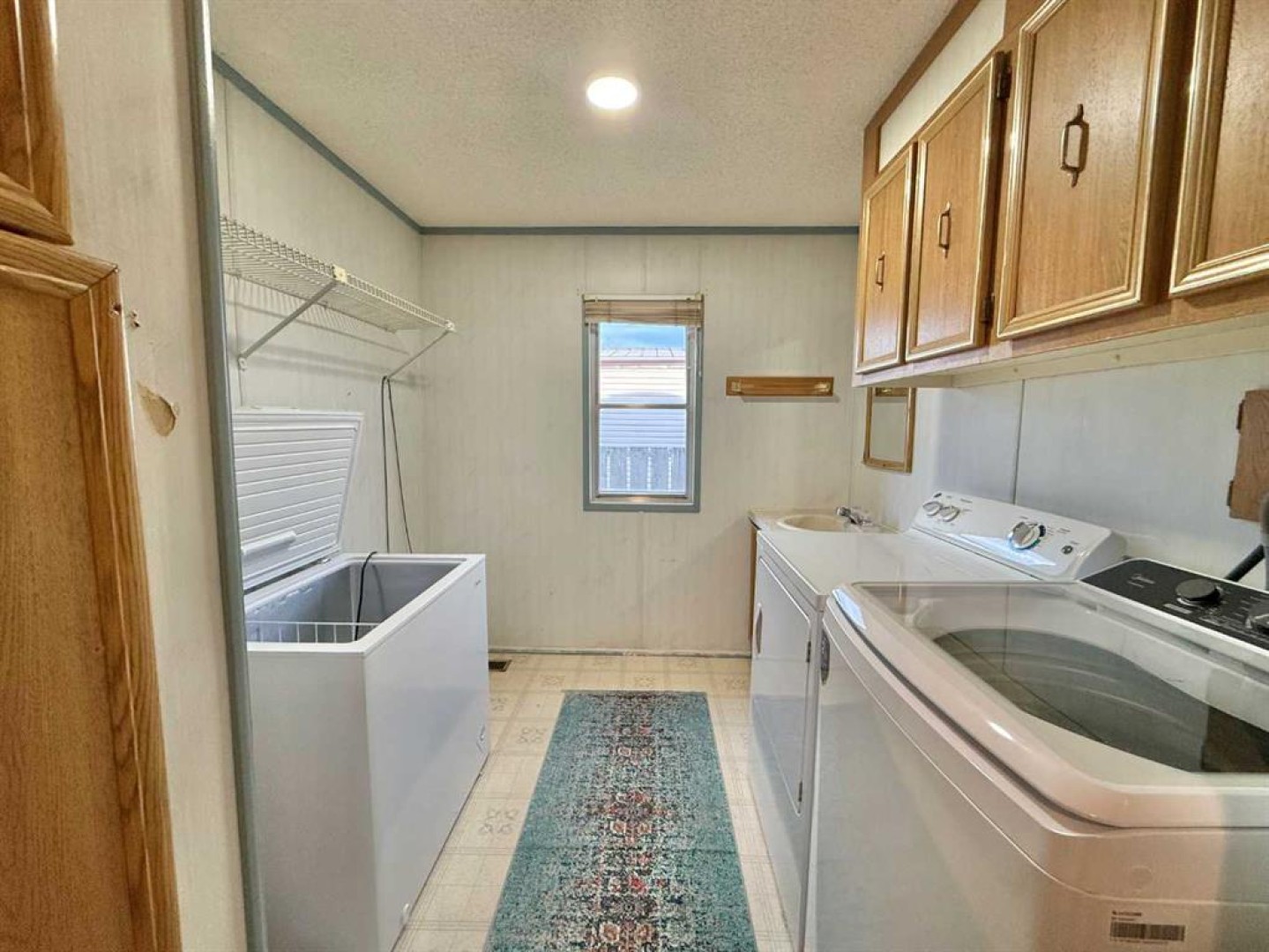 138 Nickerson Avenue is not your typical manufactured home. This is truly a remarkable property boasting 1400+ square feet of living space plus a 28x30 heated drive through garage all located on a oversized double lot in a great family neighbourhood. Walking through the front gate you are immediately welcomed onto the massive 12x40 covered composite deck. Entering the home and to your right you will find 2 decent sized bedroom plus a 4pc common bath. The living room is spacious and inviting featuring vaulted ceilings adding to the vastness of this type of home. The kitchen is open and functional with plenty of light coming from the large skylights above. This home also features its own separate laundry room with enough space that houses a deepfreeze, new washer & dryer plus a laundry basin. The back end portion of the home you will find a deluxe sized primary bedroom with its own 3pc ensuite. This home also has an enormous addition that could be used as another living room or an oversized bedroom. This bonus room has its own entrance to the deck outside. Now to the greatest feature of this property. The massive heated drive through garage! This is a great space for car or toy storage, with enough space for a workshop at the same time. You have plenty of electrical outlets for all your tools plus 220V power for your higher powered equipment. Notice the front garage door is 16 feet wide and will easily fit 2 vehicle inside. The rear of the garage has its own 8 foot wide garage door that leads to the nicely landscaped back yard. The large trees here provide plenty of shade and privacy during the summer months. This home and property is sure to check of everything on your home and shop needs!