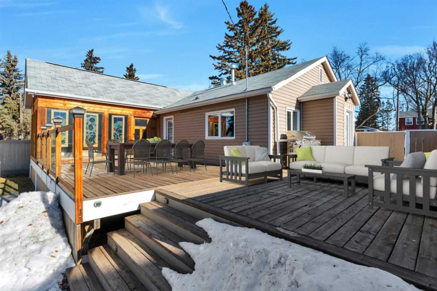 Welcome to this exceptional opportunity in prestigious Mountview! Situated on an expansive 14653 sq ft lot, this property offers incredible flexibility. Whether you’re envisioning a custom build or seeking your own private retreat within the city, this is the space to make it happen. Set on a beautiful, tree-lined street where mature canopies create charm and privacy, the property already features a 1,000 sq ft triple-car garage at the rear with convenient back alley access. The garage is fully insulated and equipped with in-floor heating, 10’ ceilings, framed in for two more garage doors and a skylight that fills the space with natural light—ideal for hobbyists, car enthusiasts, or additional workspace. Enjoy breathtaking sunrises to the east and stunning sunsets over the west-facing backyard. The 1,200 sq ft bungalow offers two spacious decks—one south-facing and one west-facing—perfect for capturing sunlight throughout the day. Inside, you’re welcomed by a bright, inviting kitchen that flows seamlessly into the dining and living areas. The main level also features a bedroom, a full bathroom, and a generous sunroom highlighted by beautiful stained-glass details. The lower level is partially finished and includes a large recreation room, two additional bedrooms, and a utility room. (Flooring can be completed upon request.) Picture yourself relaxing on the private west-facing deck, soaking up the sun, firing up the BBQ or smoker, and enjoying views of your expansive yard and tranquil pond. This is a rare opportunity to own a truly special property in one of Mountview’s most desirable locations.