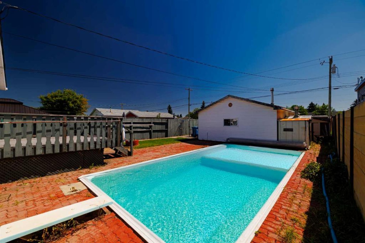 Welcome to an incredible opportunity in the community of Dover! Step into your dream home, a unique Bungalow offering 1410 sq ft of living space on the main floor and 1278 sq ft of developed space in the basement. The original structure received a 378 sq ft front addition in 1989, fully compliant with the City of Calgary Planning and Building Regulations and completed by a qualified contractor. With its solid poured concrete footing and treated wood foundation walls (only on the addition portion of the house), this home is structurally sound and brimming with potential for a full renovation to make it your own.  The main floor features a grand living room with a stone-faced wood-burning fireplace and plentiful windows that flood the space with light. The kitchen, renovated in 1989, is due for an update but remains in great condition. The open floor plan includes two bedrooms, each with a 3-piece ensuite. The Primary Bedroom’s ensuite requires some enclosure, while the second bedroom boasts sliding patio doors that lead to the backyard balcony and in-ground outdoor pool.  The basement offers three bedrooms, two of which are part of the 1989 addition and feature larger windows (not egress). Also included is a gas-burning fireplace, a storage room, and a 4-piece bathroom. The well-insulated 378 sq ft addition spans both the basement and the main floor.  Outdoor amenities include a backyard with a natural gas line for the BBQ and firepit, an in-ground outdoor pool winterized in the fall of 2024 and sold "AS IS WHERE IS," a double detached garage (20ft x 24ft), and an additional carport or RV parking spot. Imagine your family enjoying summer days by the pool, a place filled with laughter and memories for family, friends, and grandchildren.  Notable upgrades include a water tank installed in 2015, a roof replaced in 2010, and all windows replaced during the 1989 renovation. The furnace is in great condition, though it is unclear if it is original or replaced.  Schedule a viewing with your licensed agent who can help you envision creative changes to make this space your own. This home has been lovingly cared for and is ready for its next chapter with a new family. Don’t miss out—book your showing today!