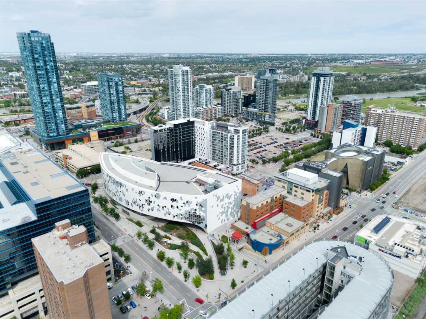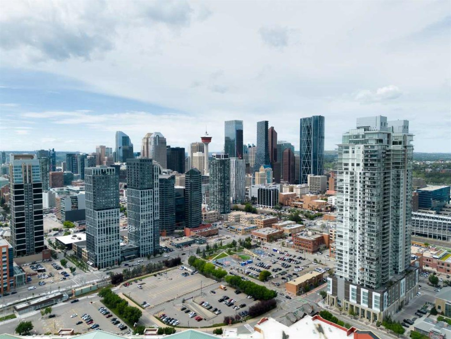 Experience elevated urban living in The Guardian South Tower. Perched on the 19th floor, this stunning single-level condo captures sweeping views of downtown Calgary and the Bow River through expansive FLOOR-TO-CEILING WINDOWS and from your BALCONY. This bright and modern one-bedroom, one-bathroom home is thoughtfully designed with sleek flooring and an abundance of natural light throughout. The contemporary kitchen features integrated cabinetry that seamlessly conceals the refrigerator and dishwasher, an INDUCTION COOKTOP, and a BUILT-IN MICROWAVE. The OPEN-CONCEPT layout flows effortlessly into the living area—ideal for both relaxing evenings and entertaining guests. The spacious bedroom is filled with natural light and showcases incredible views, along with a BUILT-IN CLOSET SYSTEM complete with drawers, eliminating the need for additional furniture. A well-appointed four-piece bathroom is conveniently located just across the hall. In-suite laundry with a stacked washer and dryer adds everyday ease. Residents enjoy 24-hour front door security, secure floor access, a titled underground parking stall, and a separate assigned storage unit. The Guardian offers exceptional amenities, including a FULLY EQUIPPED FITNESS CENTRE with SHOWERS, a ROOFTOP TERRACE with BBQs, a stylish RESIDENTS’ LOUNGE with kitchen, a GAMES AREA, and flexible spaces for relaxing or working. There’s even a dedicated WORKSHOP for CRAFTS or woodworking projects. Located in the heart of Calgary’s vibrant Beltline, you’re just steps from the Stampede grounds, LRT stations, and an array of downtown shopping, dining, and entertainment. This is an outstanding opportunity to own a sophisticated condo in a secure, amenity-rich building in one of the city’s most dynamic neighbourhoods.