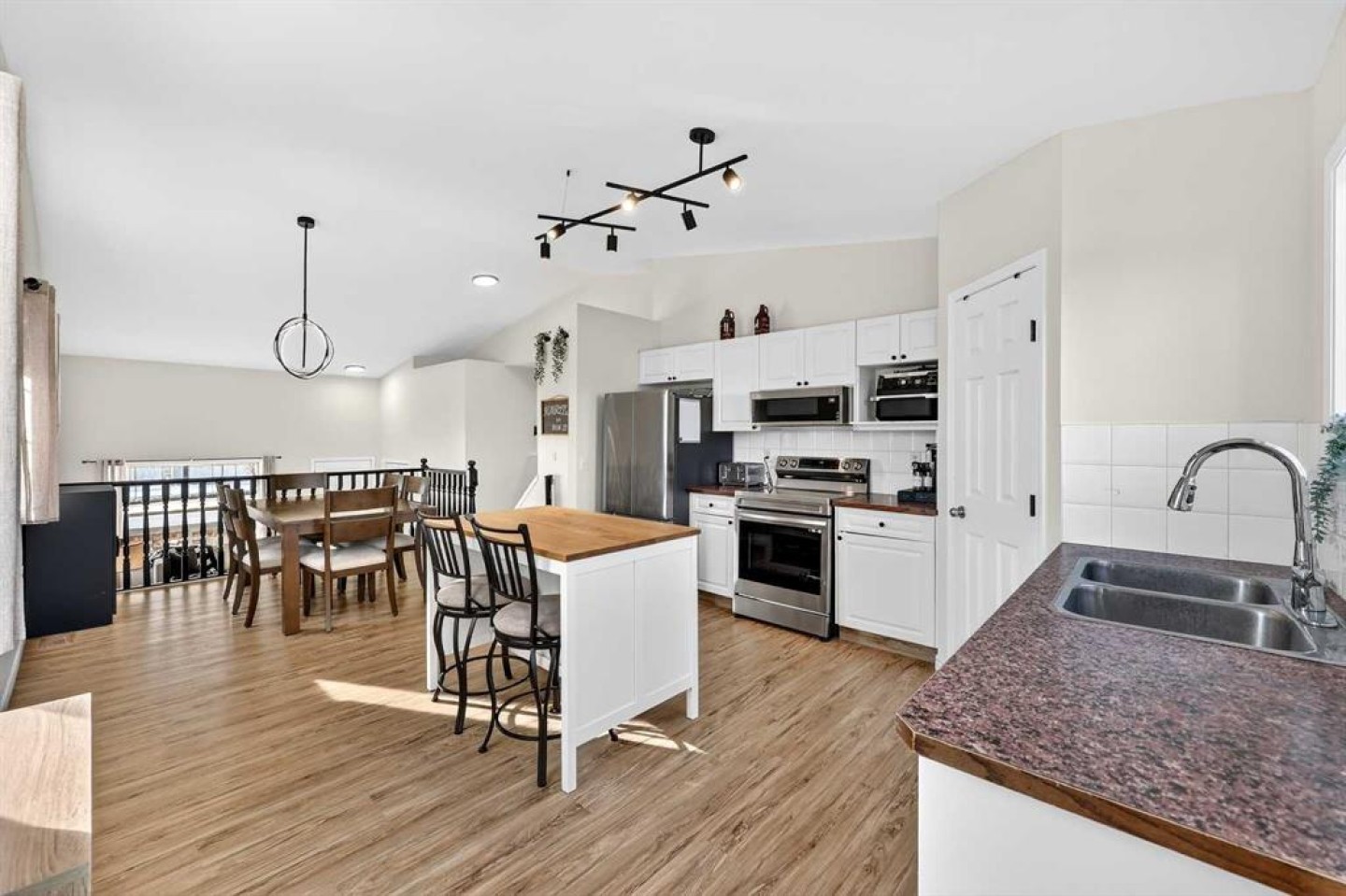 Welcome to 250 Cimarron Boulevard! In the heart of Cimarron, one of Okotoks’ most established and walkable communities! Set on a corner lot with added privacy and extra windows, this renovated bi level offers a bright, functional layout and thoughtful updates throughout. You are welcomed by vaulted ceilings and a spacious front family room filled with natural light from large windows, creating an open and uplifting first impression that instantly feels like home. Just a few steps up, the refreshed kitchen and dining area feature new appliances and updated finishes, with a window over the sink overlooking the backyard, so you can keep an eye on kids or simply enjoy the view while making dinner. A back door off the kitchen makes it easy to step outside for summer barbecues, quiet morning coffees, or evenings spent unwinding in your own yard. The home has been updated with new flooring, fresh paint, renovated bathrooms, a new hot water tank, air conditioning, and a roof replaced in 2023, giving you confidence and comfort from day one. Four bedrooms are thoughtfully spread across two levels, with two upstairs including the primary bedroom and a main bath conveniently positioned between them. The fully developed lower level offers two large bedrooms, another full bathroom, laundry, a generous family room, and impressive storage. Big, sunshine windows make the lower level feel bright and welcoming, creating flexible space for guests, teenagers, or a home office. The backyard offers plenty of room to play, garden, or build a future garage, and the corner lot provides both breathing room and flexibility. Living here means being just minutes from everyday essentials including Costco, Walmart, Home Depot, restaurants, shops and schools. Pathways wind throughout Cimarron and connect to parks and the Sheep River trail system, perfect for evening walks and weekend bike rides. Calgary is approximately 15 to 20 minutes away, making commuting simple while still enjoying the quieter pace and strong sense of community that Okotoks is known for. With the Rocky Mountains less than an hour’s drive, spontaneous weekend escapes are always within reach. If you have been searching for a move in ready home, this one is worth experiencing in person! Book your showing and see how it feels to walk through the door.