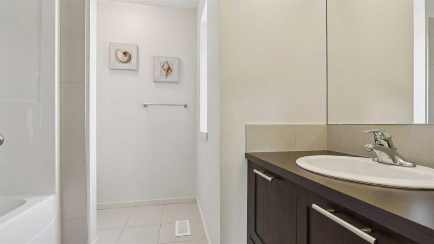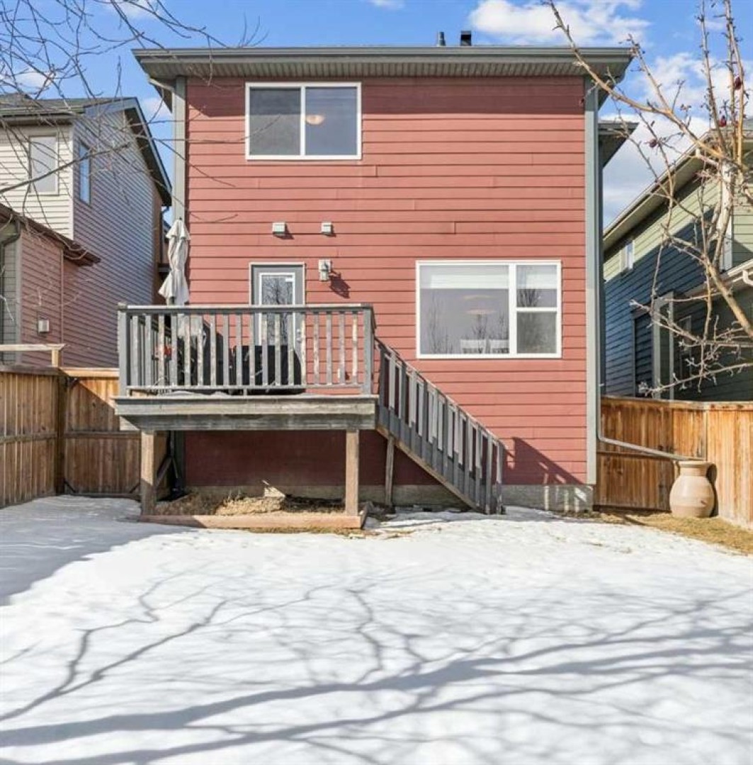 I am pleased to present this beautiful home offering the perfect balance of suburban tranquility and urban convenience, ideally situated in a sought-after move-up, next-stage community designed for modern family living. The main living area is warm and inviting, anchored by a cozy gas fireplace that creates an ideal space for relaxing or entertaining. The kitchen is thoughtfully tucked away from the central living space—an excellent feature for maintaining privacy and organization when hosting guests or managing everyday family life. Entry from the double attached garage leads into a spacious mudroom designed for practical living, providing a dedicated area for coats, footwear, and family essentials while keeping the home neat and organized. Upstairs, an expansive bonus room offers flexible space perfect for movie nights, a children’s play area, or a quiet retreat. The home features three generously sized bedrooms, each complete with a walk-in closet. There are two and a half bathrooms, including a private primary ensuite showcasing dual sinks, a soaker tub, separate shower, and fabulous sunlight. The third bedroom is exceptionally spacious and filled with natural light, making it an inviting home office or adaptable workspace with excellent storage—ideal for today’s work-from-home needs. Additional highlights include central air conditioning for year-round comfort, a radon mitigation system for added peace of mind, and an undeveloped basement ready for your personal vision and future expansion. The exterior is equally impressive, featuring a southeast-facing backyard with a raised deck, mature trees, and no direct neighbors behind—backing onto a fence line for enhanced privacy and enjoyment throughout the summer months. Significant exterior updates include a new roof in 2025 and a recently repainted front exterior. The surrounding community offers outstanding lifestyle amenities, including parks, natural ponds, an outdoor skating rink, and extensive walking and cycling pathways connecting you throughout the city. Conveniently located nearby are numerous recreational facilities such as Vivo, Shane Homes YMCA, and Crowfoot Melcor YMCA. Overall, this home delivers warmth, comfort, and thoughtful design in an excellent location—an ideal setting for creating lasting memories.