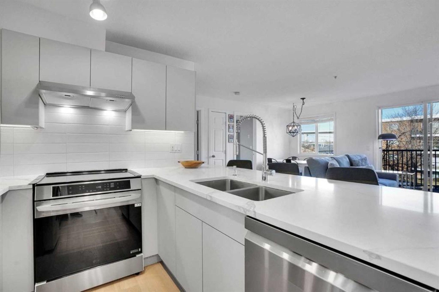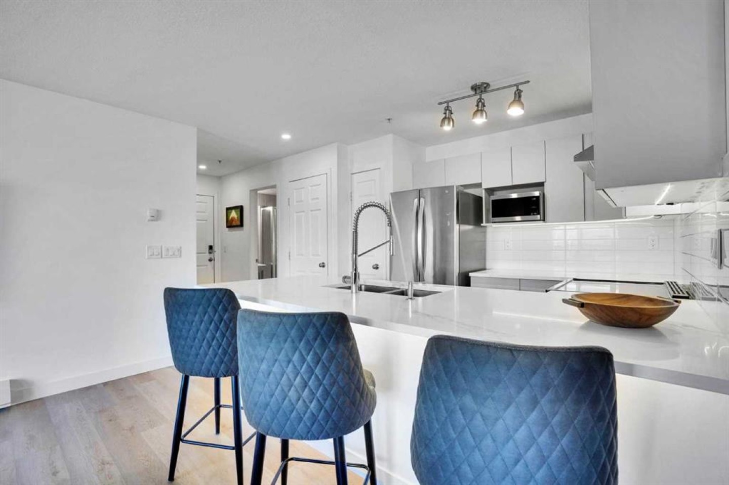 Tucked away at the quiet end of 11 Avenue SW, this beautifully updated low-rise condo offers the perfect balance of urban convenience and peaceful living. Corner unit, featuring elevator access and secure underground parking, in a well-maintained building provides comfort and easy living. Inside, you’ll find an airy, open-concept floor plan with two spacious bedrooms and two full bathrooms, well designed for both daily life nd entertaining. Bright principal rooms flow seamlessly between the kitchen, dining, and living areas, creating a welcoming and functional space. In-suite laundry adds to the convenience. Plus there is a large covered deck with a gas line. The modern kitchen offers a full LG appliance package, abundant cabinetry, a pantry, and a large quartz working island ideal for meal prep or gathering with friends. Engineered, wide-plank flooring throughout, upgraded lighting, and refreshed kitchen cabinetry elevate the home’s contemporary appeal. Condo fees include ALL utilities, offering exceptional value and simplified budgeting. Enjoy an unbeatable location just steps from downtown, playgrounds, restaurants, pubs, and cafés, and only a 3-minute walk to the Sunalta LRT station for effortless commuting.